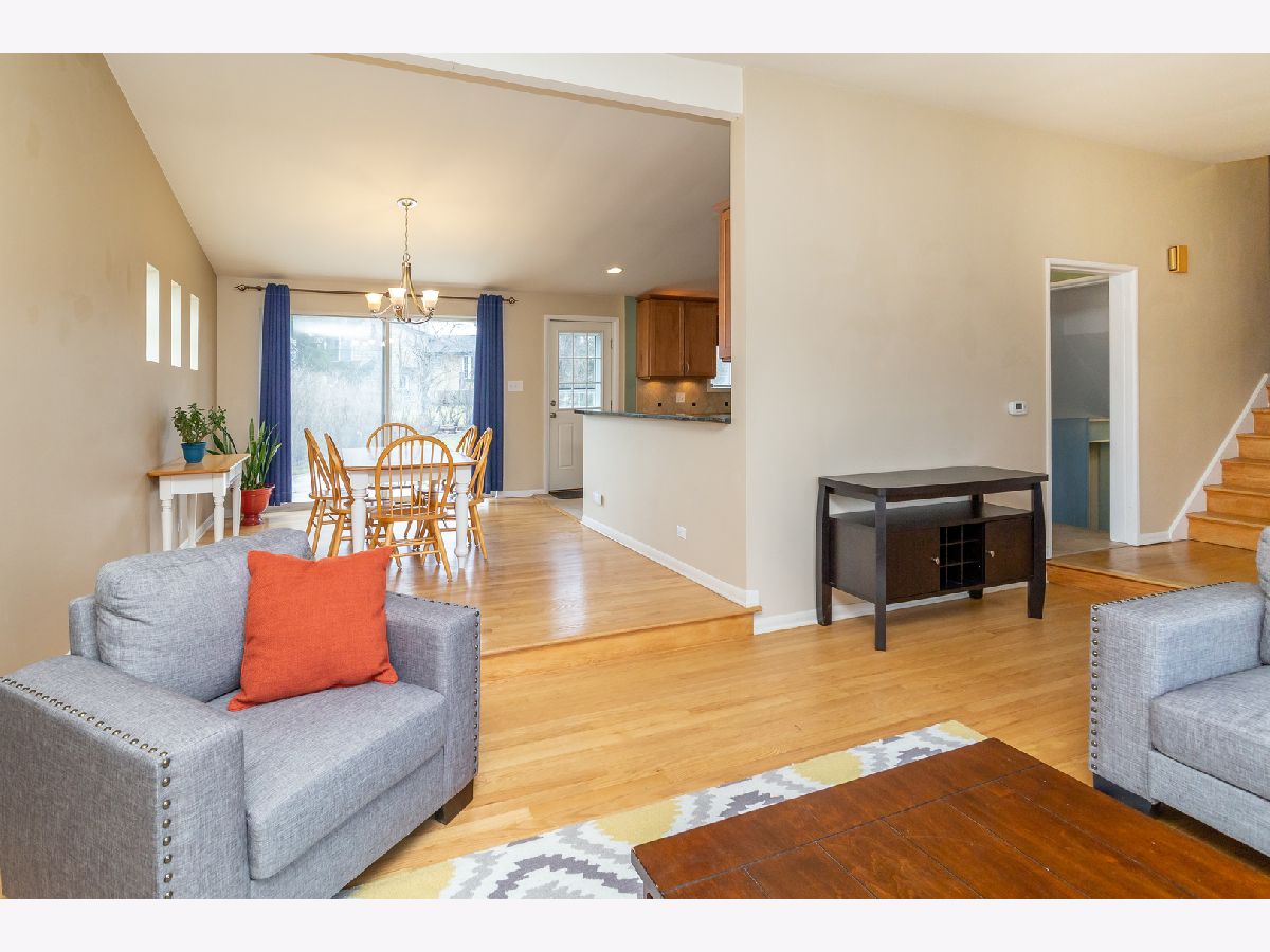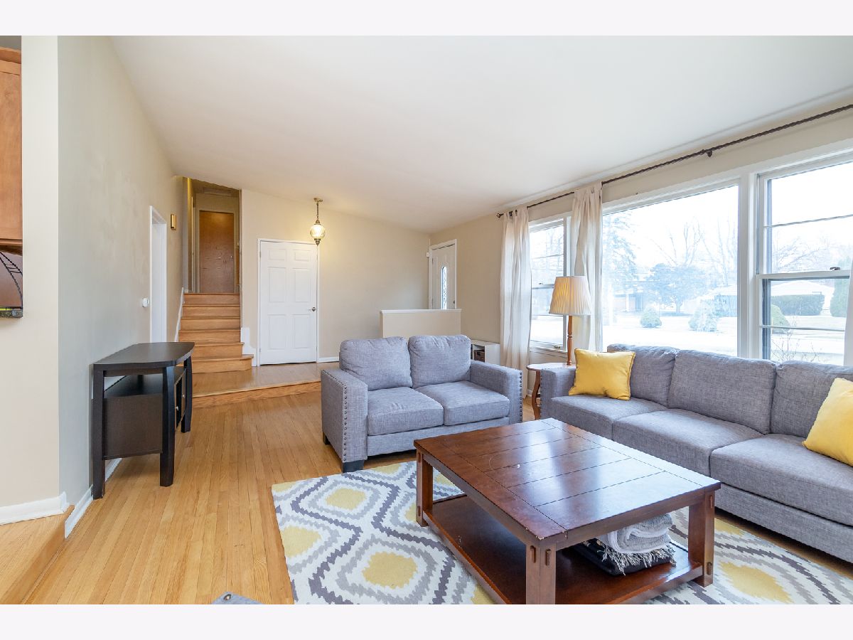 Nicely updated 3bed/2bath home in Glenview. Hardwood floors throughout main level and over-sized window overlooking front yard. The open kitchen features stainless steel appliances, newer cabinets, and large granite bar area perfect for entertaining. Connected dining room easily fits everyone for the holidays. All 3 bedrooms on second level are generously sized, feature large closets and have hardwood under carpet. 2nd floor bath is updated with shower/bath combo. Lower level family room has the second full bathroom, ample space for watching TV, kids' play area, piano, and office area. Full size laundry room and spacious storage also on lower level, with access door to backyard. Backyard has cement patio area for lounging and grilling. 2-car detached garage also has additional storage area. .3 miles to park, .6 miles to Washington Elementary, and 1 miles from Target, Aldi, Walmart, Marianos, Library, Metra.