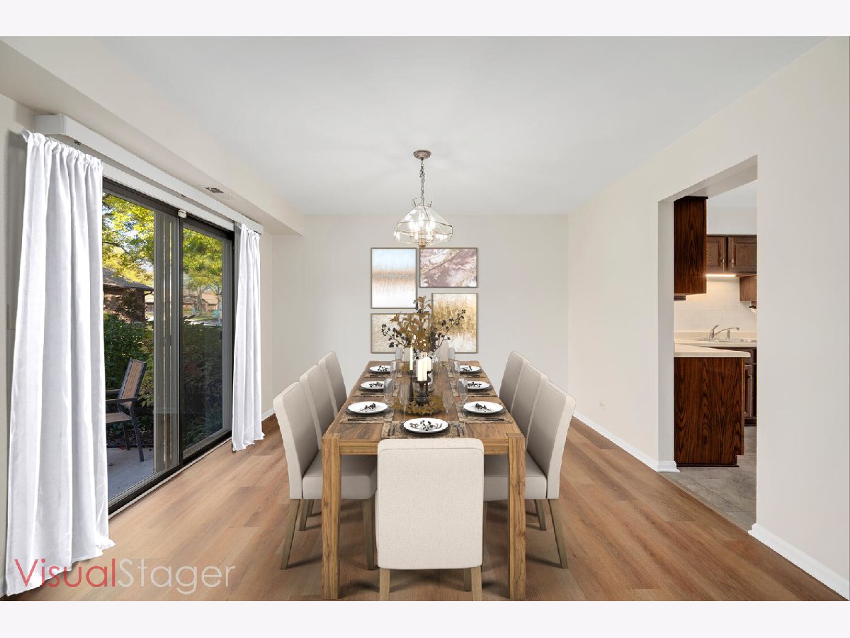 Impeccably maintained townhome nestled within the Indian Trails subdivision, offering the utmost convenience with its proximity to shopping, Metra, and various amenities. This home has been tastefully refreshed with fresh paint throughout, including the garage, and boasts brand-new vinyl plank flooring, plush carpeting and new blinds. The spacious living and dining areas are flooded with natural light, complemented by sliding glass doors leading to a large patio. Additionally, there's an office or formal living room featuring a gas starter fireplace, wood parquet flooring and sliding glass doors that open to a charming and private courtyard. The kitchen has been upgraded with new stainless-steel appliances and new cabinet hardware. The primary bedroom is a true retreat, featuring an attached bathroom, a separate vanity area, a spacious walk-in closet, and a bonus room offering versatile possibilities. Fresh and bright and ready for you!