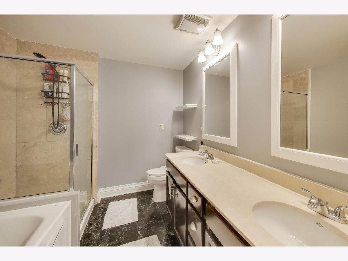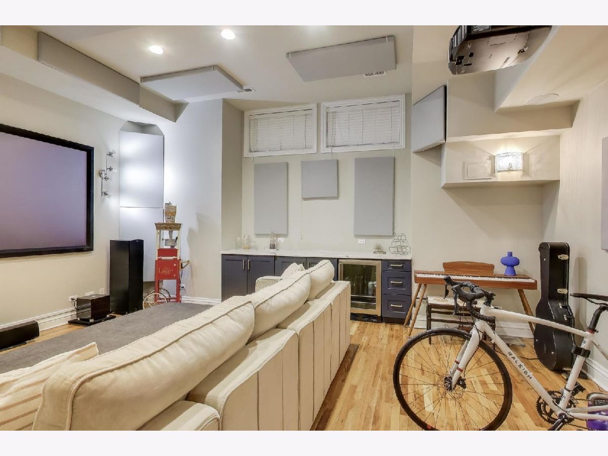 Spacious 4-bedroom, 2.5-bath duplex-down in the Wicker Park / Noble Square area offering two full floors of living. The layout provides clear separation between levels, with minimal sound transfer between the main living areas and lower level. The main level features convenient open kitchen-dining-living area leading to a private balcony overlooking the shared front yard. The kitchen includes white cabinetry, granite countertops, stainless steel appliances, and a large breakfast bar. Also on the main level is a generous primary suite with an en-suite bath featuring a whirlpool tub, double vanity, separate shower, and marble flooring, along with a second bedroom and powder room. The lower level includes a third bedroom, full bath, and a large fourth bedroom currently used as a media room. Hardwood floors, crown molding and high ceilings are found throughout both levels. Additional features include laundry room, ample storage and two side-by-side exterior parking spots included. Pet-friendly building with a dog park just steps away, and convenient access to transportation, I-90/94, shopping and dining throughout Wicker Park, Bucktown and Noble Square.