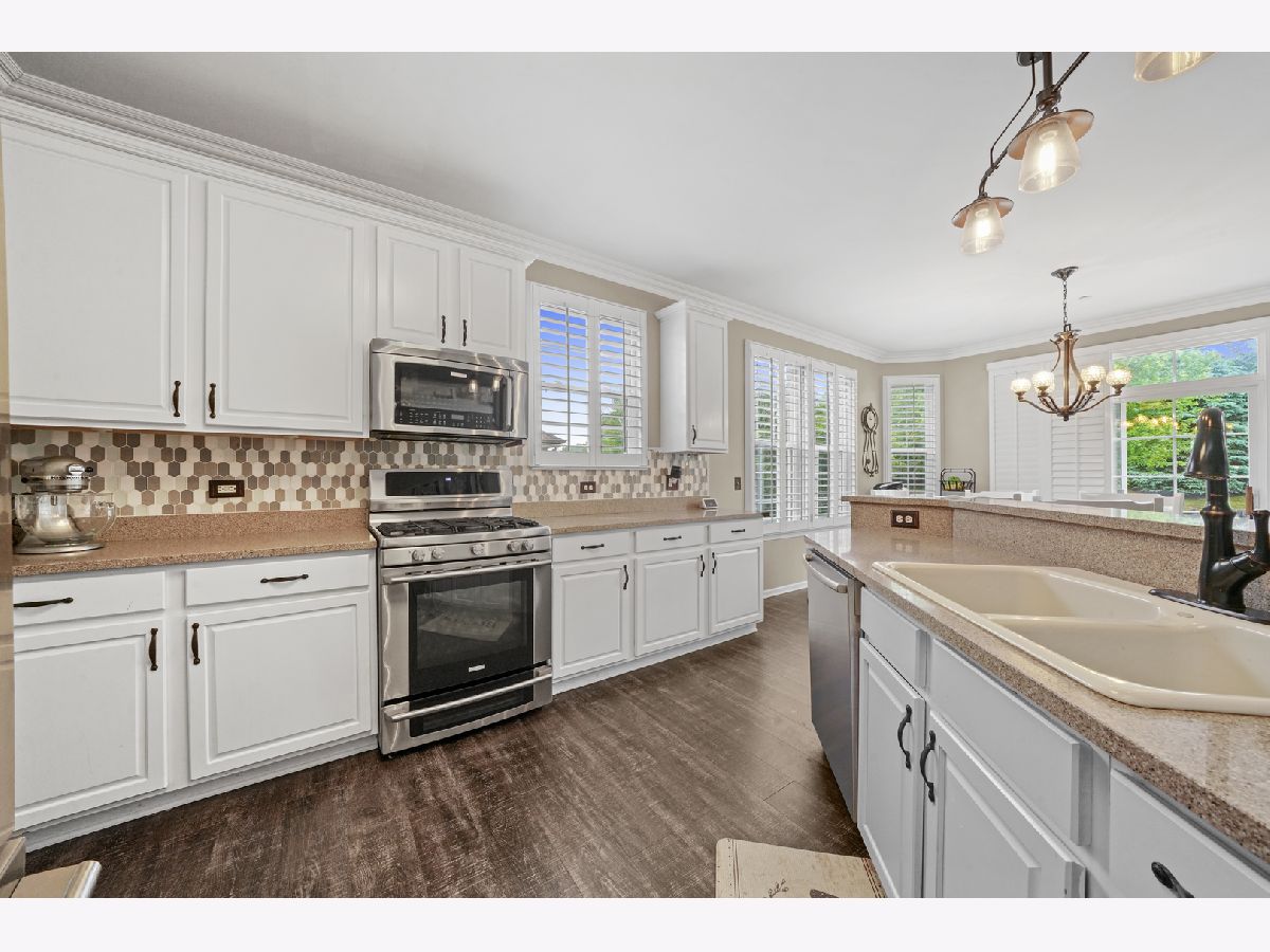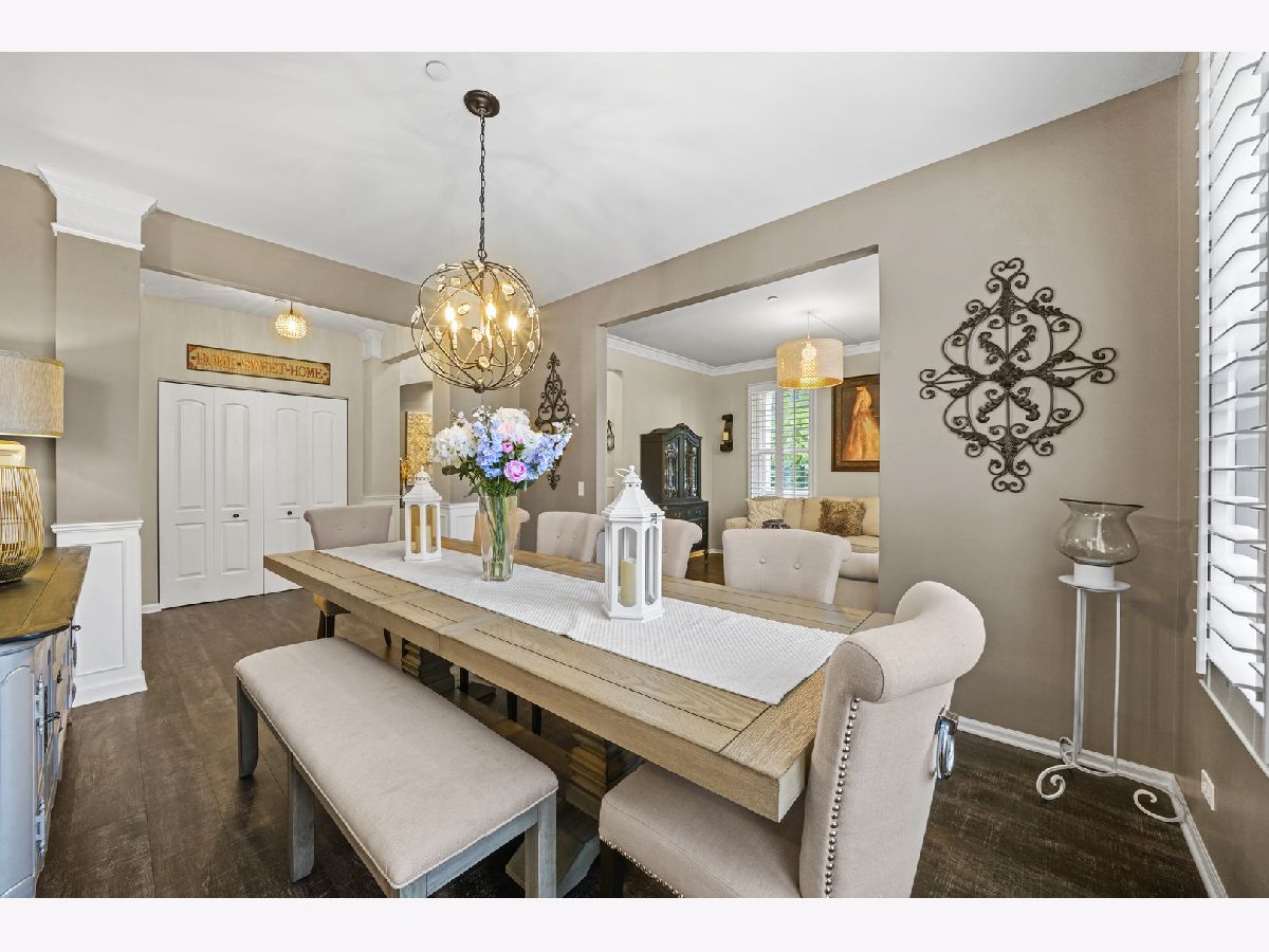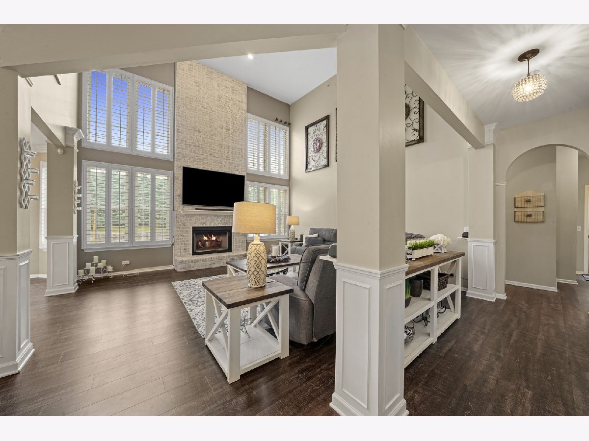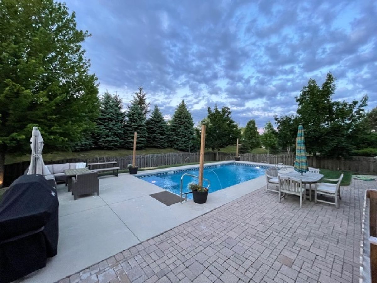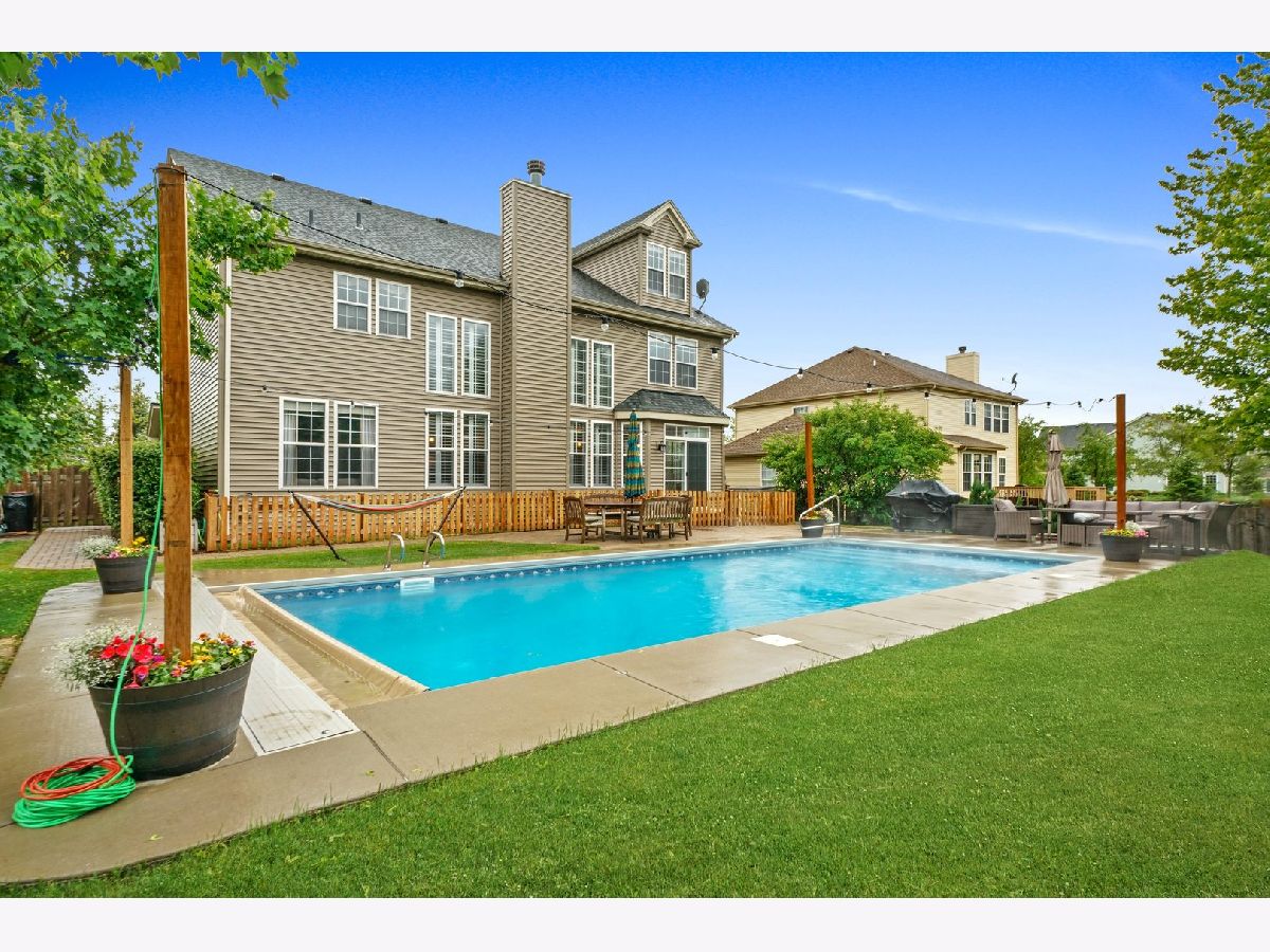 Plan your next "stay-cation" and enjoy summer fun in your private extra large 16x36 ft. heated inground pool with custom automatic cover. Grand two-story front porch on this original builders model and entertainer's dream residence with brilliant modern enhancements. Located in highly sought after Grand Pointe Meadows. Gorgeous two story vaulted ceilings in family room with beautiful brick fireplace. Open concept floor plan kitchen with butlers pantry, quartz counters, center island, spacious 42" cabinets, high end stainless steel appliances & pantry. Custom plantation shutters throughout main level. Second level includes four bedrooms with custom closets and balcony. Master suite + full bathroom & large tub & shower + double sink & vanity. Finished basement with second kitchen, island, stainless steel appliances, full bathroom with custom tile and heated floors throughout and fifth bedroom and office/den. Perfect for in-law arrangement! Finished 3rd level bonus room provides an extra 1,000+ sq. ft. Many upgrades including new roof, custom landscaping, and flooring. Minutes from I-90, shopping, and dining!