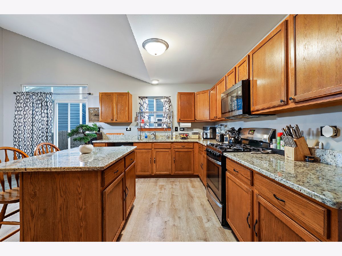 Beautiful and spacious 4 bd/2 bth split level home in Joliet! The moment you enter the front door you're greeted by a large and open living room with vaulted ceilings, tons of natural light and gorgeous vinyl plank flooring that flows throughout the main level. The huge kitchen is an entertainers dream! It features an island with breakfast bar, granite countertops, all SS appliances and a large dining area plus sliders that lead out to your patio. Upstairs, you'll find 3 spacious bedrooms and a full bath with double sinks and a soaking tub. On the lower level, you'll find your family room with a cozy gas fireplace, the 4th bedroom, another full bath and the spacious laundry room. Outside, enjoy your oversized fenced-in backyard perfect for gardening, an outdoor play area, or just relaxing! Attached 2 car garage. Close to I-55, groceries, restaurants, shopping and more! Schedule your tour today, this one won't last long!