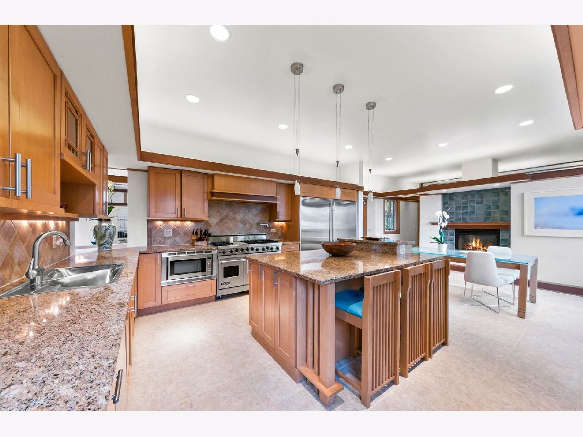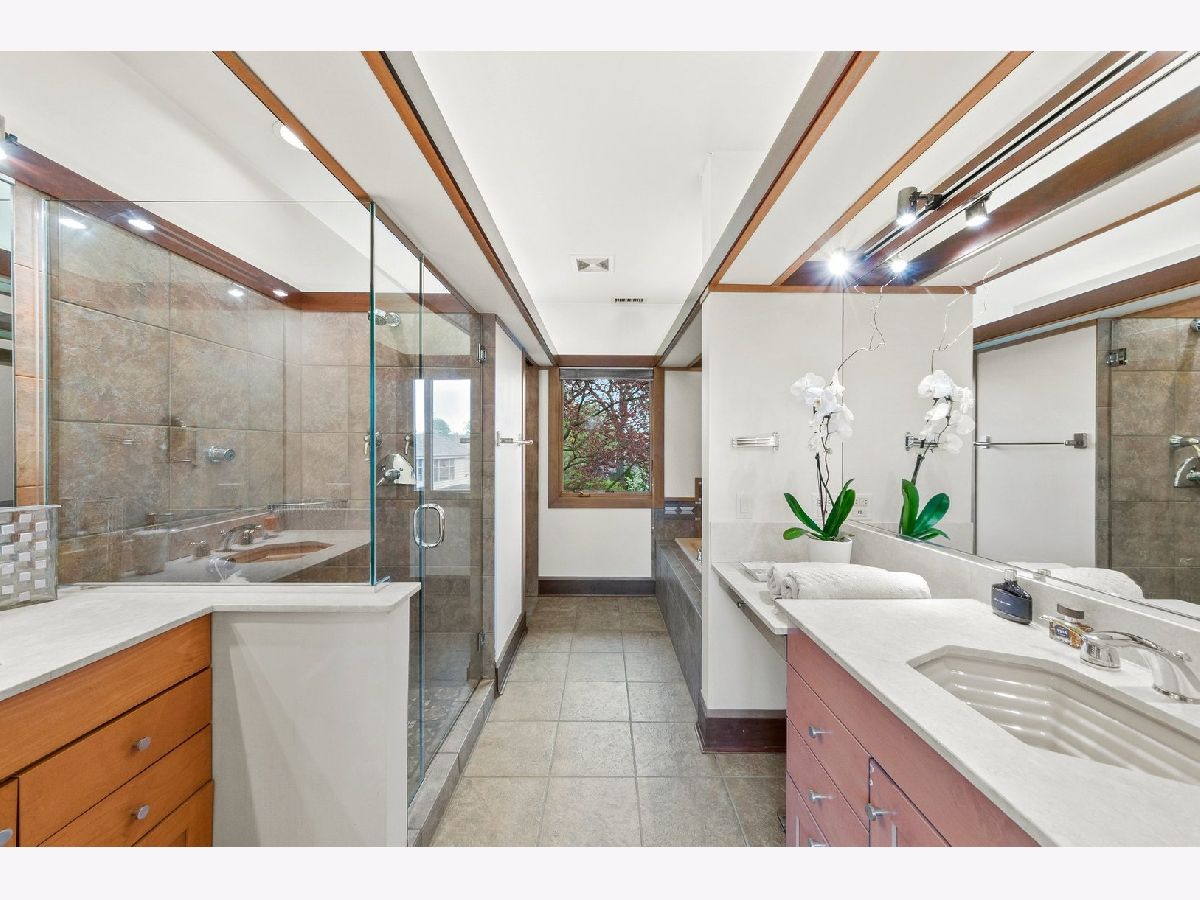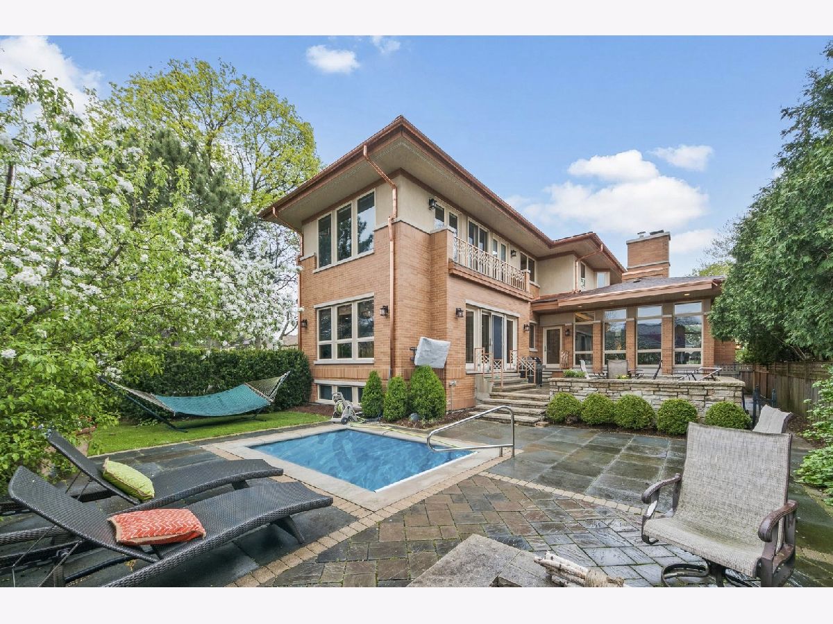 Spacious, bright contemporary home with three levels of indoor living space surrounding an incredible outdoor retreat. Enter to the breathtaking living room and dining room with vaulted ceilings, floor to ceiling windows, skylights and a magnificent two-sided fireplace. Expansive eat-in kitchen features high-end stainless appliances, large center island with seating, separate wet bar and tons of space for table seating. Here you'll enjoy the second two-sided fireplace shared with the massive family room. Three bedrooms up with two full suites! The private master features an office, enormous walk-in closet, bathroom with separate tub, shower and two vanities, and bedroom overlooking the landscaped yard. Expansive lower level with 4th bedroom, 2nd kitchen, full bath, game room, 2nd family room and exercise room/office. Could be used as separate in-law/nanny apt. Private backyard has a patio, in-ground hot tub, outdoor tv and firepit - a perfect get-away or "the place to be" for family and friends. Attached 3 car garage and lots of BRAND NEW things that matter: roof & copper gutters, HVAC, sump pump and hot water heater. Lovely River Forest neighborhood with award-winning schools, easy commute to city and close to shopping and restaurants. NEW VIRTUAL TOUR!!