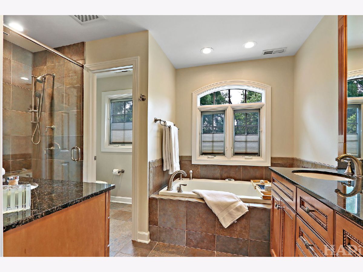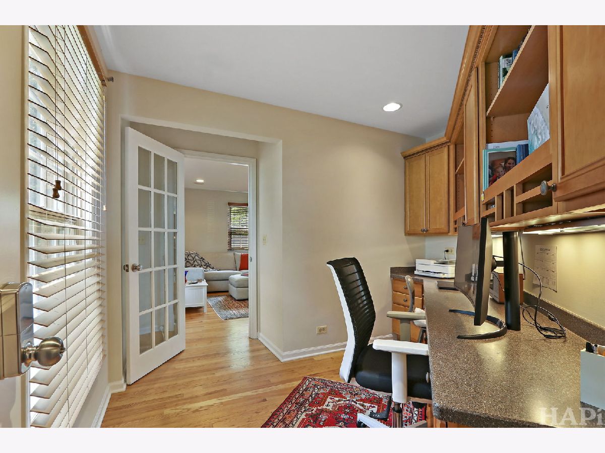 Outstanding Updated Home in Sought-After District 28 Location! This beautifully maintained home offers the perfect blend of modern updates, exceptional curb appeal, and a prime East Northbrook location-just a short walk to town, Starbucks, top-rated schools, parks, pool, and the train. Nestled in a desirable neighborhood, the home welcomes you with an attractive double front door with sidelights, newer pella windows, a paver walkway, and a charming bluestone front porch-an ideal spot to gather with neighbors. Inside, the sun-filled interior features gleaming hardwood floors throughout the main level and an open, flowing layout designed for both everyday living and entertaining. The updated kitchen boasts cherry cabinetry, stainless steel refrigerator, double oven, gas cooktop, granite countertops, decorative glass-front cabinets, barstool seating, a casual dining area, and direct access to the backyard. The kitchen seamlessly opens to the family room, complete with custom built-ins, a fireplace, and French doors leading to the living room. A dedicated home office provides a quiet workspace with built-in desk and shelving, a walk-in closet, and a glass door. Just off the kitchen, the spacious laundry/mudroom offers additional functionality with access to both the backyard and the oversized two-car garage with abundant storage. The main-floor powder room is appointed with wainscoting and a granite-topped vanity. Upstairs, the generous primary suite features a large walk-in closet with custom shelving and drawers, along with a luxurious en-suite bath offering dual vanities, a soaking tub, a separate shower with handheld sprayer, and a private water closet. Three additional bedrooms provide ample space and closet storage, while the updated hall bath includes a granite double vanity and a separate shower/tub area. The finished lower level adds valuable living space with a spacious recreation room featuring a built-in bar with full-size refrigerator, rich walnut cabinetry, and built-in bench seating. A dedicated gym with rubber flooring and wall mirror completes the space. Plentiful storage throughout. Additional exterior improvements include a newer roof, driveway, and garage door. The fully fenced backyard is a private, professionally landscaped retreat with mature trees and a stunning paver and stone patio-perfect for entertaining or relaxing. This is a rare opportunity to own a move-in-ready home that has been thoughtfully updated and meticulously maintained-inside and out.