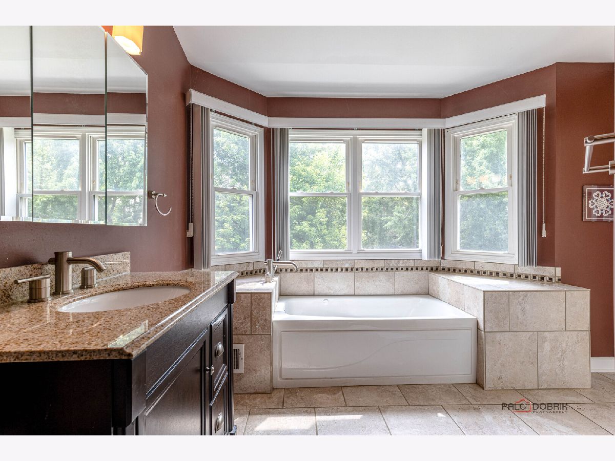 PRIME LOCATION IN OLD FARM VILLAGE! Located within the highly rated District 102 schools and Stevenson High School boundaries. Featuring recent updated and upgrades including: a brand-new asphalt driveway (2025), new A/C (2020), new water heater (2020), a new sliding glass door (2024), and a sump pump with battery backup (2017). A charming front porch welcomes you in-ideal for greeting guests or enjoying your morning coffee. Inside, you're greeted by a spacious foyer flanked by a formal dining room and a sun-soaked living room with soaring two-story ceilings, offering a grand yet inviting space perfect for entertaining or relaxing in style. The kitchen truly shines with abundant cabinetry, expansive counter space, a brick backsplash, newer quality appliances, and a central island with breakfast bar seating. The adjacent eating area overlooks the backyard, making it a serene spot to start your day. Just off the kitchen, the warm and inviting family room offers the perfect place to unwind-accented by a classic wood-burning fireplace adding charm and character to the room. Natural light pours in through the sliding glass doors, creating a seamless connection to the backyard patio and making the space feel open, bright, and comfortable year-round. A half bath and a laundry/mudroom complete the main level. Upstairs, the spacious main bedroom retreat features vaulted ceilings, a walk-in closet, A generous walk-in closet offers plenty of storage, while the private ensuite bath provides a spa-like experience with a whirlpool tub, a separate shower-perfect for unwinding after a long day. Three additional generously sized bedrooms and a full hall bath offer room for everyone to call their own. The finished basement expands your living space with a large recreation room, a dedicated office, and plenty of storage-ideal for work-from-home needs, hobbies, or hangout space. An attached 2-car garage provides everyday convenience. Outdoor enthusiasts will love the easy access to neighborhood parks, tennis/ pickleball courts, and scenic trails. Commuters will appreciate close proximity to the Metra, and everyone will love the short distance to the local library, shopping, dining, and the strong sense of community that defines this location.