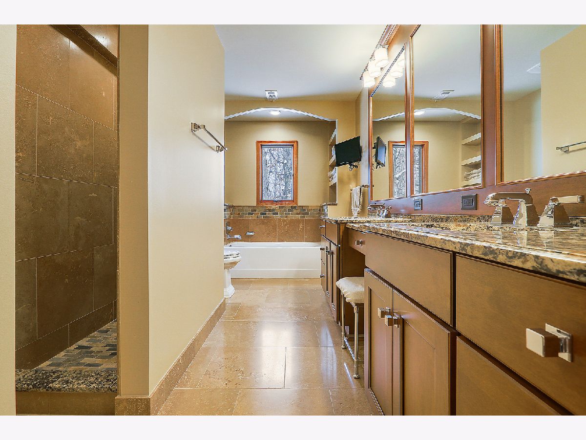 Towering, majestic trees offer a setting of unbridled beauty for this CUSTOM, one of a kind masterpiece. Rich in detail and timeless in design, this stunning home was constructed and updated with the absolute highest attention to detail. Classic architectural design with brick in a classic red hue that will transcend the ages. Enter through the two story foyer with new staircase and elegant chandelier into a residence that exudes warmth throughout. Formal dining room perfect for entertaining on a grand scale. Spectacular, completely reimagined, gourmet's dream kitchen with furniture quality cabinetry, butler pantry, massive island and high end appliances. Impressive family room/great room with soaring ceilings, stone fireplace and French doors for distinct character. Main level office with custom built ins ideal for home office or potential first floor bedroom. Large mudroom/laundry rooms with additional cabinetry, folding counter space and a large sink. Awe inspiring master suite with an enormous picture window with views of the picturesque grounds, vaulted ceilings and spacious walk in closet with custom organization. Luxurious, updated master bathroom with large shower. Three additional bedrooms on the second level with gleaming hardwood flooring, spacious closets and a wonderful loft area that overlooks the two story great room. Full finished basement offers a SECOND kitchen, RELATED living opportunity, two full bathrooms, recreation, workout area and more. Breathtaking grounds overlooking serene pond have been lovingly and meticulously maintained by the homeowner, a horticulturist. Numerous updates throughout this residence including ROOF, windows, gutters, downspouts, HVAC, septic system, hot water heater, front door, garage flooring, painting, wood flooring, light fixtures, garage doors, window treatments, sump pump and back up battery and more!! Call for your private showing today! For the discerning buyer seeking anything but the ordinary. Phenomenal location just minutes from shopping, dining, Metra, expressway access, world renowned golf courses, thousands of acres of forest preserves and The Forge, outdoor adventure park. Lemont High School is a National Blue Ribbon School. Must walk grounds to truly appreciate the setting! Breathtaking view from every window in this exceptional residence! Enjoy COMPLETE PRIVACY and mature gardens when this spectacular home site blooms in early spring.