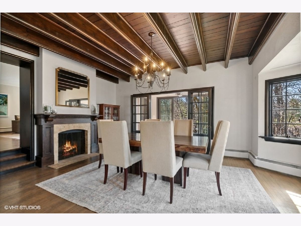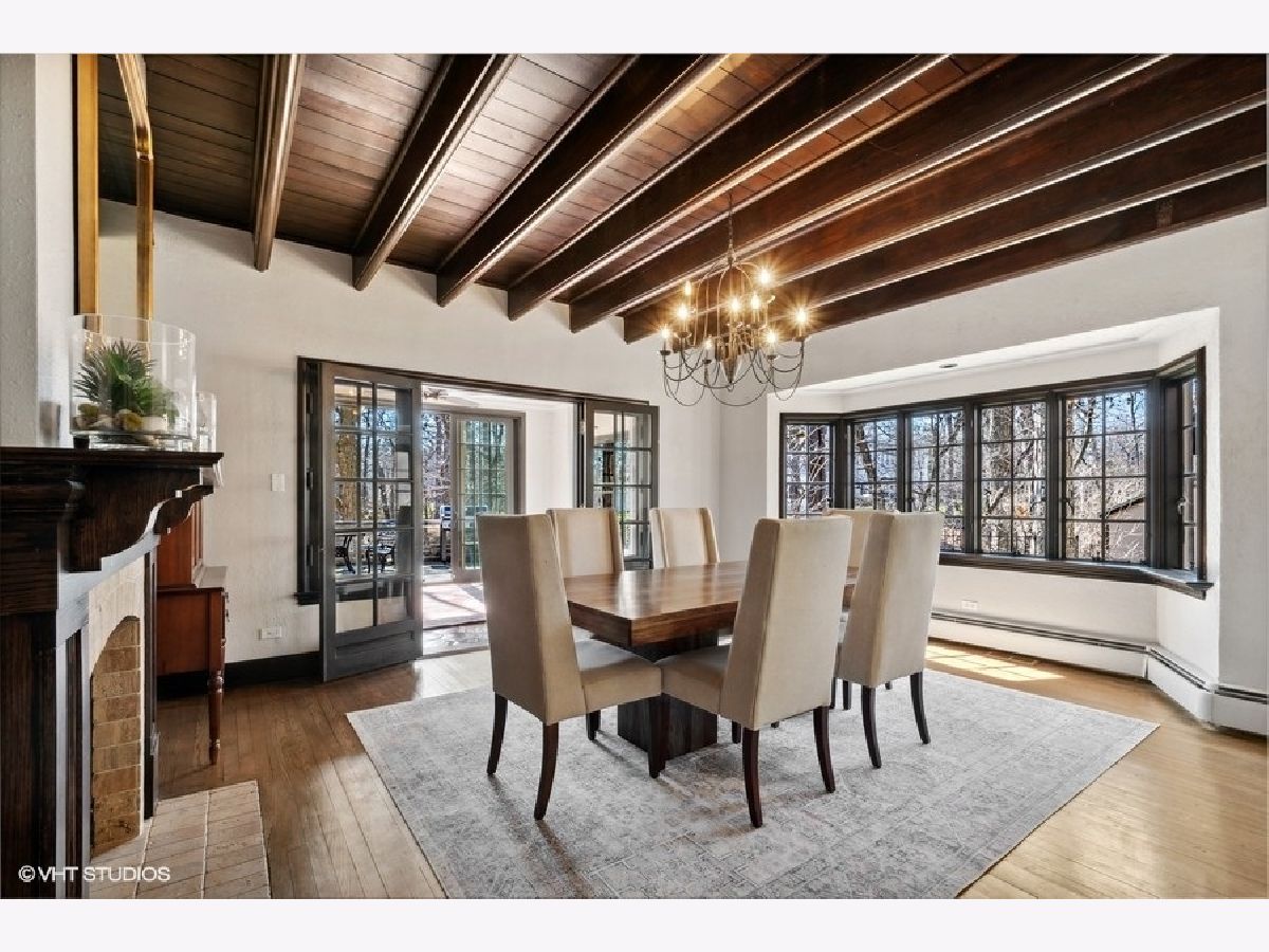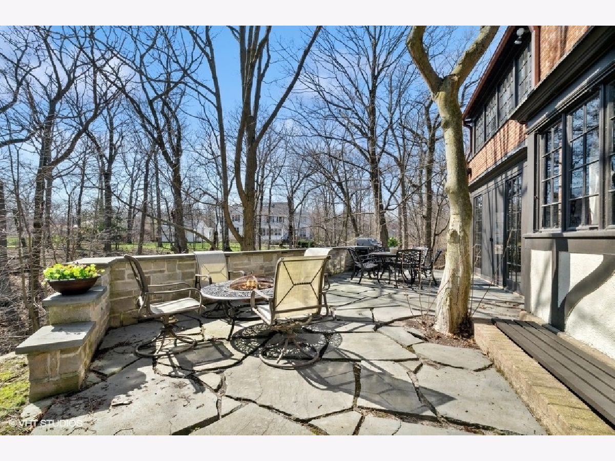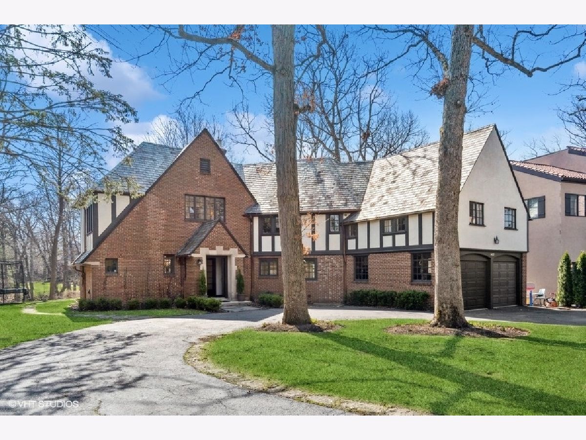 Elegant renovation of this classic English Tudor located on a half acre with sweeping ravine views in prime East Highland Park location. This 5 bedroom, 3 full and 1 half bath home has been updated & merges classic architecture with modern luxury. Formal entry with glass door and timeless black and white marble flooring opens to a large family room with wood burning fireplace and endless ravine views. Formal dining room with original wood beamed ceiling, fireplace, wall of windows and French doors leading to sunroom featuring terracotta flooring, built-in bar and sliders out to newly expanded blue flagstone patio & limestone retaining wall. A stunning high-end kitchen with custom white wood cabinetry, professional stainless-steel appliances, quartz counters, subway tile backsplash, island with seating & eat-in area. First floor private office, formal powder room and mudroom leading to 2 car garage with dog shower completes first level. Second floor features private primary suite with walk-in closet & sitting room. Updated marble bath with large shower, soaking tub & double sinks. 4 additional bedrooms, 2 bedrooms share a new Jack & Jill bath and the other 2 utilize a renovated hall bath. Upstairs laundry. Unfinished lower level has great storage plus the potential to create a recreation room, wine cellar and is roughed in plumbed for a full bath. Private professionally landscaped property with large side yard and flagstone patio looks over the ravine. Ideal east Highland Park location close to the lake, town and train. Additional improvements include: copper gutters/downspouts, extensive landscape/hardscape work, new electrical, plumbing, boiler, AC, water service.
