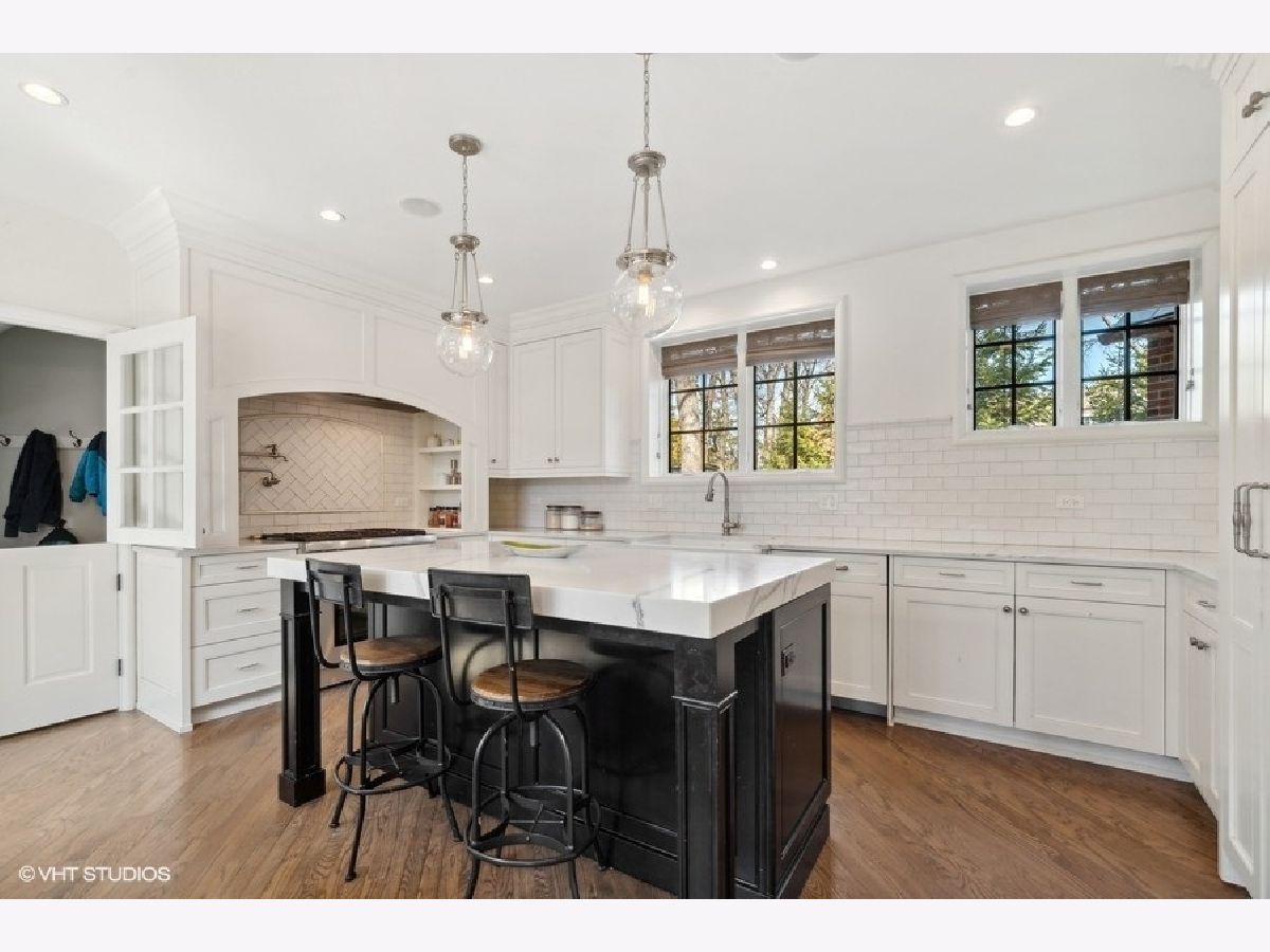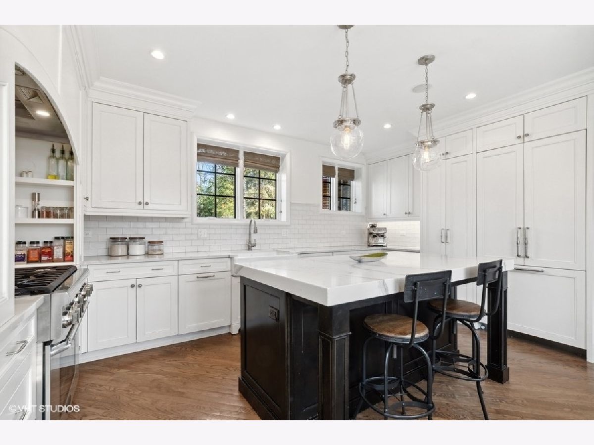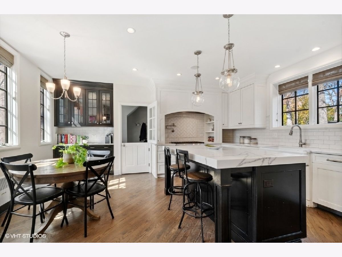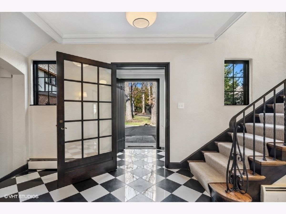 Elegant renovation of this classic English Tudor located on a half acre with sweeping ravine views in prime East Highland Park location. This 5 bedroom, 3 full and 1 half bath home has been updated & merges classic architecture with modern luxury. Formal entry with glass door and timeless black and white marble flooring opens to a large family room with wood burning fireplace and endless ravine views. Formal dining room with original wood beamed ceiling, fireplace, wall of windows and French doors leading to sunroom featuring terracotta flooring, built-in bar and sliders out to newly expanded blue flagstone patio & limestone retaining wall. A stunning high-end kitchen with custom white wood cabinetry, professional stainless-steel appliances, quartz counters, subway tile backsplash, island with seating & eat-in area. First floor private office, formal powder room and mudroom leading to 2 car garage with dog shower completes first level. Second floor features private primary suite with walk-in closet & sitting room. Updated marble bath with large shower, soaking tub & double sinks. 4 additional bedrooms, 2 bedrooms share a new Jack & Jill bath and the other 2 utilize a renovated hall bath. Upstairs laundry. Unfinished lower level has great storage plus the potential to create a recreation room, wine cellar and is roughed in plumbed for a full bath. Private professionally landscaped property with large side yard and flagstone patio looks over the ravine. Ideal east Highland Park location close to the lake, town and train. Additional improvements include: copper gutters/downspouts, extensive landscape/hardscape work, new electrical, plumbing, boiler, AC, water service.