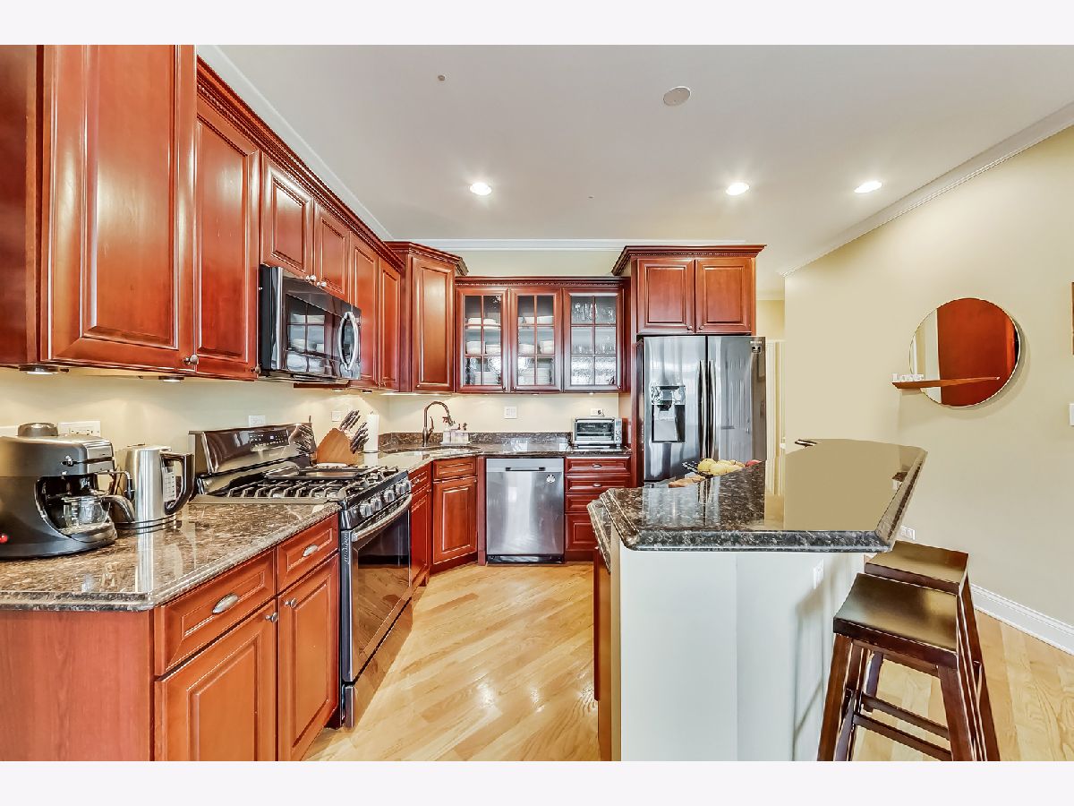 Don't miss out on this exceptionally spacious, 3 bedroom, 2 bathroom condo in the A+ Burley Elementary District, about 1/2 block from Southport Corridor! This beautiful home features a spacious, private deck with two entry points, two large (tandem) parking spaces, and in-unit laundry. The sprawling floor plan, accented with details like crown molding, chair rails, and clean diagonal flooring, provides both functionality and style. Enjoy a modern kitchen with plenty of gorgeous cherry cabinet space, all stainless steel appliances, granite counter tops and gas stove. The open concept living and dining areas create a perfect entertaining atmosphere! Master suite boasts plenty of closet space and access to the private deck. The en-suite bathroom with a Whirlpool tub and a stone walk-in shower facilitate a 'spa-like' feel. Two more spacious bedrooms and a big bath with a Whirlpool are perfect for guests. Surround sound is installed throughout the house. Enjoy shared rooftop access, a deck option, heated private storage, and affordable assessments. Whole Foods, the Southport El, acclaimed cuisine, theatre, and boutique gyms are all within walking distance!