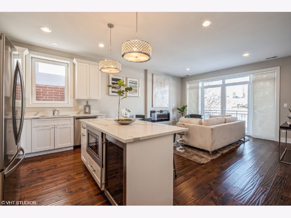 GORGEOUS PILSEN LOCATION~ SPACIOUS LIGHT BRIGHT TOP FLOOR UNIT WITH CITY VIEWS. THIS LARGE OFFERS GREAT OPEN SPACES, 8' DOORS, TALL CEILINGS, LARGE BEDROOMS, GOURMET KITCHEN WITH QUARTZ COUNTERS, STAINLESS STEEL APPLIANCES AND WINE COOLER. RELAX ON YOUR FRONT BALCONY AND LOOK AT THE EXPANSIVE CITY VIEWS OR IN FRONT OF YOUR COZY FIREPLACE. EXTRA STORAGE ROOM AND GARAGE PARKING MAKE THIS A PERFECT SPACIOUS HOME AT A GREAT PRICE.