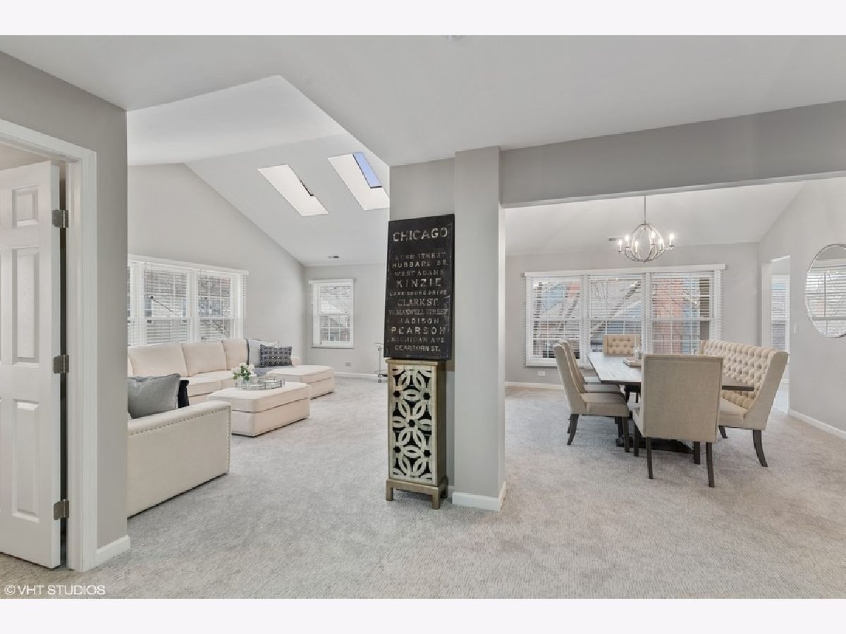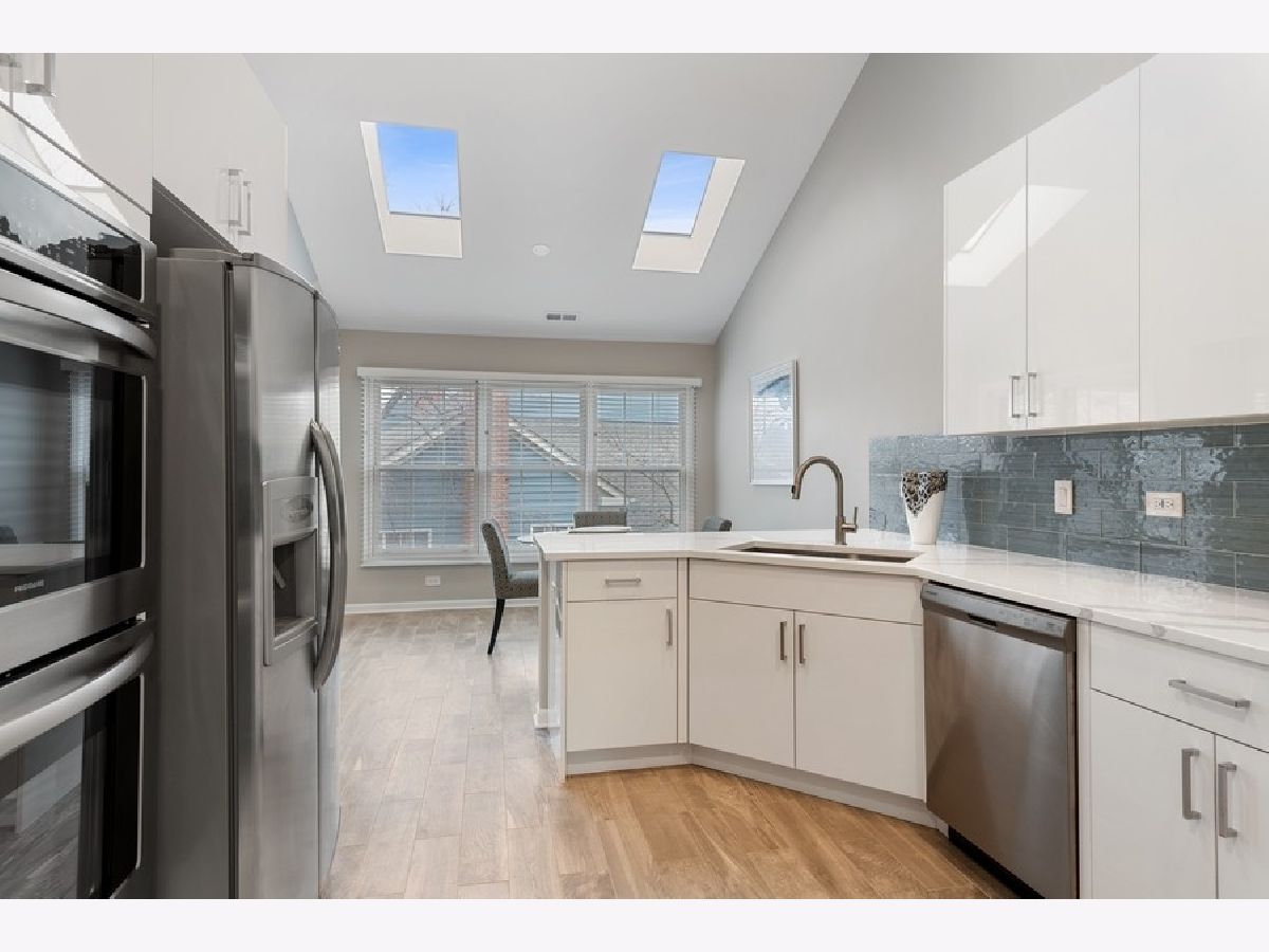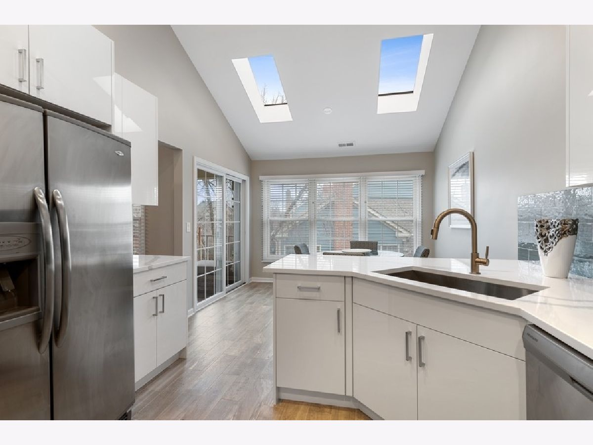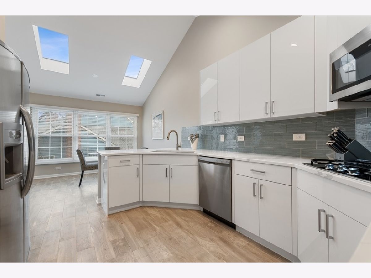 Beautifully rehabbed 3bd/2.1ba two story, gated townhome in Glenview's Princeton Village! Large, open floor plan that lives like a single family home features over 2400 sqft, an abundance of natural light, including skylights and vaulted ceilings along with three oversized bedrooms located on the same level. Rehabbed since purchase with structural improvements (new water heater, garage door, windows, blinds, flooring) complementing brand new high end finishes as well as generous storage space. The kitchen features gorgeous contemporary white cabinets, quartz counters and brand new stainless steel appliances. Oversized living room, dining room, and kitchen along with a family room featuring a beautifully upgraded gas fireplace with ample room for entertaining! Primary suite features a brand new bathroom with a double vanity with quartz counters, porcelain tile, and a quartz and glass shower with built in ledge. Second bedrooms include an ensuite bath perfect for guests. Separate full size laundry room with side by side washer and dryer. Spacious private balcony overlooking beautifully landscaped grounds. Enjoy resort style amenities including a recently remodeled clubhouse, pool and more! Private and peaceful gated community, maintenance free with professional landscaping and snow removal as well as roof/driveway maintenance and security. Close to parks, The Glen, the metra, (N/S & E/W) expressways, shopping, dining and the best of the North Shore! Modern, high-end finishes with all structural improvements completed and under warranty! Truly a turn key home from every angle!