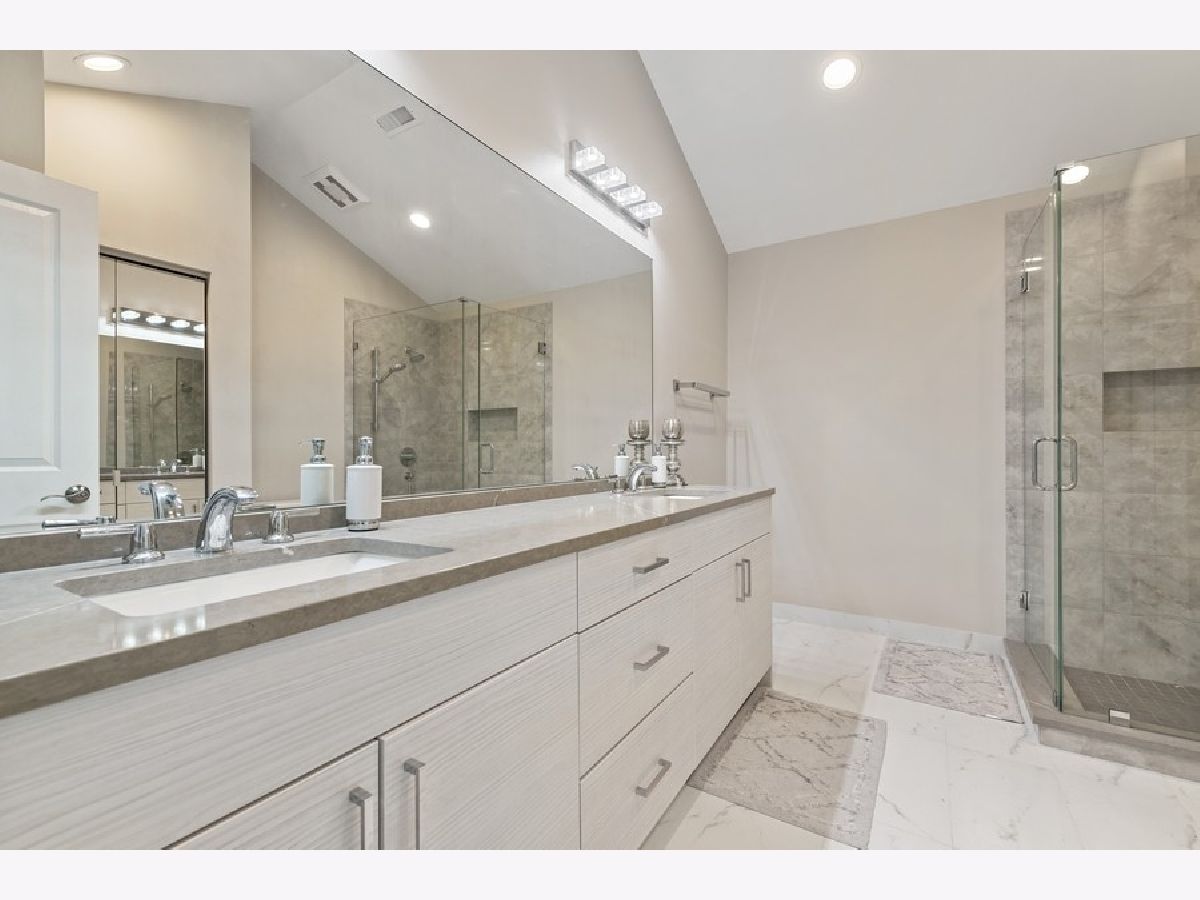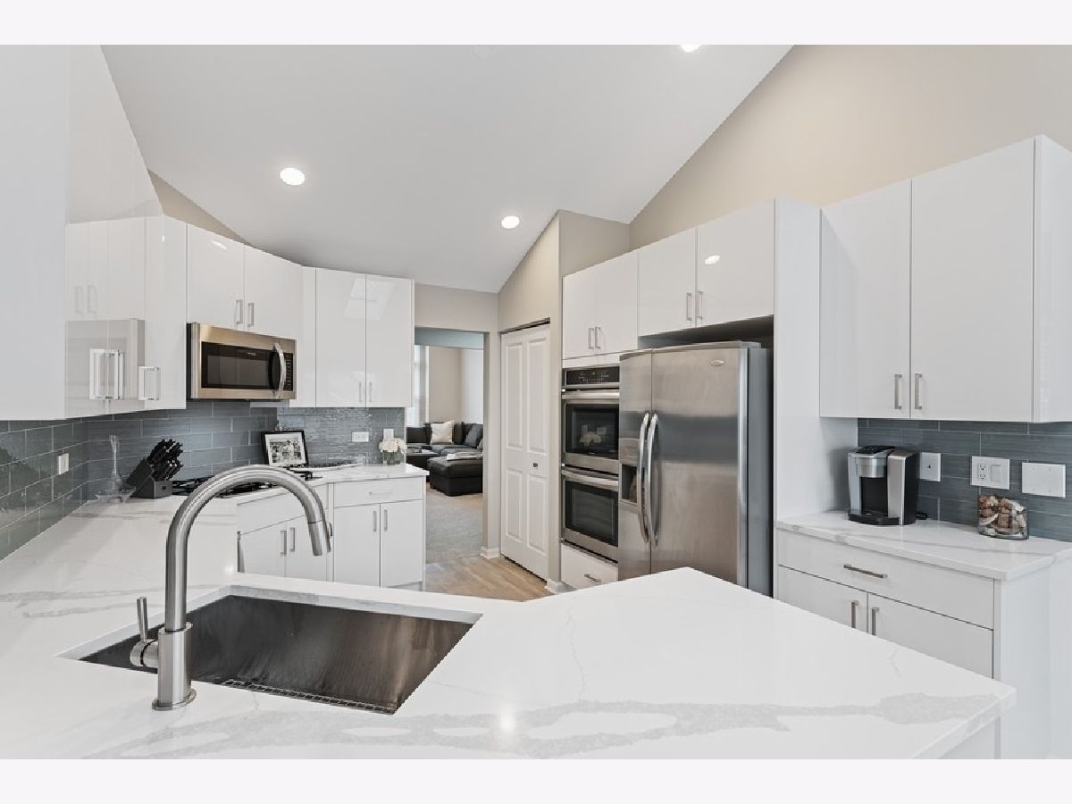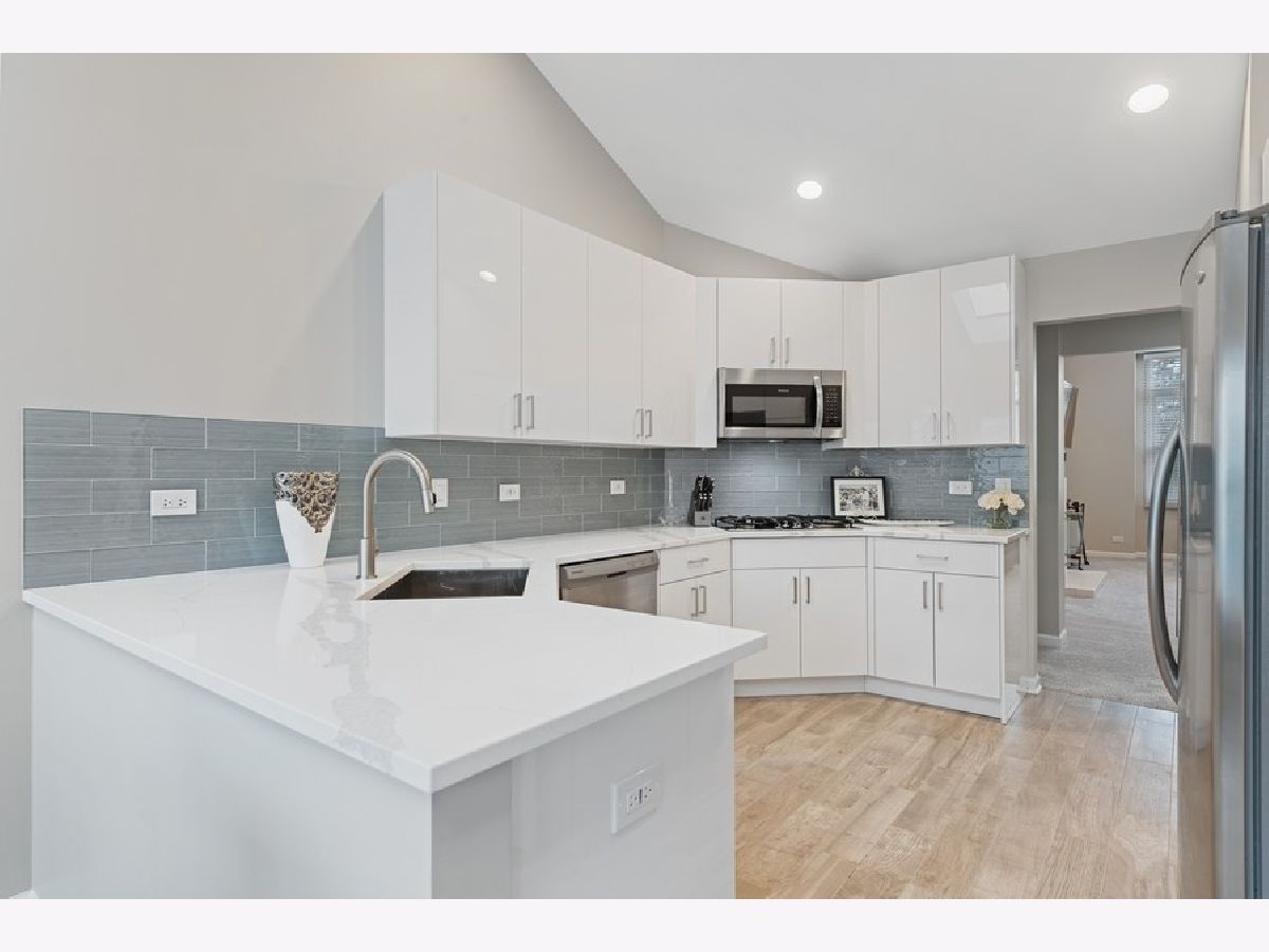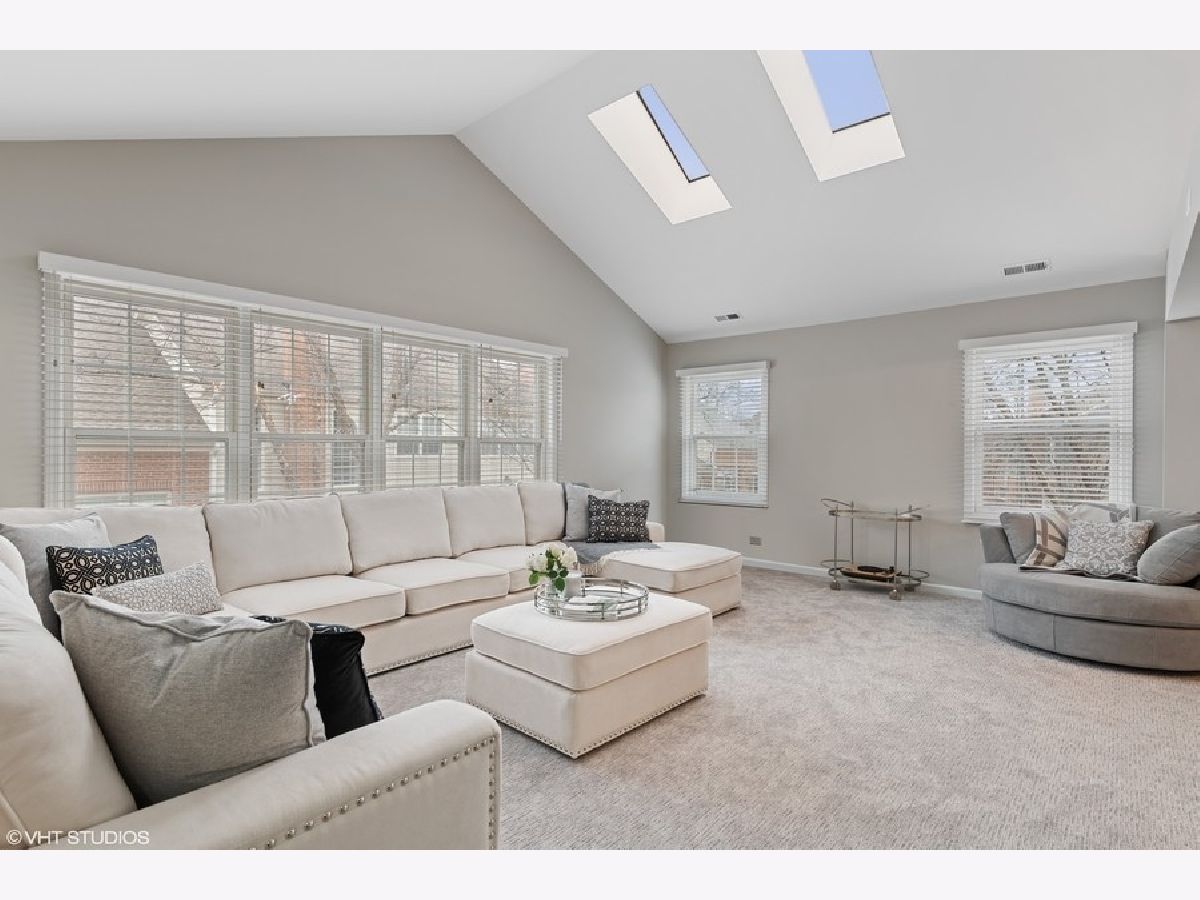 Beautifully rehabbed 3bd/2.1ba two story, gated townhome in Glenview's Princeton Village! Large, open floor plan that lives like a single family home features over 2400 sqft, an abundance of natural light, including skylights and vaulted ceilings along with three oversized bedrooms located on the same level. Rehabbed since purchase with structural improvements (new water heater, garage door, windows, blinds, flooring) complementing brand new high end finishes as well as generous storage space. The kitchen features gorgeous contemporary white cabinets, quartz counters and brand new stainless steel appliances. Oversized living room, dining room, and kitchen along with a family room featuring a beautifully upgraded gas fireplace with ample room for entertaining! Primary suite features a brand new bathroom with a double vanity with quartz counters, porcelain tile, and a quartz and glass shower with built in ledge. Second bedrooms include an ensuite bath perfect for guests. Separate full size laundry room with side by side washer and dryer. Spacious private balcony overlooking beautifully landscaped grounds. Enjoy resort style amenities including a recently remodeled clubhouse, pool and more! Private and peaceful gated community, maintenance free with professional landscaping and snow removal as well as roof/driveway maintenance and security. Close to parks, The Glen, the metra, (N/S & E/W) expressways, shopping, dining and the best of the North Shore! Modern, high-end finishes with all structural improvements completed and under warranty! Truly a turn key home from every angle!