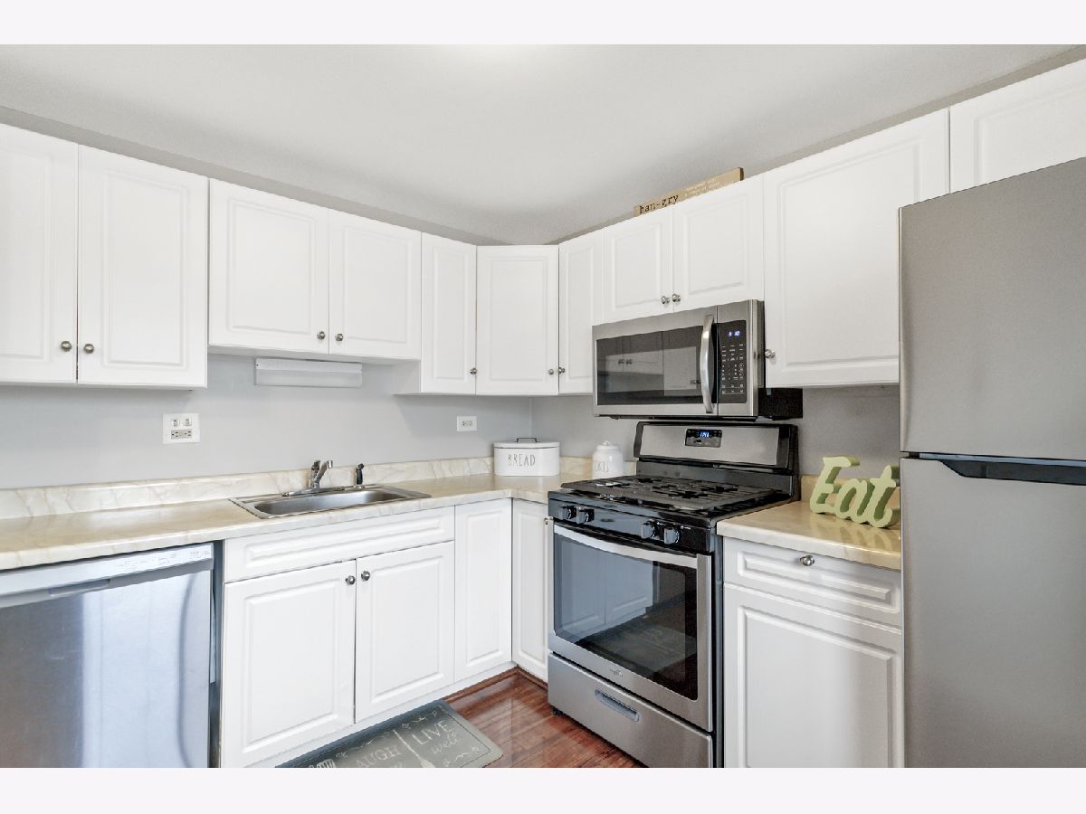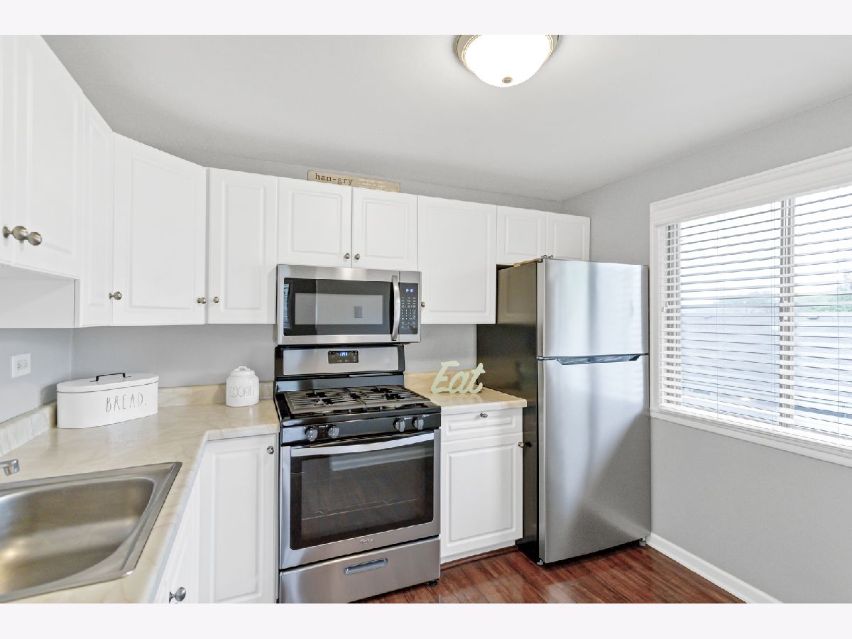 Updated 2 bedroom end unit condo in Weathersfield Commons~ nothing to do but move in. Spacious living room with an abundance of natural lighting opens to a dining area. The kitchen boasts modern white cabinetry, New stainless steel appliances, and plenty of counterspace. There is a large master bedroom and an additional bedroom with ample closet space. Updated bath with new lighted vanity mirror, Bluetooth LED exhaust fan, Subway tile around tub, new fixtures, and new non-slip tile flooring. First level laundry. New Carrier AC and furnace (2018). Located close to restaurants, shopping, schools, parks, and everything that Schaumburg has to offer. Won't last long!