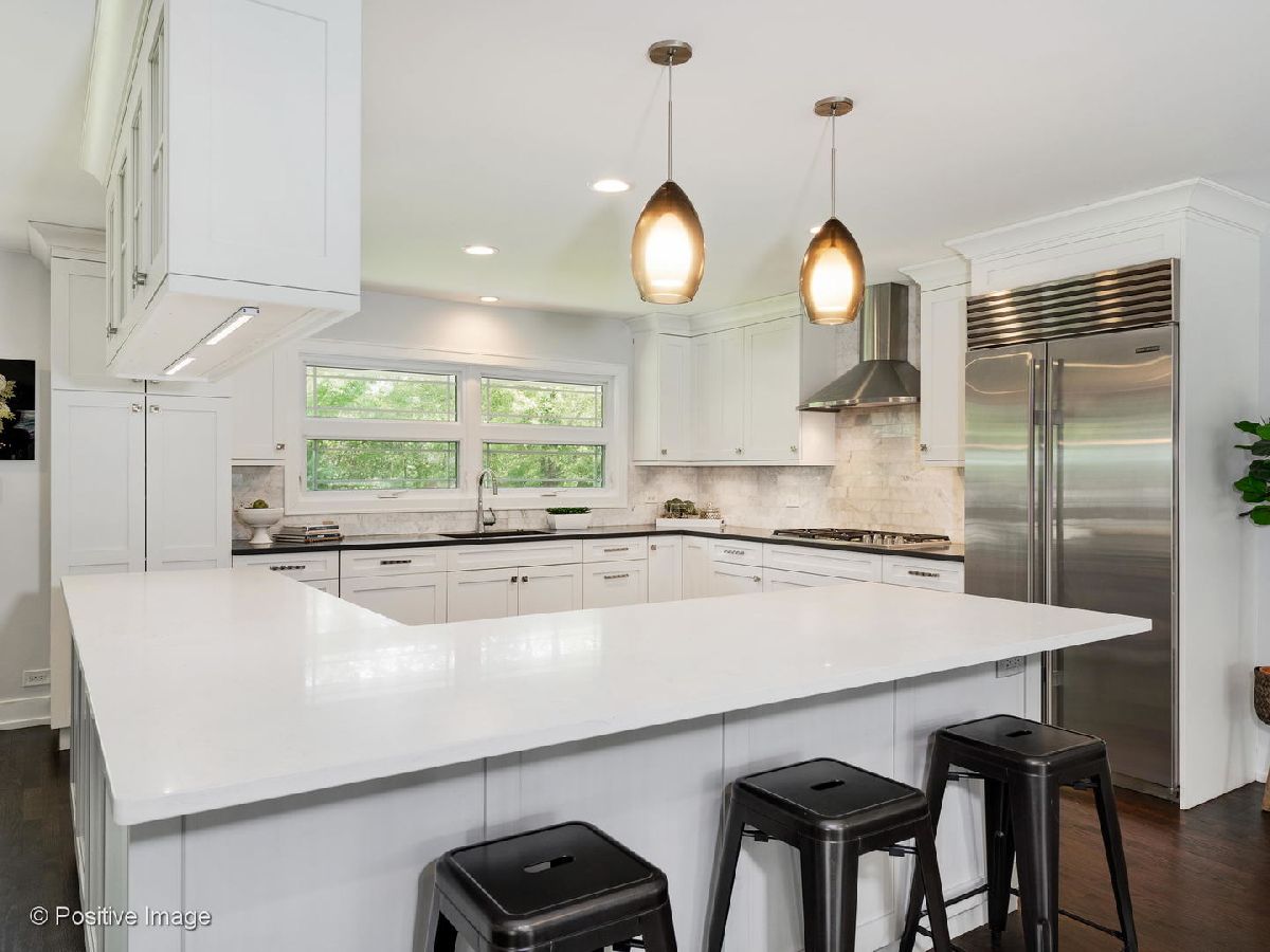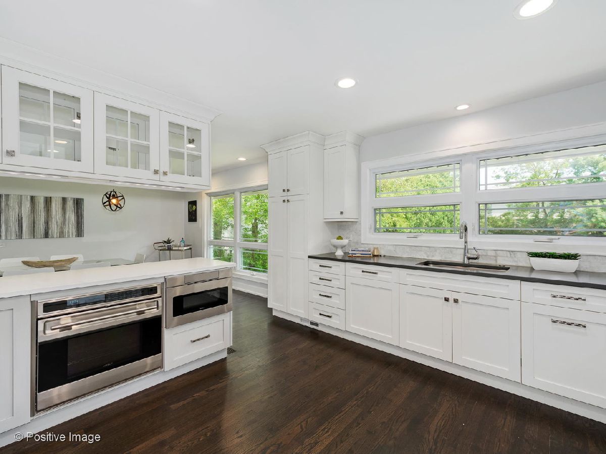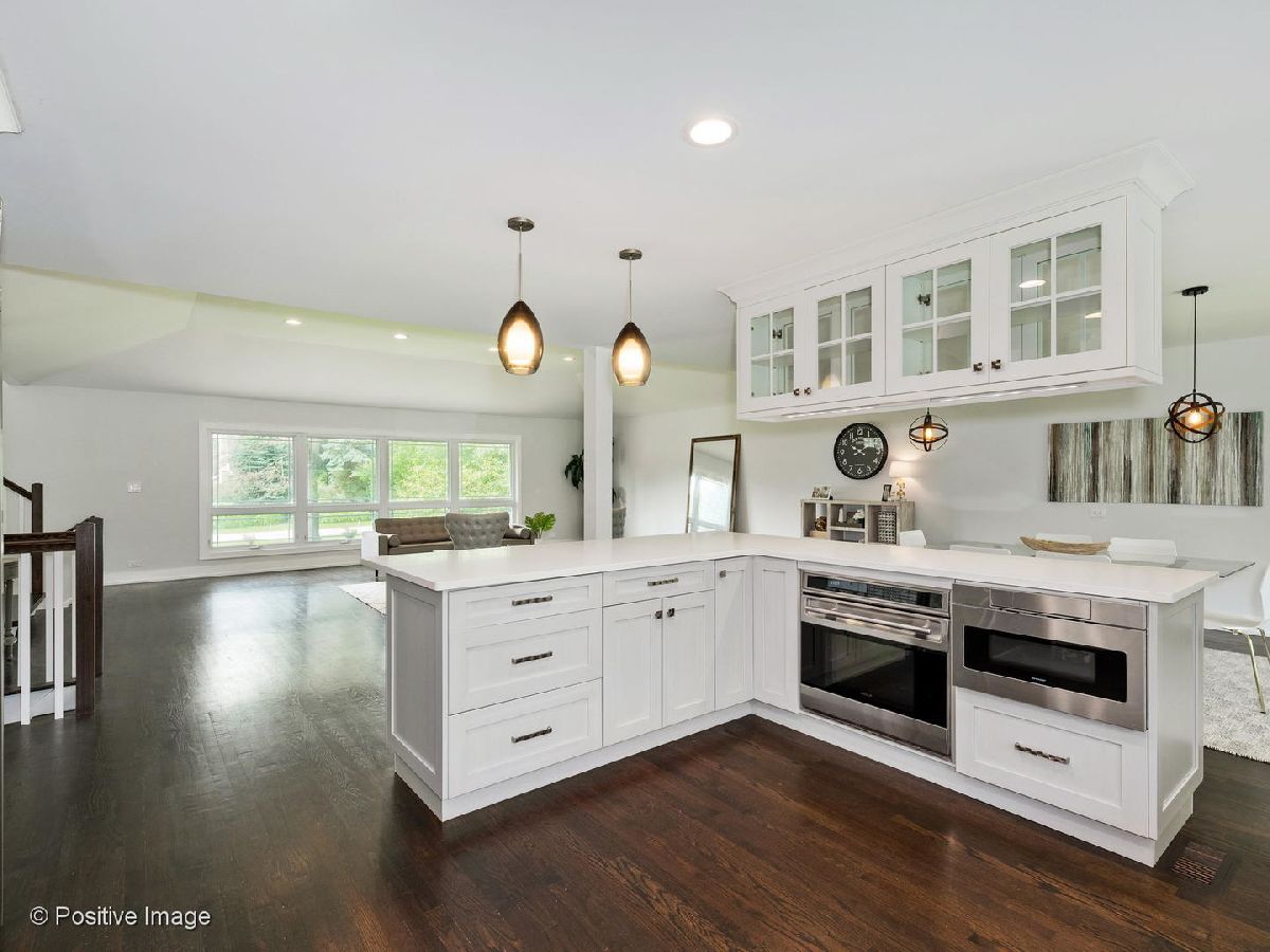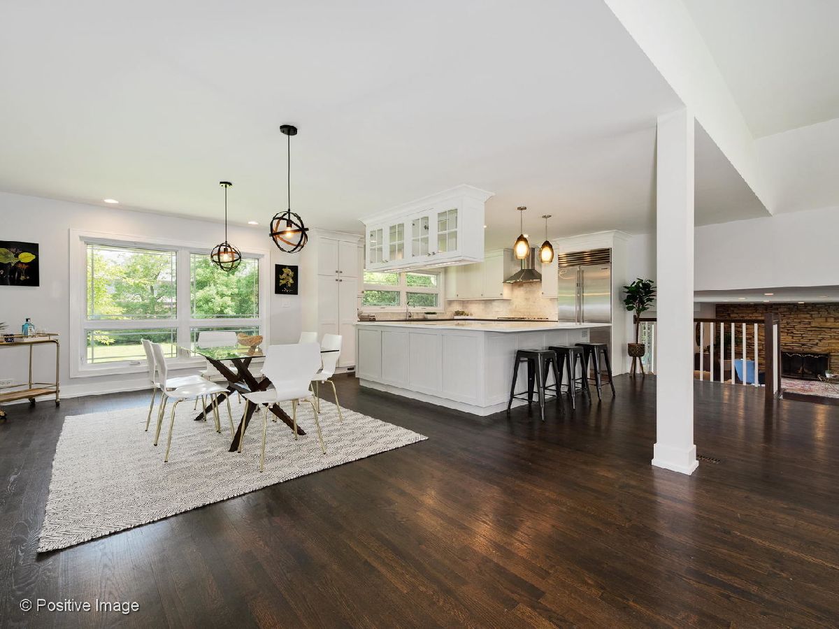 Recently Updated Mid-Century Modern Home on over 1/2 Acre lot in Desirable Golf Acres! Large Open Concept Floor Plan w/ Newly Renovated Kitchen Feat: White Cabinets, Quartz Counters, Breakfast Bar, Sub Zero Fridge, Wolf Oven/Cooktop, Marble Backsplash, and Under Cabinet Lighting. Wide Open to Spacious Living Room and Dining Room for the Ideal Entertaining Space. The Giant Family Room Open to the Main Living Space, with Stone Fireplace and Wall of Windows w/ Double Sliding Glass Doors. 4 Large Bedrooms Upstairs Incl: King Sized Master Suite w/ Walk-in Closet and Newly Renovated Bath w/ Quartz Double Vanity, Porcelain Tile, Separate Shower w/ Rain Head, and Soaking Tub. Updated Hall Bath w/ Double Marble Vanity. Finished Basement w/ Rec Room, Full Bath, optional Office or 5th Bedroom and Laundry Room. Giant, Private Backyard w/ Concrete Patio and Shed. Zoned HVAC. Oversized Attached 2 Car Garage. Very convenient location! Walking Distance to the Metra, Parks, and Downtown Glenview. Must See! Vacant, Easy to Show!