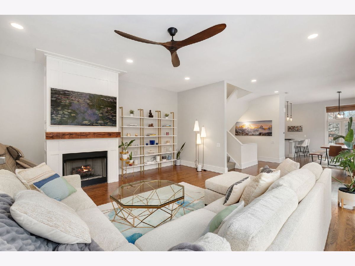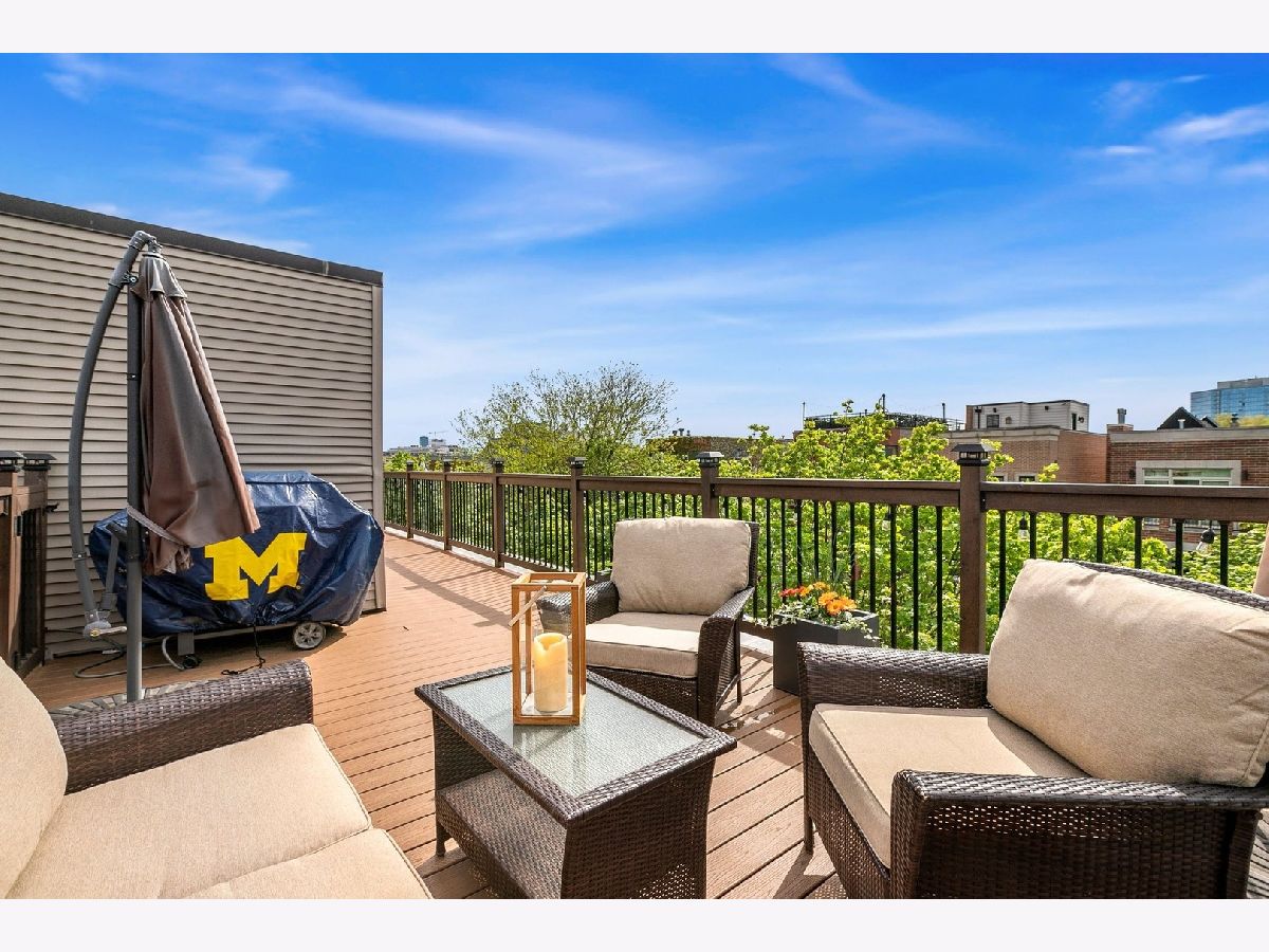 This bright, extra-wide townhome in Old Town's Cleveland Court lives like a single-family home with four full levels of stylish, modern living. With an impressive 4 Br+Den/4Ba layout, wraparound windows, and a unique private entrance, it is the largest floorplan in the complex. The main floor showcases 10' windows, stained hardwoods, and a convenient, open floor plan from the dining room to the living room, which boasts a gas fireplace and custom reclaimed-wood mantle. The beautifully updated kitchen features designer finishes with a quartzite island, ceramic backsplash, and stainless appliances. Four generous bedrooms include three en-suite layouts, plus a fourth full bath-ideal for guests and flexible living. Upstairs, the enclosed 4th-floor den is a true work from home retreat and opens to an expansive rooftop deck with new composite decking-perfect for entertaining and enjoying the Chicago skyline views. Side-by-side laundry and an attached 2-car garage complete this rare city offering near transit, parks, beaches, shopping, and dining. Incredible location with easy walkability to Old Town, Lincoln Park, and Gold Coast destinations.