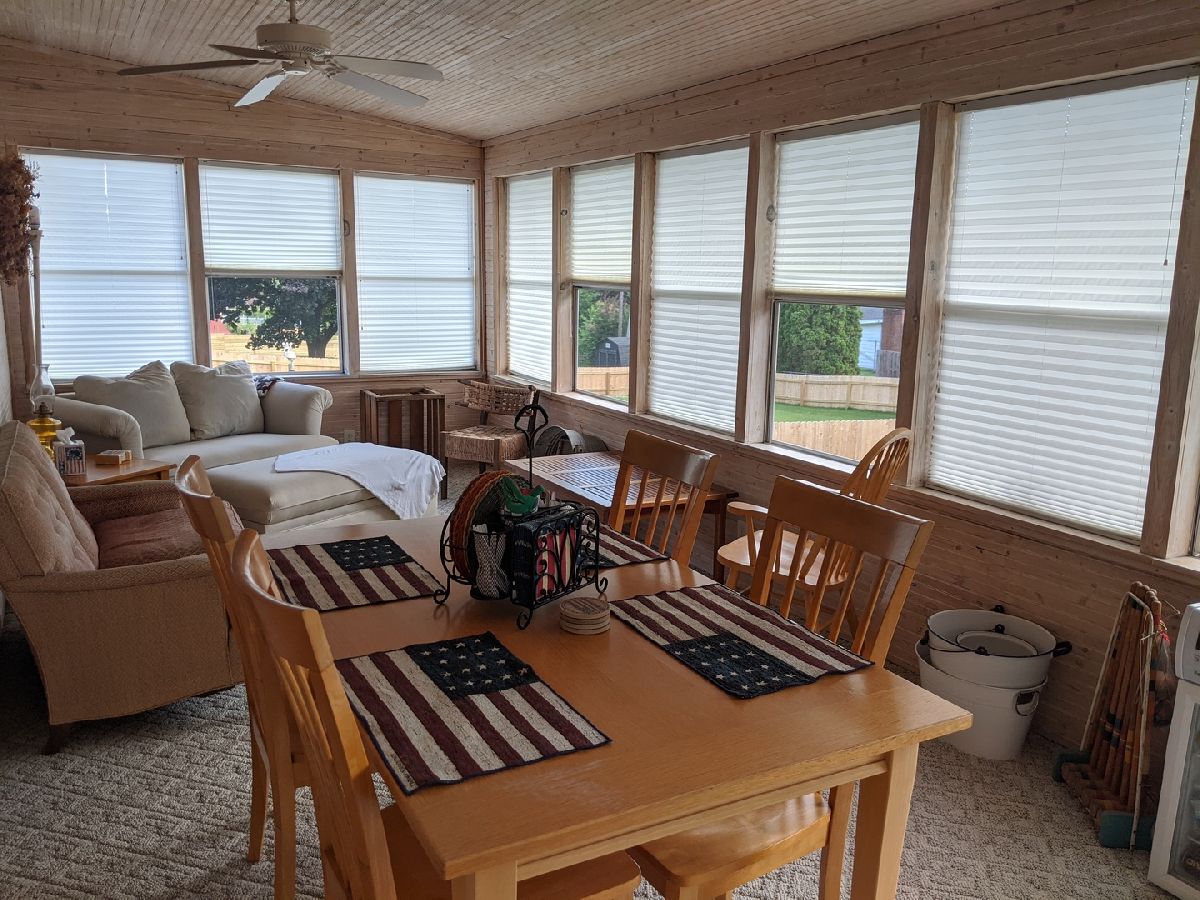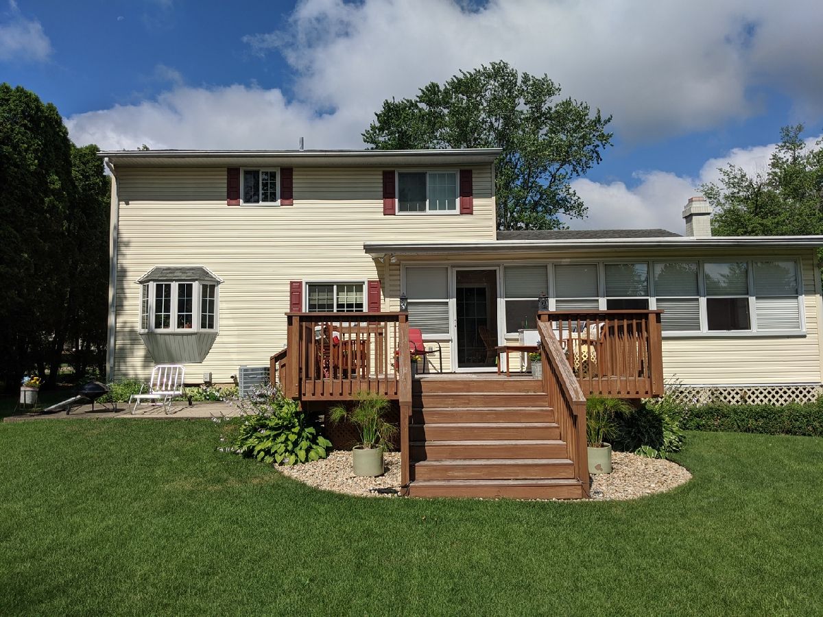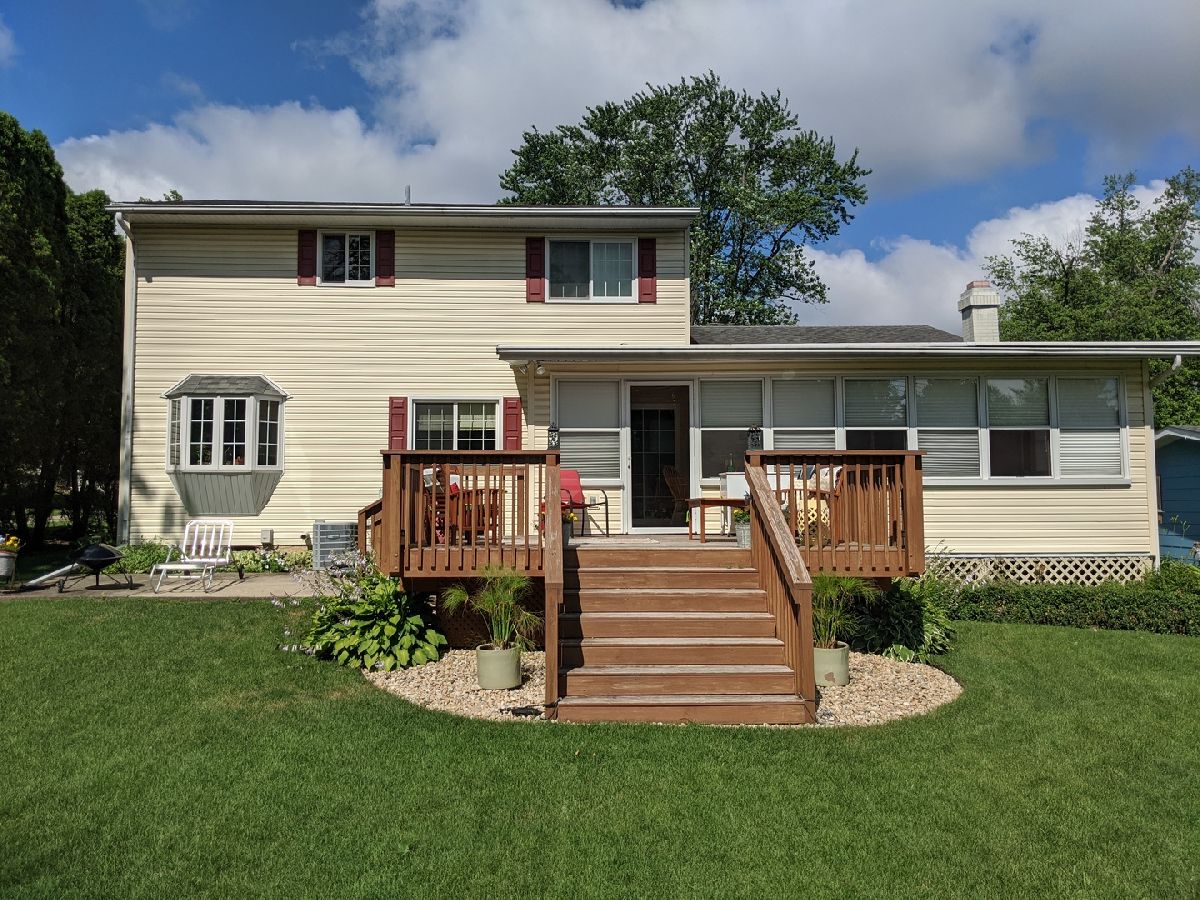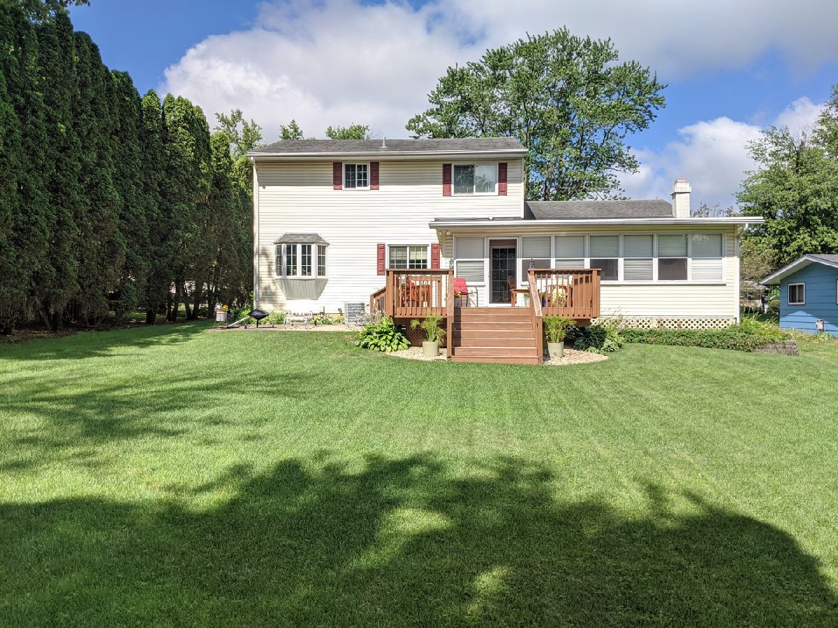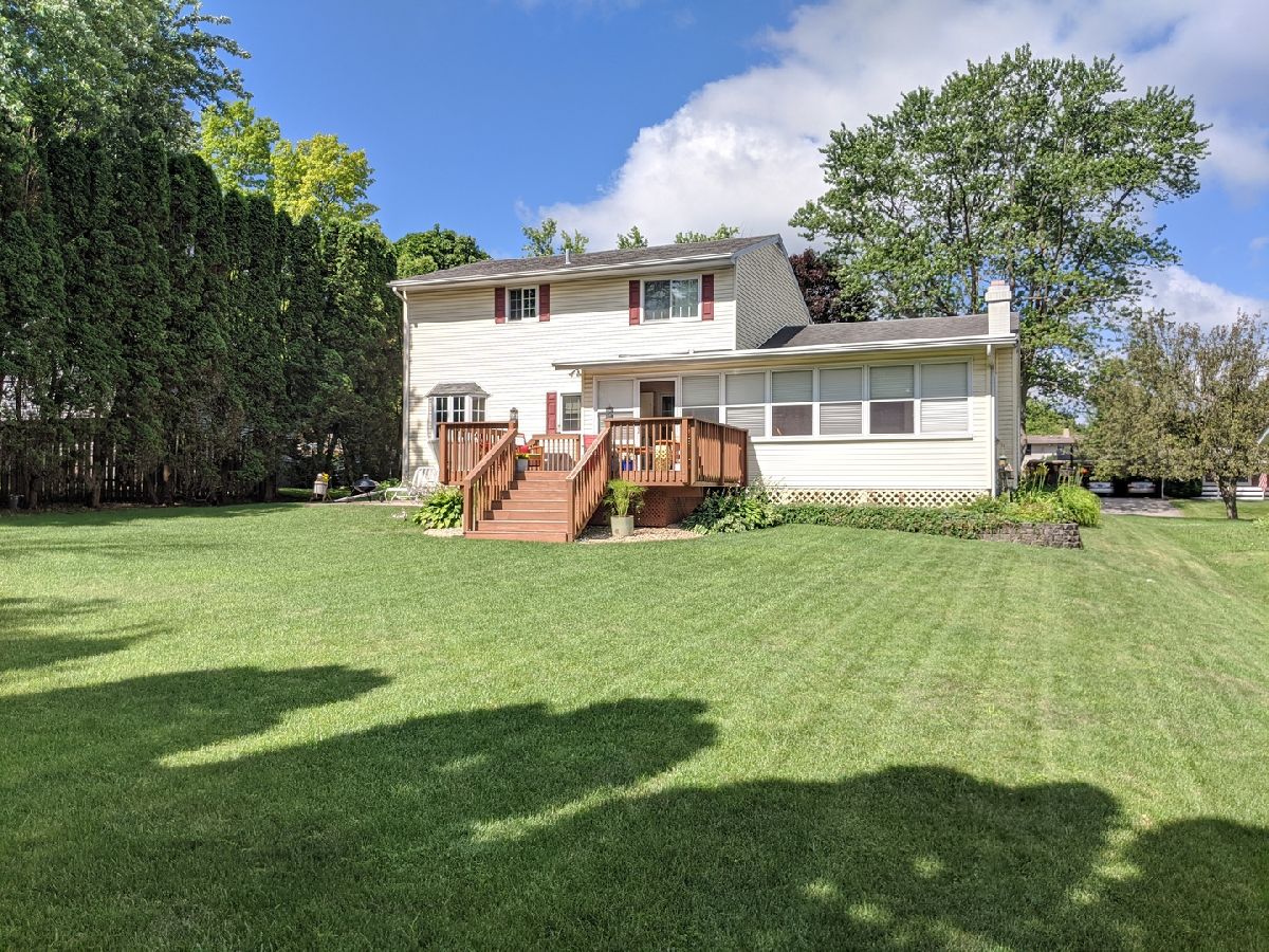 So many updates & 1 yr home warranty. Large windows bringing in tons of natural light. Covered front porch is 30' x 9' brings you into front living room w floor to ceiling windows, open staircase & open to formal dining rm w bay window. Kitchen w breakfast bar, pantry, eating area, family rm w built in bookcases on both sides of the fireplace & sliding door to 3 season porch. 12' x 8' deck and 19' x 9' patio giving you plenty of space to enjoy the spacious backyard w bonus 12' x 12' shed. Very private feeling with arborvitae natural fence green year around. Upstairs has french doors leading into master suite w full bath & walk in closet. Total of 4 bdrs upstairs, 2nd full bth & laundry chute. LL has huge family room plus additional storage rm & laundry rm w wash sink. Main floor has all new laminate flooring making it all solid surfaces easy to clean w tile entry & half bath. All appliances stay including washer and dryer. Hi eff GFA w April Aire & Central air new 2012. Water softener and reverse osmosis. Affordable living with utilities avg $127 for electric, $94 for gas and $80 for water/sewer.