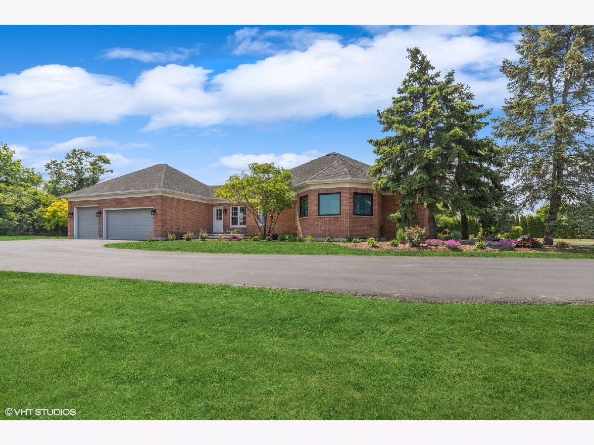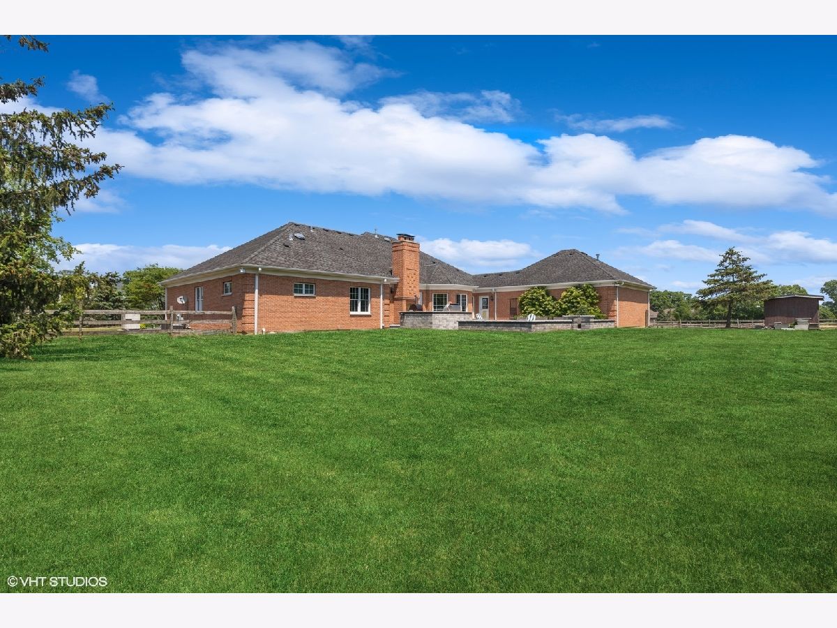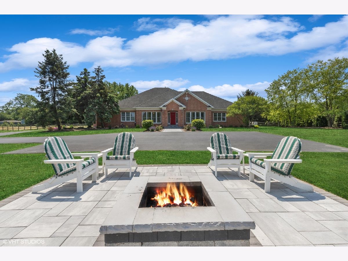 Spectacular all brick ranch home on five acres of beautiful land nestled between Lake Forest and Libertyville in the charming equestrian village of Mettawa. This sophisticated custom home filled with natural light has 3,739 sq ft of living space on the main level plus 3,739 square feet on the lower level (mostly finished). The picturesque property is entirely fenced with a gated entrance. The open floorplan gourmet kitchen features a large island, double oven, stainless steel appliances, and sunny eating area space with beautiful views of the backyard. The kitchen opens up to the family room with woodburning fireplace and tray ceiling. The butler's pantry with new ice maker and wine fridge leads you into the elegant dining room with picture frame wainscoting and detailed crown molding. The living room with tray ceiling and fireplace has large windows to provide beautiful views of the front of the property. Escape to the private bedroom wing featuring four walk-in closets with new custom closet organizers (largest was formally used as a sitting room/office by prior homeowners) and a completely updated luxurious spa bathroom with radiant-heated floors, walk-in glass steam shower, separate vanities, and much more (*don't forget to look up at the ceiling in this showstopper bathroom*). Three additional en-suite bedrooms are located on the opposite side of the house each with their own walk-in closet with new custom closet organizers (except for bedroom currently being used as an office). This home has a total of 4 fireplaces, hardwood floors on the main floor, large mudroom, and first floor laundry room. The spacious lower level includes a high-end home theater with 11 power reclining seats, combined entertainment/exercise room with fireplace, full bathroom, and additional rooms for endless possibilities such as a wine cellar and hobby room. Enjoy outdoor living and entertaining on the new backyard stone patio with outdoor fireplace, accent lights, outside kitchen (built-in BBQ-grill and pizza oven) and gas firepit. And if you need additional space for entertaining, you have a new patio in the front of the house with a wood-burning firepit complete with 10 Adirondack chairs perfect for making tasty smores. Other recent updates to the property include an oversized backup generator, in-ground irrigation system with rain sensor, additional security cameras, floodlights, and much more. Attached oversized 3.5-car heated garage with storage closets for all your bikes and toys. Zoned for horses/agriculture with LOW PROPERTY TAXES. Award winning Libertyville High School and Roundout School. A truly exception offering surrounded by beautiful nature, prairie lands, and Forest Preserve trails, yet only minutes from Mellody Farm, upscale shops and restaurants of downtown Lake Forest and Libertyville, and easy access to I-94, Metra Train, and O'Hare Airport. A hard-to-find spacious ranch home on a beautiful serene setting with low property taxes - Not to be missed!
