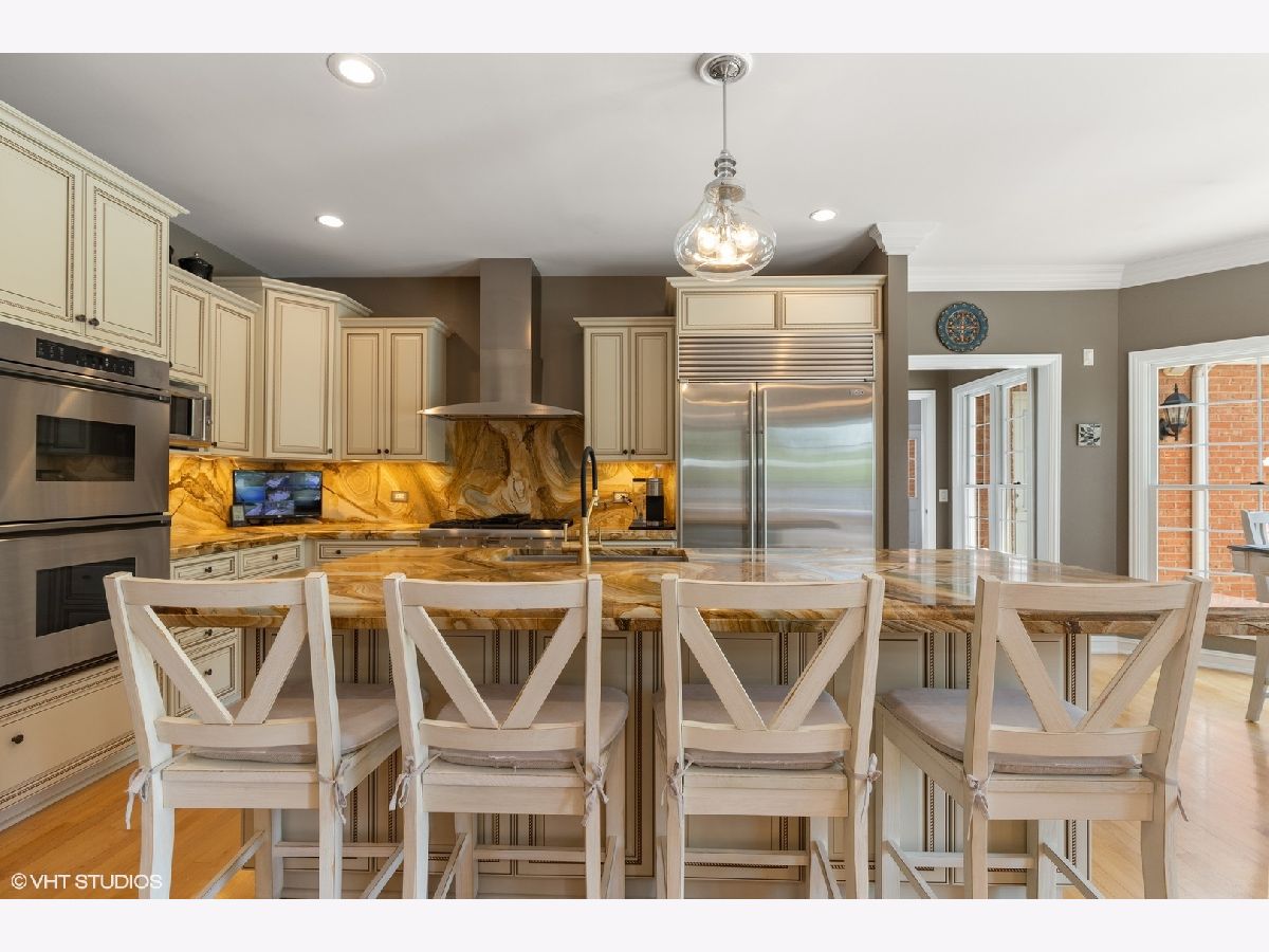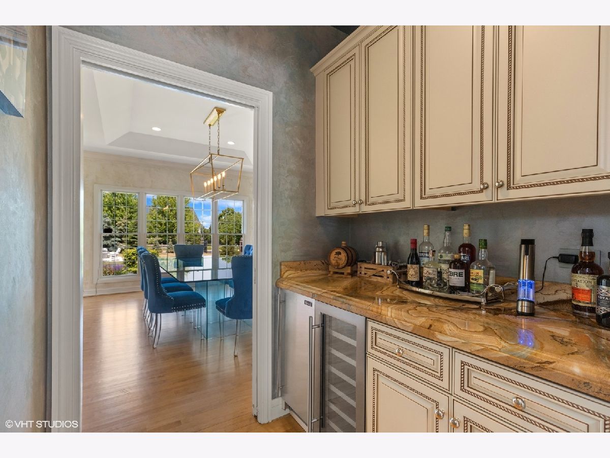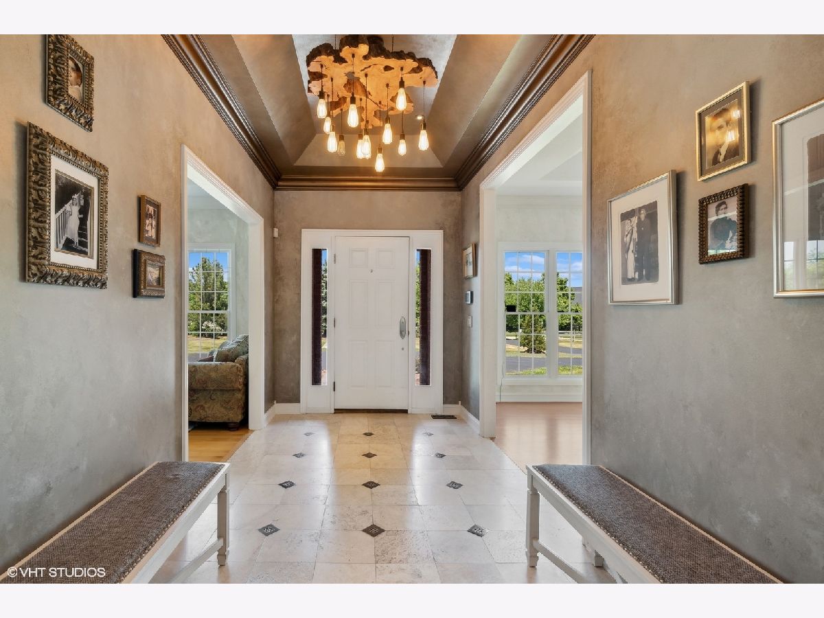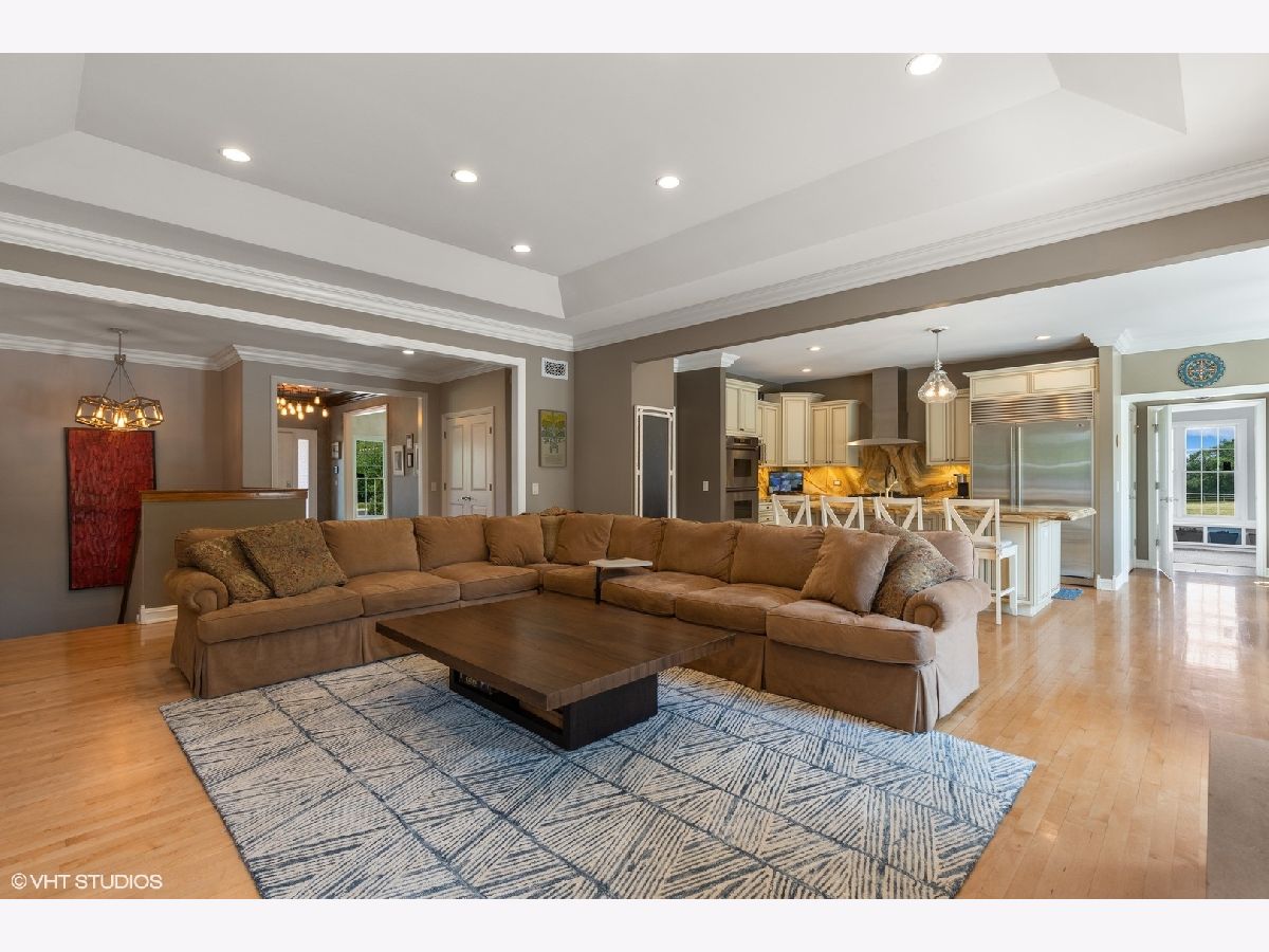 Spectacular all brick ranch home on five acres of beautiful land nestled between Lake Forest and Libertyville in the charming equestrian village of Mettawa. This sophisticated custom home filled with natural light has 3,739 sq ft of living space on the main level plus 3,739 square feet on the lower level (mostly finished). The picturesque property is entirely fenced with a gated entrance. The open floorplan gourmet kitchen features a large island, double oven, stainless steel appliances, and sunny eating area space with beautiful views of the backyard. The kitchen opens up to the family room with woodburning fireplace and tray ceiling. The butler's pantry with new ice maker and wine fridge leads you into the elegant dining room with picture frame wainscoting and detailed crown molding. The living room with tray ceiling and fireplace has large windows to provide beautiful views of the front of the property. Escape to the private bedroom wing featuring four walk-in closets with new custom closet organizers (largest was formally used as a sitting room/office by prior homeowners) and a completely updated luxurious spa bathroom with radiant-heated floors, walk-in glass steam shower, separate vanities, and much more (*don't forget to look up at the ceiling in this showstopper bathroom*). Three additional en-suite bedrooms are located on the opposite side of the house each with their own walk-in closet with new custom closet organizers (except for bedroom currently being used as an office). This home has a total of 4 fireplaces, hardwood floors on the main floor, large mudroom, and first floor laundry room. The spacious lower level includes a high-end home theater with 11 power reclining seats, combined entertainment/exercise room with fireplace, full bathroom, and additional rooms for endless possibilities such as a wine cellar and hobby room. Enjoy outdoor living and entertaining on the new backyard stone patio with outdoor fireplace, accent lights, outside kitchen (built-in BBQ-grill and pizza oven) and gas firepit. And if you need additional space for entertaining, you have a new patio in the front of the house with a wood-burning firepit complete with 10 Adirondack chairs perfect for making tasty smores. Other recent updates to the property include an oversized backup generator, in-ground irrigation system with rain sensor, additional security cameras, floodlights, and much more. Attached oversized 3.5-car heated garage with storage closets for all your bikes and toys. Zoned for horses/agriculture with LOW PROPERTY TAXES. Award winning Libertyville High School and Roundout School. A truly exception offering surrounded by beautiful nature, prairie lands, and Forest Preserve trails, yet only minutes from Mellody Farm, upscale shops and restaurants of downtown Lake Forest and Libertyville, and easy access to I-94, Metra Train, and O'Hare Airport. A hard-to-find spacious ranch home on a beautiful serene setting with low property taxes - Not to be missed!
