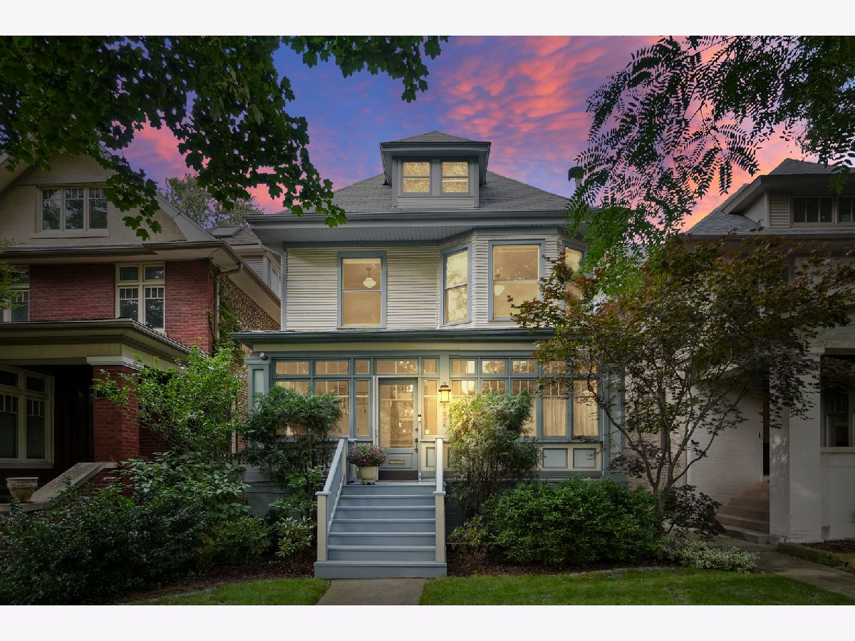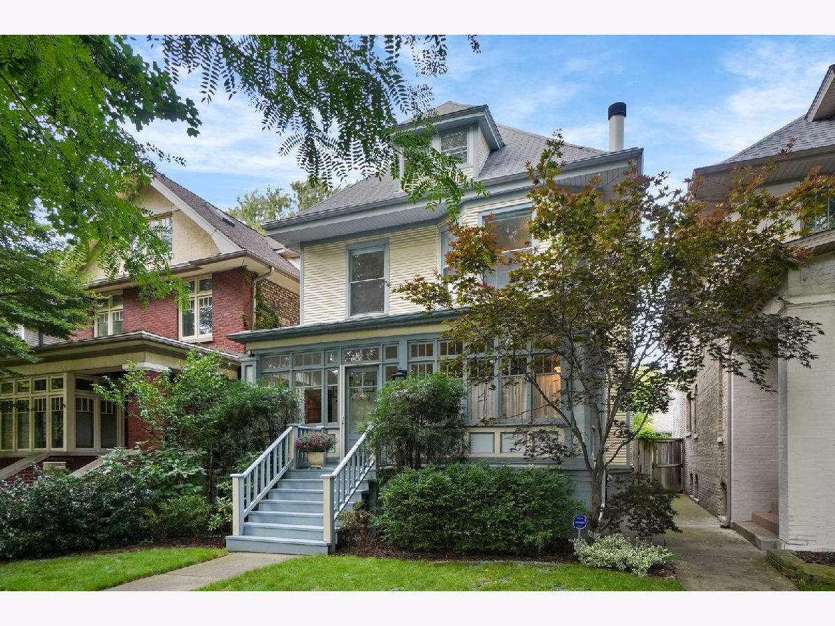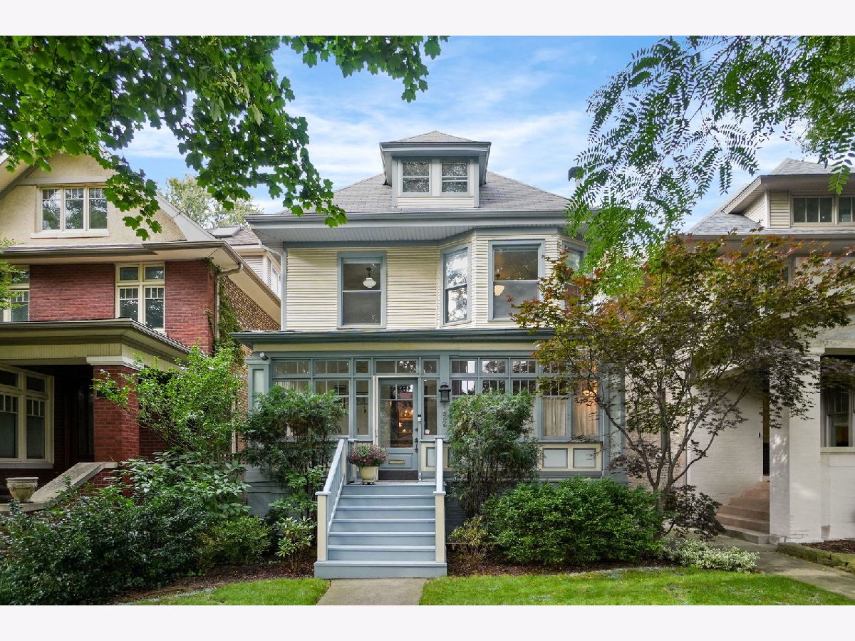 NEW LOOK! This delightful American Four Square in Graceland West offers a harmonious fusion of vintage and contemporary style. Sitting on an extra wide 30 foot lot this home Boasts 5 bedrooms UP, 3 1/2 baths, and an amazing family room with mud room that leads out to a wonderfully landscaped back yard. As you enter, an enclosed porch graces the home overlooking tree-lined Hutchinson. The formal entry way leads to a wonderful living room that exudes coziness with its wood-burning fireplace, while a sunlit south facing sitting area with wrap-around windows invites relaxation.The dining area, seamlessly connects to the kitchen, 1/2 bath and living room providing the perfect hub for shared meals and cherished gatherings. The owners added a huge 16 x 15 family room off the back of the house complete with surround sound, vaulted ceilings, mudroom and skylights that leads to the spacious back yard. This area is a true hang out area. The open kitchen provides abundant cabinetry, a substantial island, and subzero fridge. The second floor boasts 4 good sized bedrooms and a full bathroom. Seamlessly ascend to the 3rd floor to the primary suite that boasts an office area, bedroom and a primary bath. The basement is currently used as a Pilates studio, but could also be a guest, bonus play/tv area. It also includes a full bath, storage and laundry area.The yard is a beautiful oasis lovingly landscaped with pavers and foliage and charming accented 2.5 car garage that adds to the character. The owners have lovingly maintained the home. It has dual HVAC systems, windows have been replaced with the exception of the vintage windows on the front of the home. 200 amp electric. Roof is about 8 years old. Graceland West is a wonderful neighborhood complete with an active Neighborhood association that organizes events such as garden walks, block parties and Halloween fun. Walking distance to the Southport Corridor, Wrigleyville, the Lake and the Red and Brown lines as well as prominent schools such as Ravenswood Elementary, Lake View Highschool and the Lycee Frances. This is a true gem.
