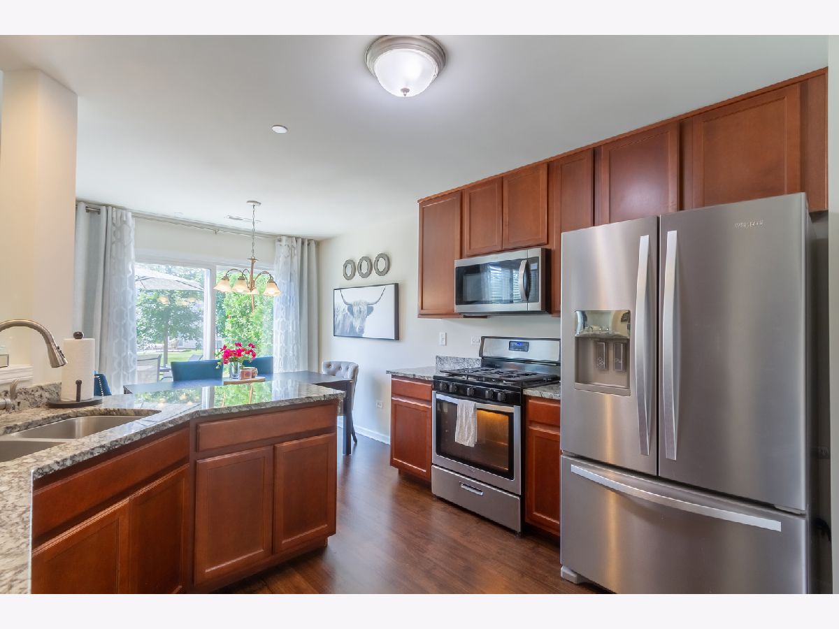 YOU'VE FOUND THE ONE! Built in 2019 ~ TRULY nothing to do but move in to this gorgeous townhome! Soaring two-story foyer welcomes you home, where you'll be met with a great open floorplan bathed in tons of natural light. Spacious living room adjoins the dining area and kitchen ~ ideal layout for entertaining! The kitchen boasts granite countertops, stainless steel appliances, and plenty of cabinet space. A half bath completes the main level. Upstairs, the impressive master suite features a huge walk-in closet and a private master bath with a double sink vanity. 2nd and 3rd bedrooms are generously sized and share access to the full hall bath. Convenient 2nd floor laundry!!! Loft is a bonus space, and could function as a home office, a play room, or whatever suits your needs. Attached two-car garage. The backyard includes a large, private concrete patio ~ perfect for relaxing! Great location, just steps from the Elementary School, Green's Filling Station Park, the tranquil neighborhood pond, and miles of walking/biking trails! Close access to Route 34 and Route 47 with shopping, dining, and other amenities. This one has it all... WELCOME HOME!