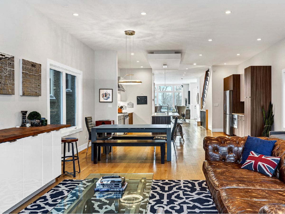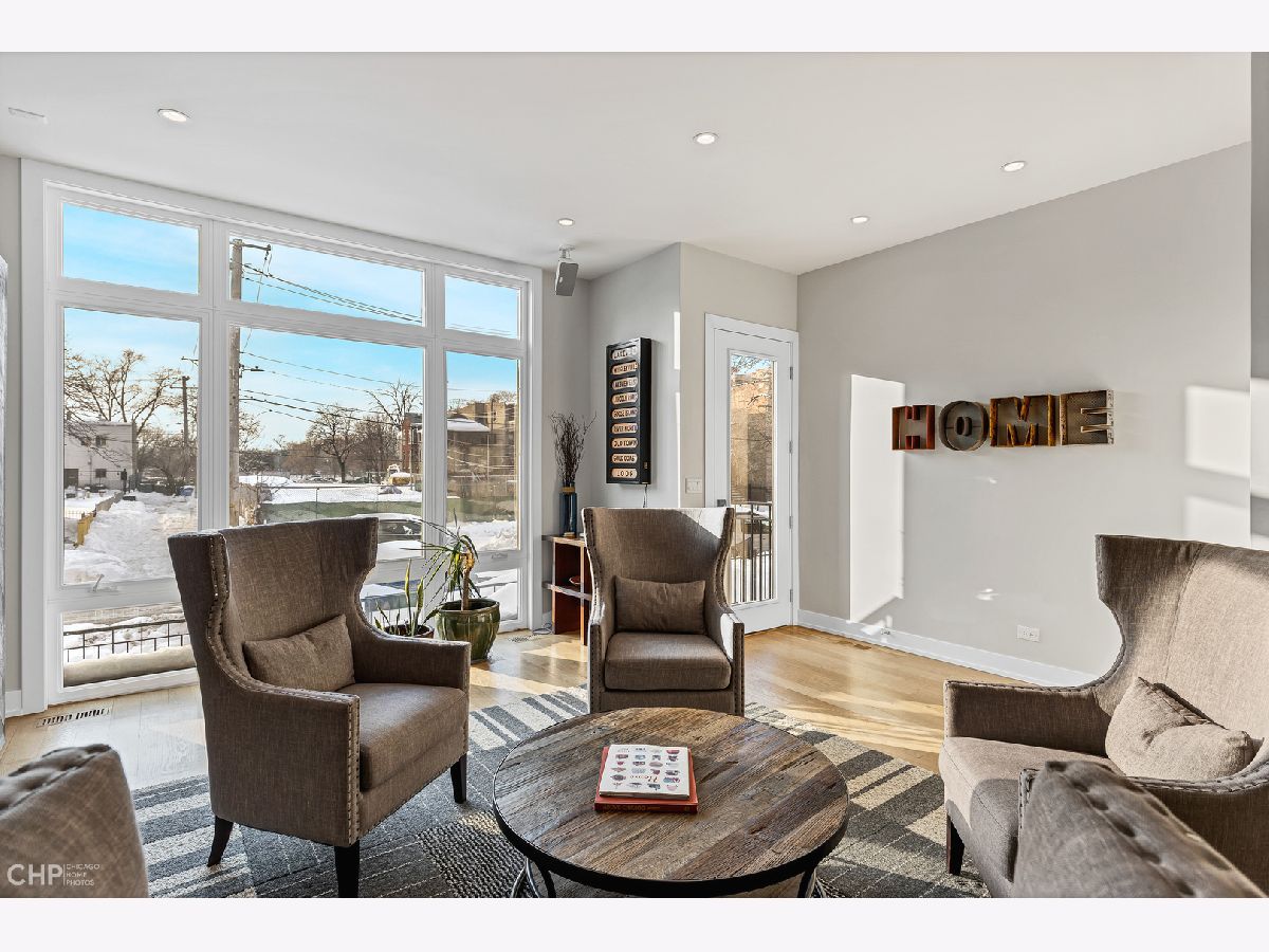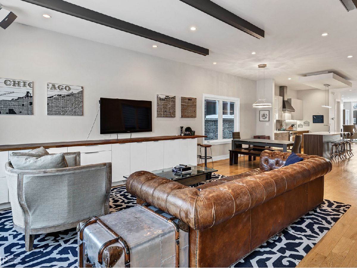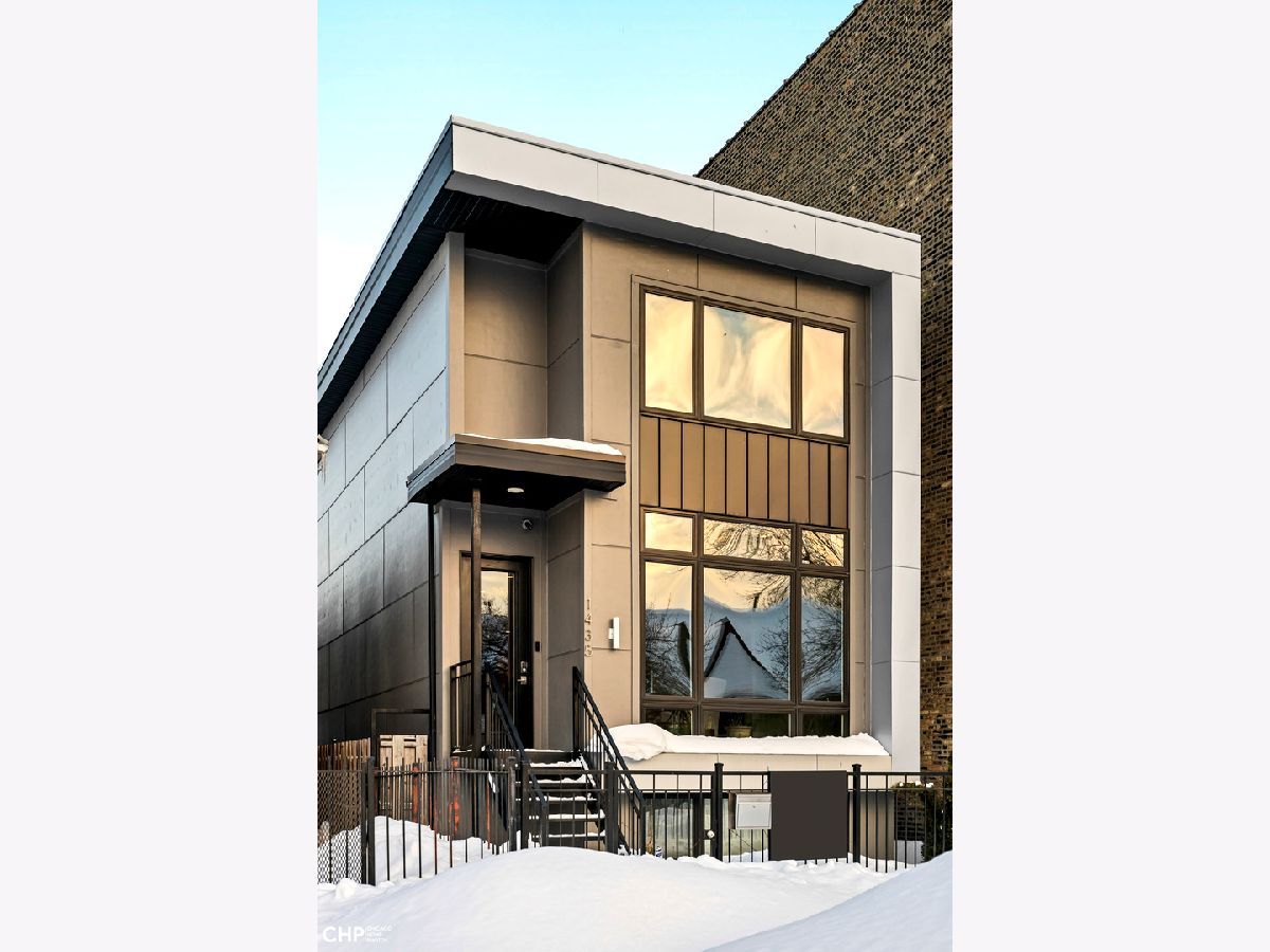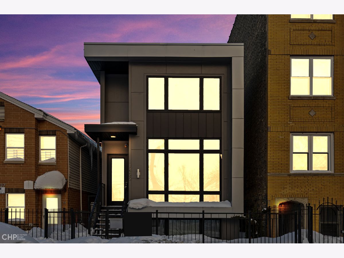 Elegant and modern 2017 new construction. Mostly occupied as in-town by current owners, lightly lived. An impressive, glass curtain wall of windows welcomes you into this extra deep, 4500 square foot home with oversized windows and maximum natural light penetration throughout. Enjoy spacious living perfect for today's lifestyle. The main floor features a living room, separate family room, 16 ft serving area, built-in storage, oversized kitchen, prep space, and a full dining room. 2nd floor with 3 beds, 2 baths, and laundry all on one level. The lower level enjoys abundant natural light, a master suite-like setup with abundant closet space, a 2nd family room with an entertainment set-up, a drink refrigerator, and an entertainment wet bar. Remarkable ceilings on every floor. 10 ft ceilings on the main level, 9 ft on the 2nd floor, and a rarely seen 9 ft on the lower level. The home boasts 4 Bedrooms + Office and well located 3 1/2 baths. Two large family rooms. Sleek kitchen with modern drop ceiling on the island for dramatic effect. A wide kitchen with 3 separate sections makes this a flexible space, perfect for large entertaining and also ideal for everyday use around the kitchen island. Premium outdoor space, 3 separate outdoor spaces. Professionally built-out rooftop. Summer oasis courtyard-style backyard, pavers, and oversized outdoor stone fireplace that can also be enjoyed from within the home. Outstanding clean design throughout the home, 5-inch wide plank floors throughout, clean built-ins throughout the home, decorative ceiling beams, accent lighting throughout various rooms, an outstanding mixture of wood, stone, and metal; all with an exceptional eye for clean open spaces. Master bedroom, with 3 separate walk-in closets, all built-out with organizers. Master bath with glass-enclosed shower with body jets, rain shower option, and linear shower drain. The freestanding soaking tub is the decorative and functional focus of this beautiful bathroom space, chandelier light accent creates amazing mood and light control. Three bedrooms on 2nd level, all with great closet space and natural light enjoying the East and West exposures. Lower level with hot water heated floors set up in multiple zones. Zoned Rheem heating and cooling. Maintenance-free or low maintenance systems and surfaces used throughout the home, carefully chosen for durability and great design. Fiber cement board exterior, high-quality quartz counters, marble finishes, slate fireplace wall, durable and elegant hardwoods. Northeast Humboldt Park, nature and city lover's paradise. Immediate access to Logan Square, Bucktown, Wicker Park, and Ukrainian Village. Strategic and convenient location. One block to Humboldt Park, enjoy the trails, running paths, Chicago's only inland beach, steps to North avenue, minutes to Milwaukee Avenue, the Bloomingdale Trail. Enjoy close-by favorites on West Town's California Ave and Augusta Blvd: Rootstock, Spinning Bakery, Division Street favorites in Wicker Park, North Avenue favorites in Wicker Park, and immediate access to all that the city has to offer. A prime Chicago location, easy access to everything.