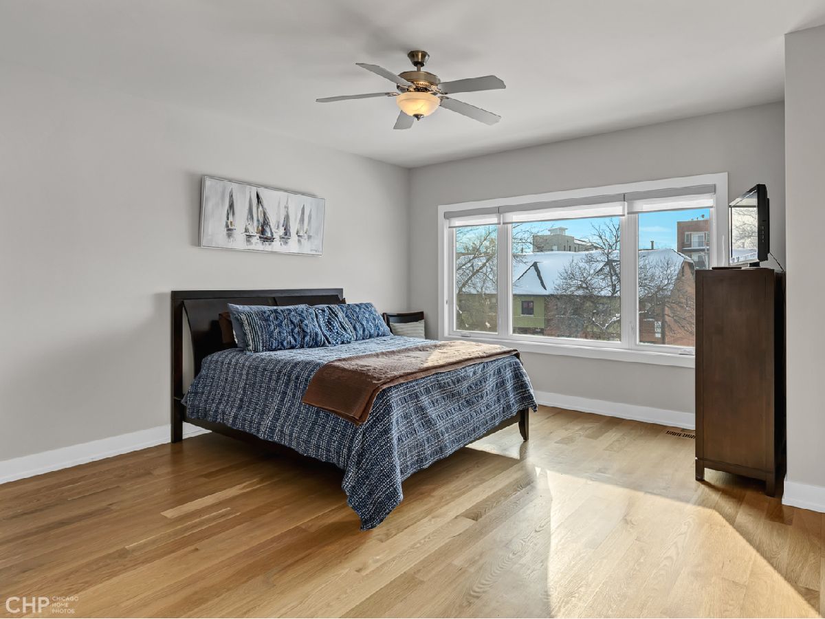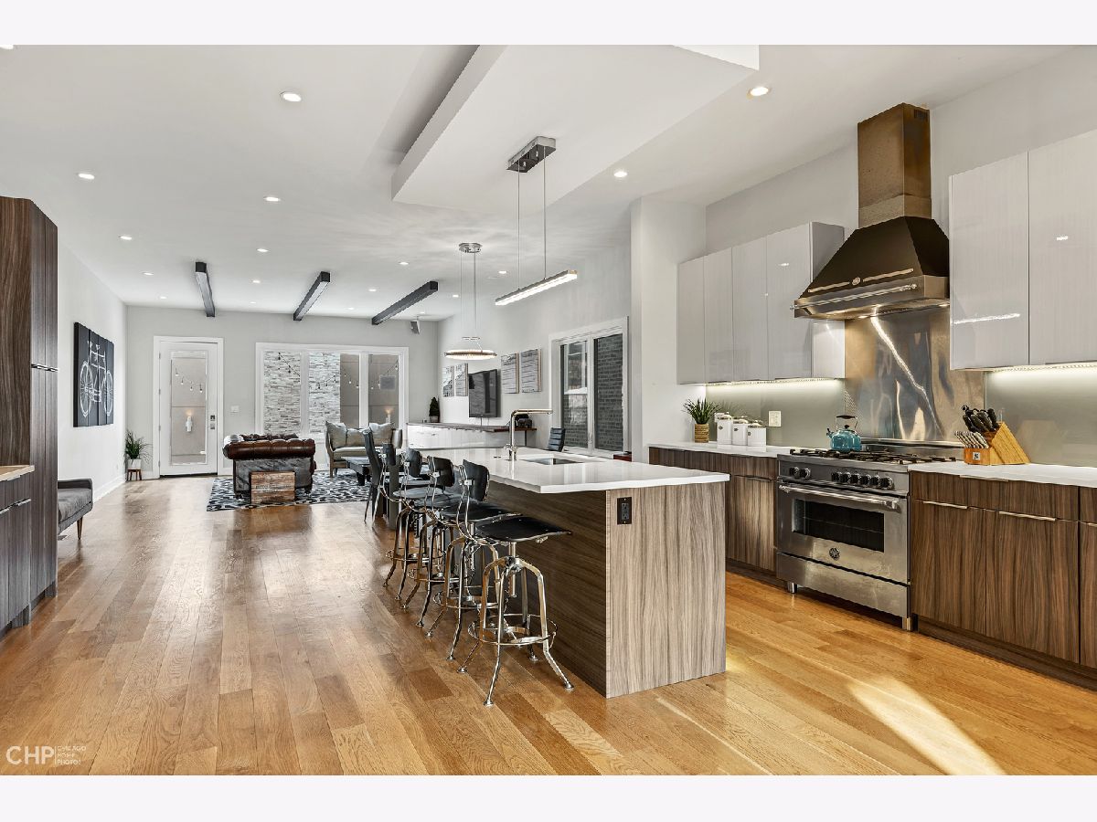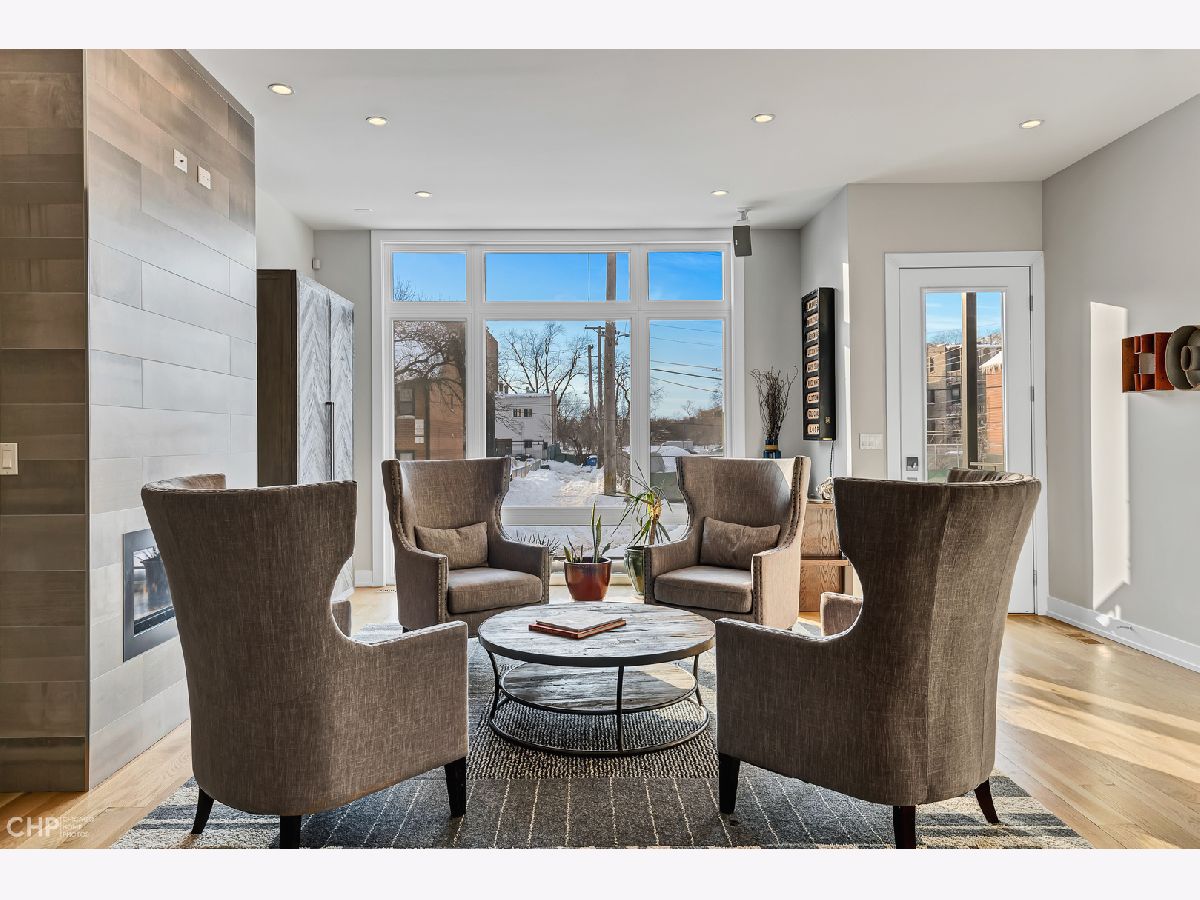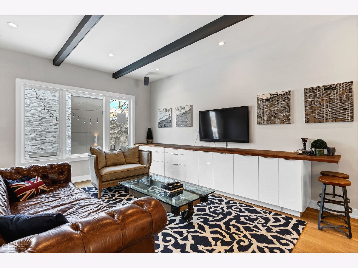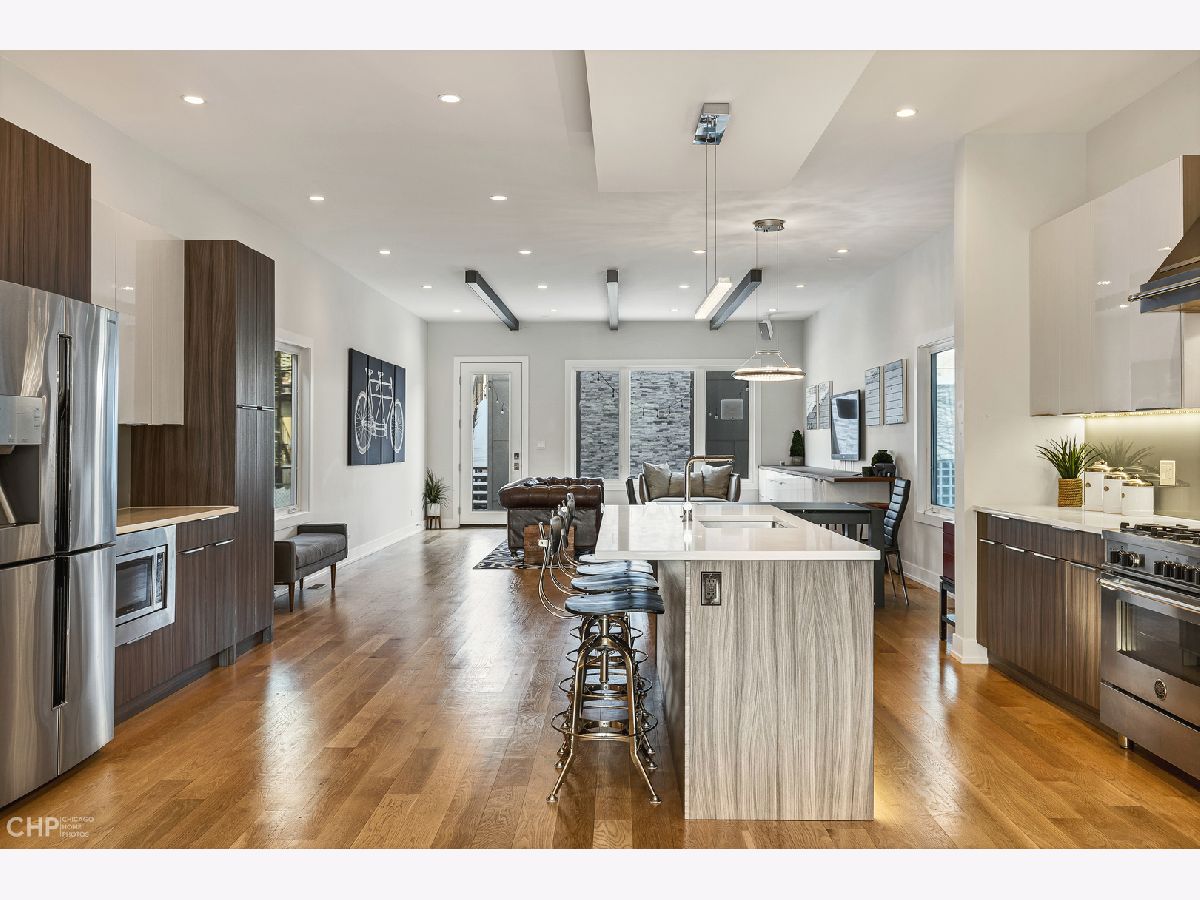 Elegant and modern 2017 new construction. Mostly occupied as in-town by current owners, lightly lived. An impressive, glass curtain wall of windows welcomes you into this extra deep, 4500 square foot home with oversized windows and maximum natural light penetration throughout. Enjoy spacious living perfect for today's lifestyle. The main floor features a living room, separate family room, 16 ft serving area, built-in storage, oversized kitchen, prep space, and a full dining room. 2nd floor with 3 beds, 2 baths, and laundry all on one level. The lower level enjoys abundant natural light, a master suite-like setup with abundant closet space, a 2nd family room with an entertainment set-up, a drink refrigerator, and an entertainment wet bar. Remarkable ceilings on every floor. 10 ft ceilings on the main level, 9 ft on the 2nd floor, and a rarely seen 9 ft on the lower level. The home boasts 4 Bedrooms + Office and well located 3 1/2 baths. Two large family rooms. Sleek kitchen with modern drop ceiling on the island for dramatic effect. A wide kitchen with 3 separate sections makes this a flexible space, perfect for large entertaining and also ideal for everyday use around the kitchen island. Premium outdoor space, 3 separate outdoor spaces. Professionally built-out rooftop. Summer oasis courtyard-style backyard, pavers, and oversized outdoor stone fireplace that can also be enjoyed from within the home. Outstanding clean design throughout the home, 5-inch wide plank floors throughout, clean built-ins throughout the home, decorative ceiling beams, accent lighting throughout various rooms, an outstanding mixture of wood, stone, and metal; all with an exceptional eye for clean open spaces. Master bedroom, with 3 separate walk-in closets, all built-out with organizers. Master bath with glass-enclosed shower with body jets, rain shower option, and linear shower drain. The freestanding soaking tub is the decorative and functional focus of this beautiful bathroom space, chandelier light accent creates amazing mood and light control. Three bedrooms on 2nd level, all with great closet space and natural light enjoying the East and West exposures. Lower level with hot water heated floors set up in multiple zones. Zoned Rheem heating and cooling. Maintenance-free or low maintenance systems and surfaces used throughout the home, carefully chosen for durability and great design. Fiber cement board exterior, high-quality quartz counters, marble finishes, slate fireplace wall, durable and elegant hardwoods. Northeast Humboldt Park, nature and city lover's paradise. Immediate access to Logan Square, Bucktown, Wicker Park, and Ukrainian Village. Strategic and convenient location. One block to Humboldt Park, enjoy the trails, running paths, Chicago's only inland beach, steps to North avenue, minutes to Milwaukee Avenue, the Bloomingdale Trail. Enjoy close-by favorites on West Town's California Ave and Augusta Blvd: Rootstock, Spinning Bakery, Division Street favorites in Wicker Park, North Avenue favorites in Wicker Park, and immediate access to all that the city has to offer. A prime Chicago location, easy access to everything.
