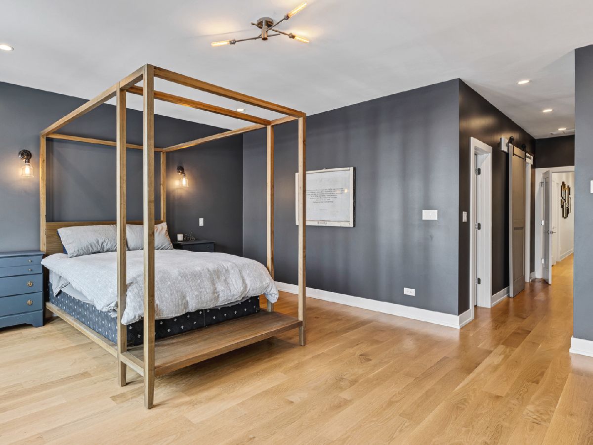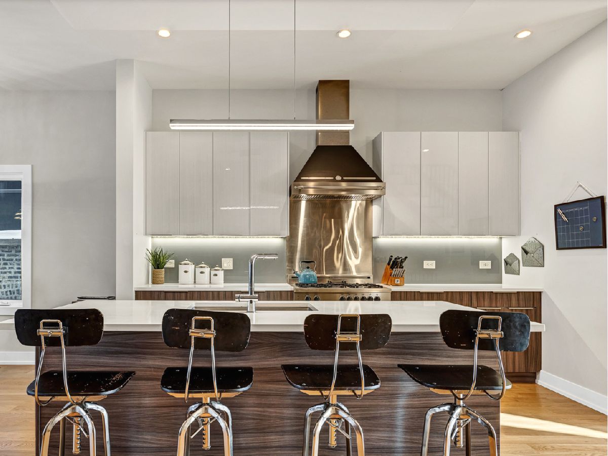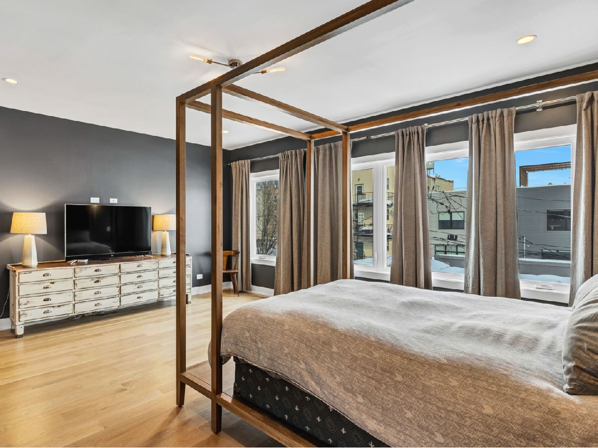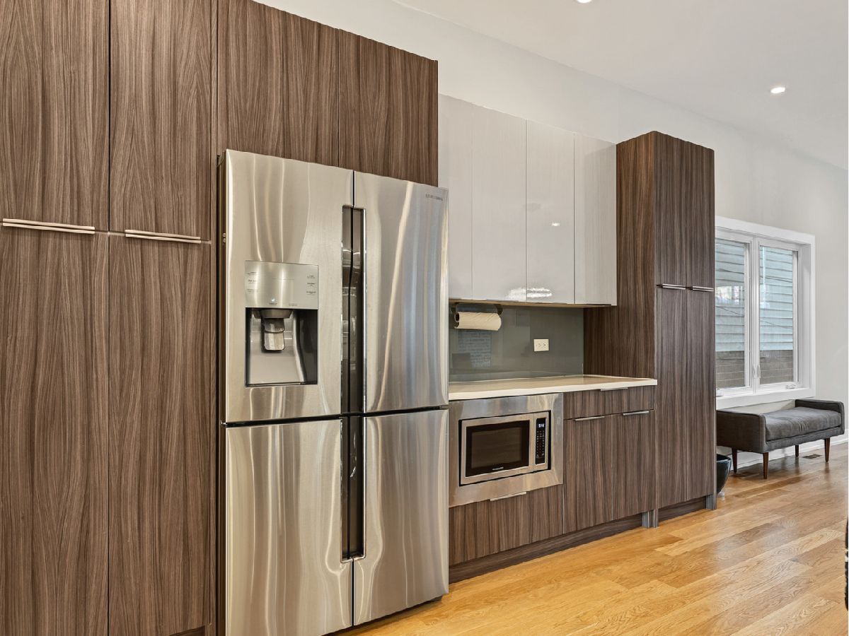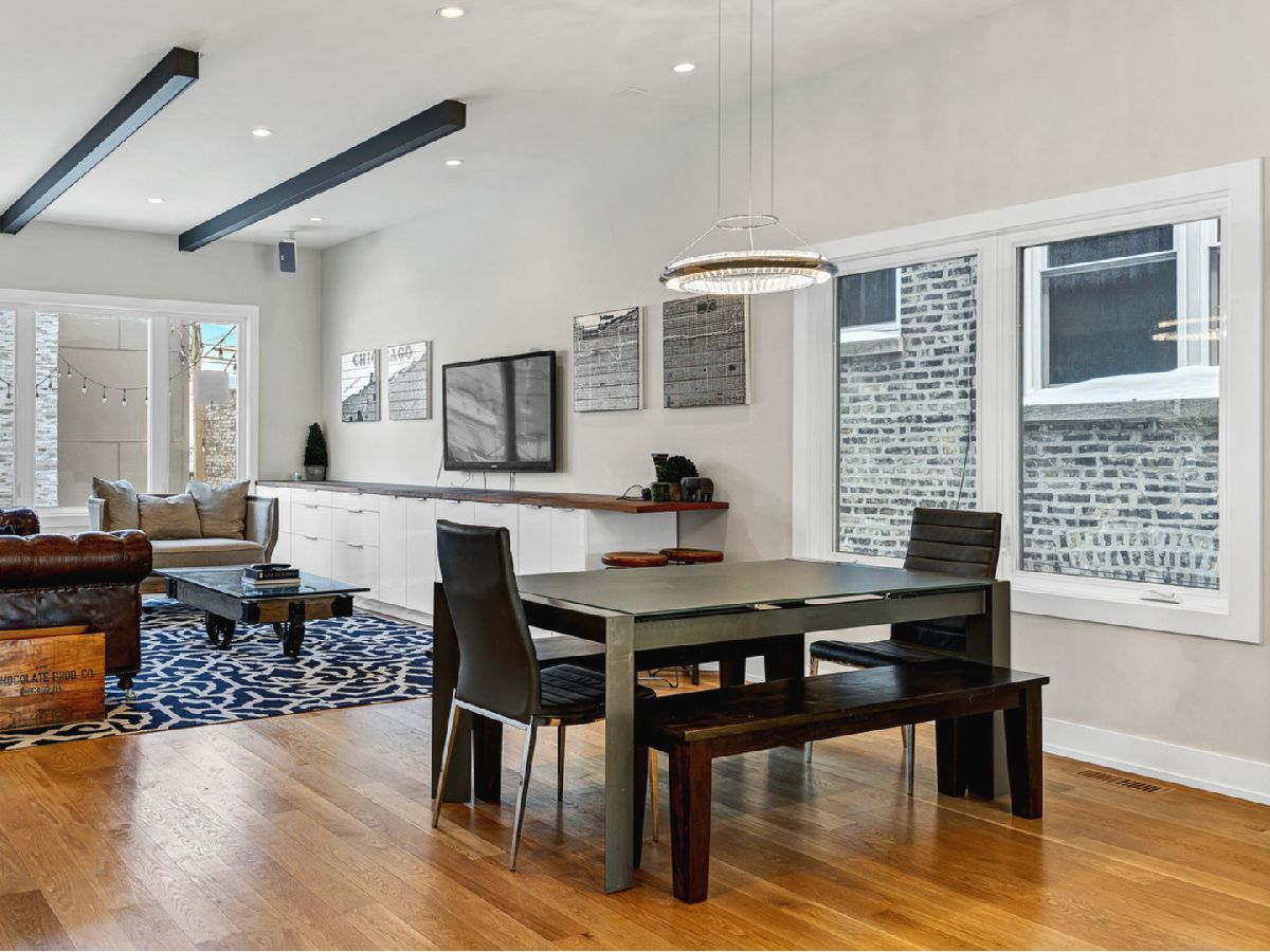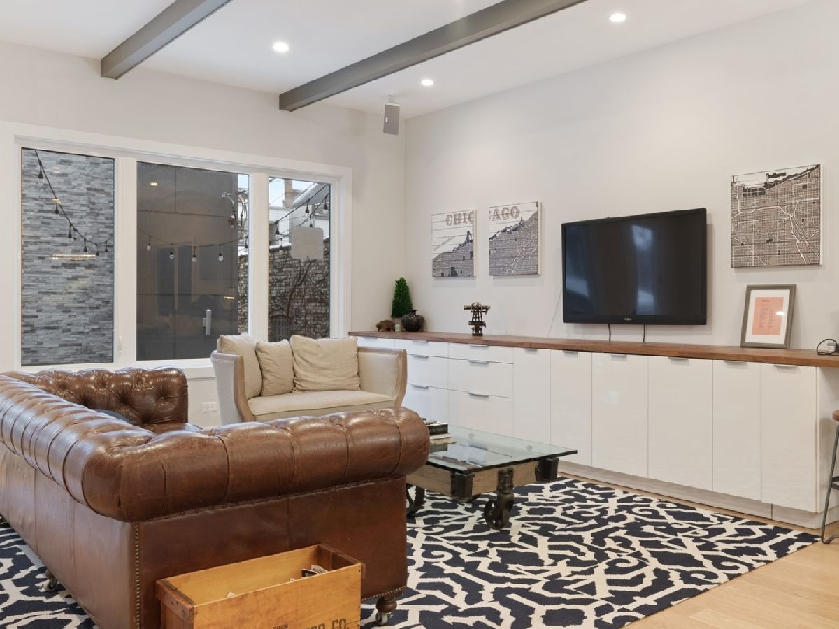 Elegant and modern 2017 new construction. Mostly occupied as in-town by current owners, lightly lived. An impressive, glass curtain wall of windows welcomes you into this extra deep, 4500 square foot home with oversized windows and maximum natural light penetration throughout. Enjoy spacious living perfect for today's lifestyle. The main floor features a living room, separate family room, 16 ft serving area, built-in storage, oversized kitchen, prep space, and a full dining room. 2nd floor with 3 beds, 2 baths, and laundry all on one level. The lower level enjoys abundant natural light, a master suite-like setup with abundant closet space, a 2nd family room with an entertainment set-up, a drink refrigerator, and an entertainment wet bar. Remarkable ceilings on every floor. 10 ft ceilings on the main level, 9 ft on the 2nd floor, and a rarely seen 9 ft on the lower level. The home boasts 4 Bedrooms + Office and well located 3 1/2 baths. Two large family rooms. Sleek kitchen with modern drop ceiling on the island for dramatic effect. A wide kitchen with 3 separate sections makes this a flexible space, perfect for large entertaining and also ideal for everyday use around the kitchen island. Premium outdoor space, 3 separate outdoor spaces. Professionally built-out rooftop. Summer oasis courtyard-style backyard, pavers, and oversized outdoor stone fireplace that can also be enjoyed from within the home. Outstanding clean design throughout the home, 5-inch wide plank floors throughout, clean built-ins throughout the home, decorative ceiling beams, accent lighting throughout various rooms, an outstanding mixture of wood, stone, and metal; all with an exceptional eye for clean open spaces. Master bedroom, with 3 separate walk-in closets, all built-out with organizers. Master bath with glass-enclosed shower with body jets, rain shower option, and linear shower drain. The freestanding soaking tub is the decorative and functional focus of this beautiful bathroom space, chandelier light accent creates amazing mood and light control. Three bedrooms on 2nd level, all with great closet space and natural light enjoying the East and West exposures. Lower level with hot water heated floors set up in multiple zones. Zoned Rheem heating and cooling. Maintenance-free or low maintenance systems and surfaces used throughout the home, carefully chosen for durability and great design. Fiber cement board exterior, high-quality quartz counters, marble finishes, slate fireplace wall, durable and elegant hardwoods. Northeast Humboldt Park, nature and city lover's paradise. Immediate access to Logan Square, Bucktown, Wicker Park, and Ukrainian Village. Strategic and convenient location. One block to Humboldt Park, enjoy the trails, running paths, Chicago's only inland beach, steps to North avenue, minutes to Milwaukee Avenue, the Bloomingdale Trail. Enjoy close-by favorites on West Town's California Ave and Augusta Blvd: Rootstock, Spinning Bakery, Division Street favorites in Wicker Park, North Avenue favorites in Wicker Park, and immediate access to all that the city has to offer. A prime Chicago location, easy access to everything.