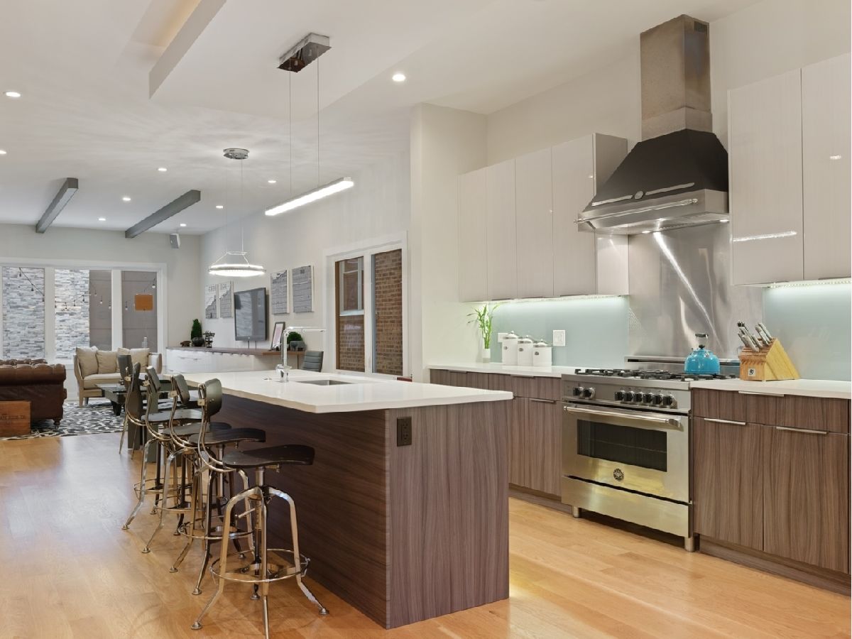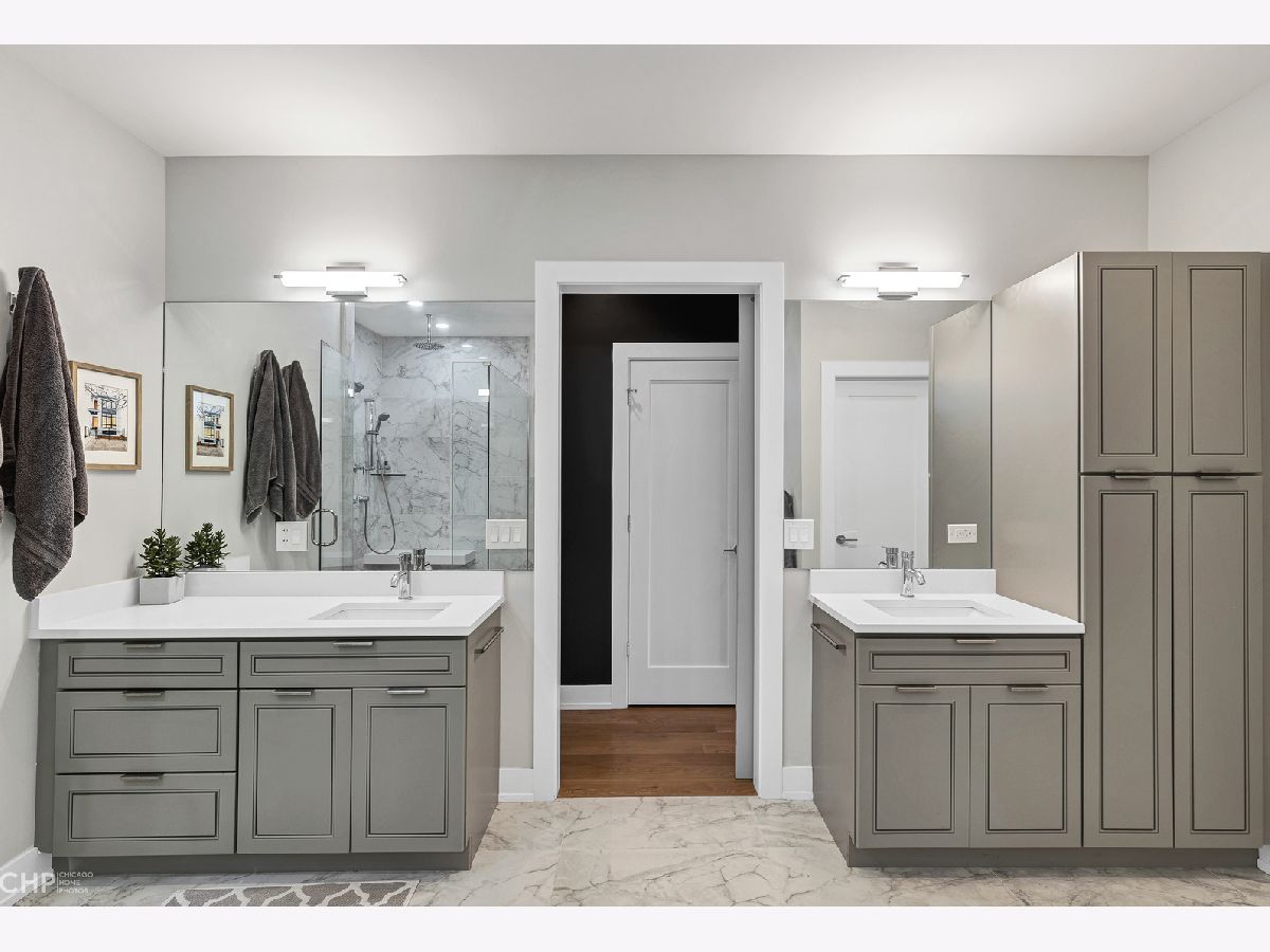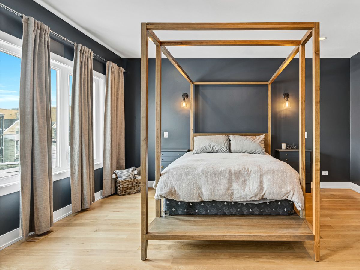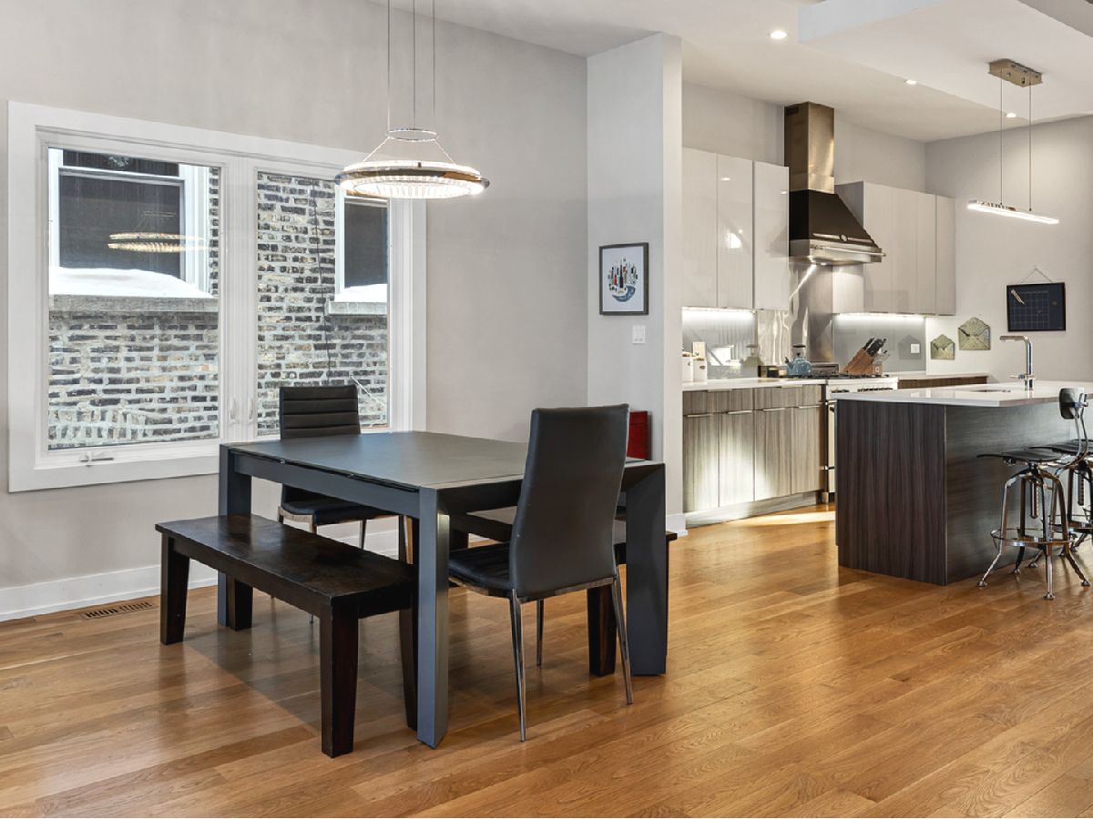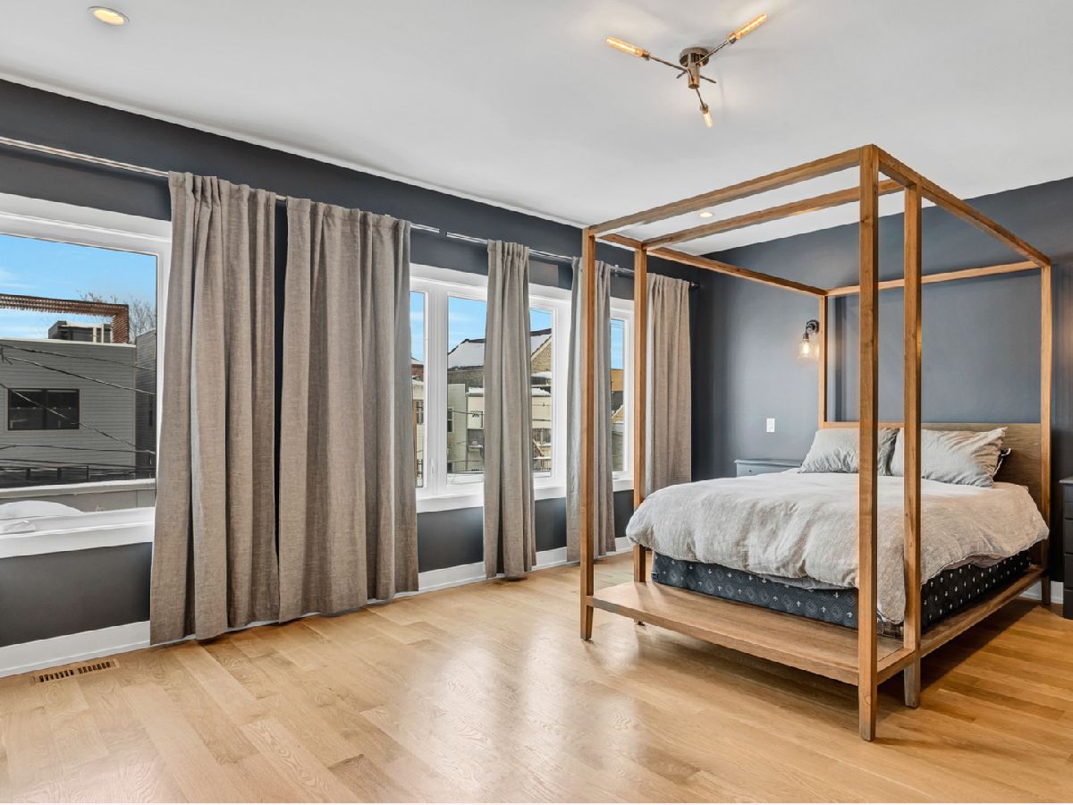 Elegant and modern 2017 new construction. Mostly occupied as in-town by current owners, lightly lived. An impressive, glass curtain wall of windows welcomes you into this extra deep, 4500 square foot home with oversized windows and maximum natural light penetration throughout. Enjoy spacious living perfect for today's lifestyle. The main floor features a living room, separate family room, 16 ft serving area, built-in storage, oversized kitchen, prep space, and a full dining room. 2nd floor with 3 beds, 2 baths, and laundry all on one level. The lower level enjoys abundant natural light, a master suite-like setup with abundant closet space, a 2nd family room with an entertainment set-up, a drink refrigerator, and an entertainment wet bar. Remarkable ceilings on every floor. 10 ft ceilings on the main level, 9 ft on the 2nd floor, and a rarely seen 9 ft on the lower level. The home boasts 4 Bedrooms + Office and well located 3 1/2 baths. Two large family rooms. Sleek kitchen with modern drop ceiling on the island for dramatic effect. A wide kitchen with 3 separate sections makes this a flexible space, perfect for large entertaining and also ideal for everyday use around the kitchen island. Premium outdoor space, 3 separate outdoor spaces. Professionally built-out rooftop. Summer oasis courtyard-style backyard, pavers, and oversized outdoor stone fireplace that can also be enjoyed from within the home. Outstanding clean design throughout the home, 5-inch wide plank floors throughout, clean built-ins throughout the home, decorative ceiling beams, accent lighting throughout various rooms, an outstanding mixture of wood, stone, and metal; all with an exceptional eye for clean open spaces. Master bedroom, with 3 separate walk-in closets, all built-out with organizers. Master bath with glass-enclosed shower with body jets, rain shower option, and linear shower drain. The freestanding soaking tub is the decorative and functional focus of this beautiful bathroom space, chandelier light accent creates amazing mood and light control. Three bedrooms on 2nd level, all with great closet space and natural light enjoying the East and West exposures. Lower level with hot water heated floors set up in multiple zones. Zoned Rheem heating and cooling. Maintenance-free or low maintenance systems and surfaces used throughout the home, carefully chosen for durability and great design. Fiber cement board exterior, high-quality quartz counters, marble finishes, slate fireplace wall, durable and elegant hardwoods. Northeast Humboldt Park, nature and city lover's paradise. Immediate access to Logan Square, Bucktown, Wicker Park, and Ukrainian Village. Strategic and convenient location. One block to Humboldt Park, enjoy the trails, running paths, Chicago's only inland beach, steps to North avenue, minutes to Milwaukee Avenue, the Bloomingdale Trail. Enjoy close-by favorites on West Town's California Ave and Augusta Blvd: Rootstock, Spinning Bakery, Division Street favorites in Wicker Park, North Avenue favorites in Wicker Park, and immediate access to all that the city has to offer. A prime Chicago location, easy access to everything.