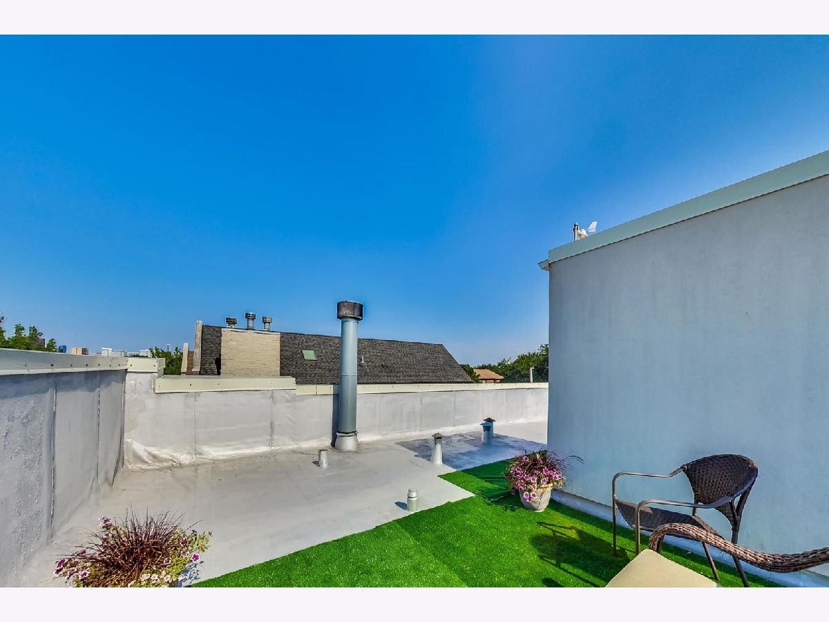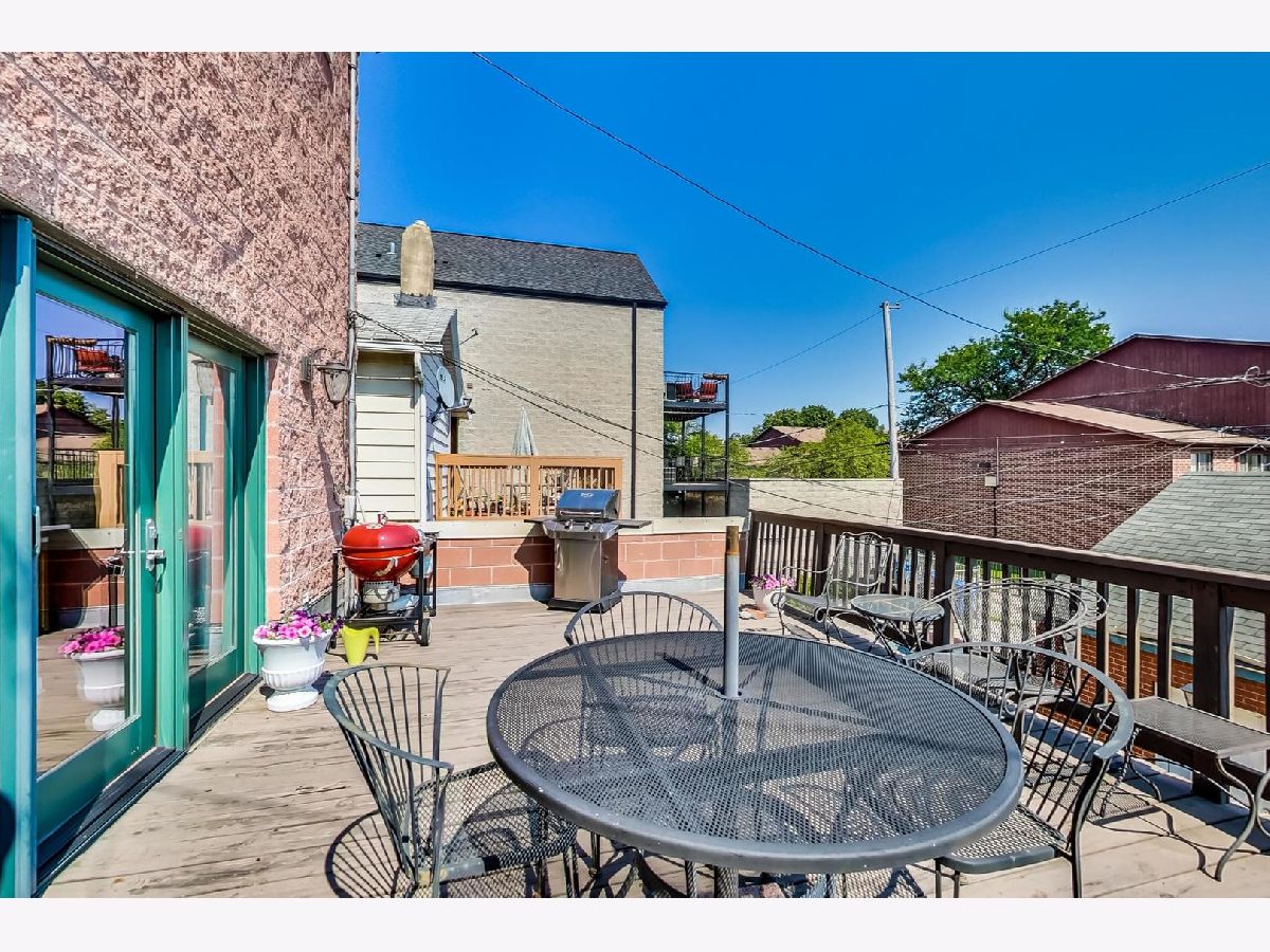 STUNNING 3 bedroom 2.5 bath duplex up condo on desirable, tree-lined Little Italy block steps to Taylor Street, UIC/Rush Medical District, Arrigo Park and much more. Spacious open floor plan corner unit. Main level features solid oak hardwood floors, generous living space w/fireplace and upgraded kitchen. Kitchen has beautiful granite counters, backsplash, large breakfast bar, full line of stainless steel appliances including french door refrigerator, maple cabinetry and adjacent dining space. Upgraded huge sliding glass doors off kitchen lead to giant private deck. Powder room and large closet round out the main level. Wood stairs lead to second level where all 3 bedrooms and 2 full bathrooms are located. Generous master suite has wall of closets and attached master bath. In-unit laundry on second level. Private roof access w/incredible skyline views. Central air and central heat. 1 garage space included.