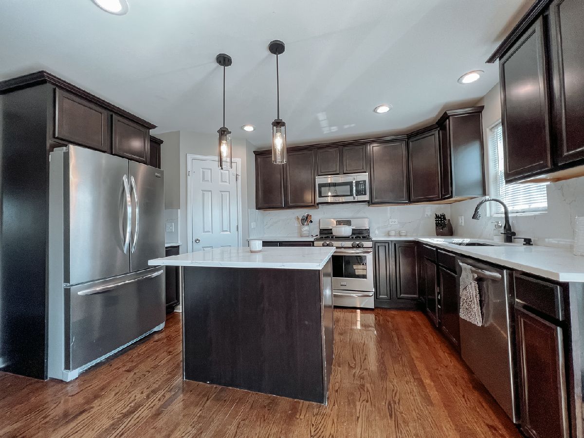Beautiful 4 bedroom, 2.1 bath home with loft and 3 car tandem garage situated on a large fenced lot. This home has an abundance of upgrades including hardwood floors, eat-in kitchen with quartz countertops and backsplash, islands, stainless steel appliances open to huge family room with gas log fireplace. Primary suite has his and hers closets and luxury bath with whirlpool tub and separate shower, additional bedrooms are all generously sized, laundry is conveniently located on second floor. Full unfinished basement with roughed in plumbing can easily be finished for additional living area. Must see this great buy!