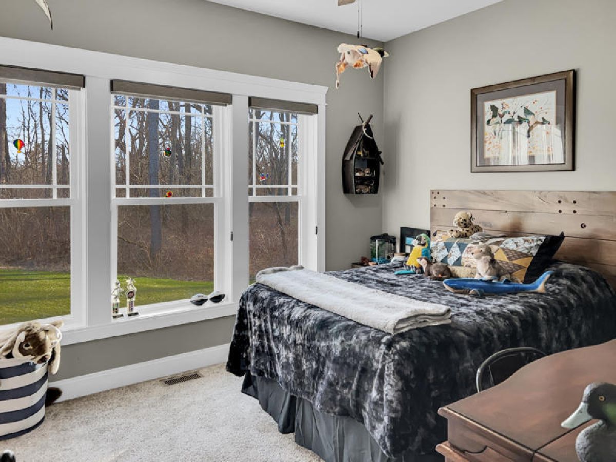 Contemporary style, comfort and charm could be all yours with this stunning home set on six glorious acres of land. Inside, you will be treated to high-end finishes, open-concept living spaces and a host of must-have features while outside, you can host guests and admire the views of the neighboring meadow. Tall ceilings, on-trend flooring and soft neutral color tones are on show throughout including in the living and dining room with a stunning fireplace. Cooking will be a joy in the open gourmet kitchen with stone countertops, ample cabinetry and a center island with breakfast bar seating. All three bedrooms are a great size and the bathrooms are beautifully finished plus there's a walk-out lower level that's absolutely bursting with potential. This impeccable property was built in 2019 and is sure to tick every box on your ultimate wishlist. A covered patio and easy-care landscaping are all yours to enjoy along with a pool and a shed/shop with plenty of storage space.