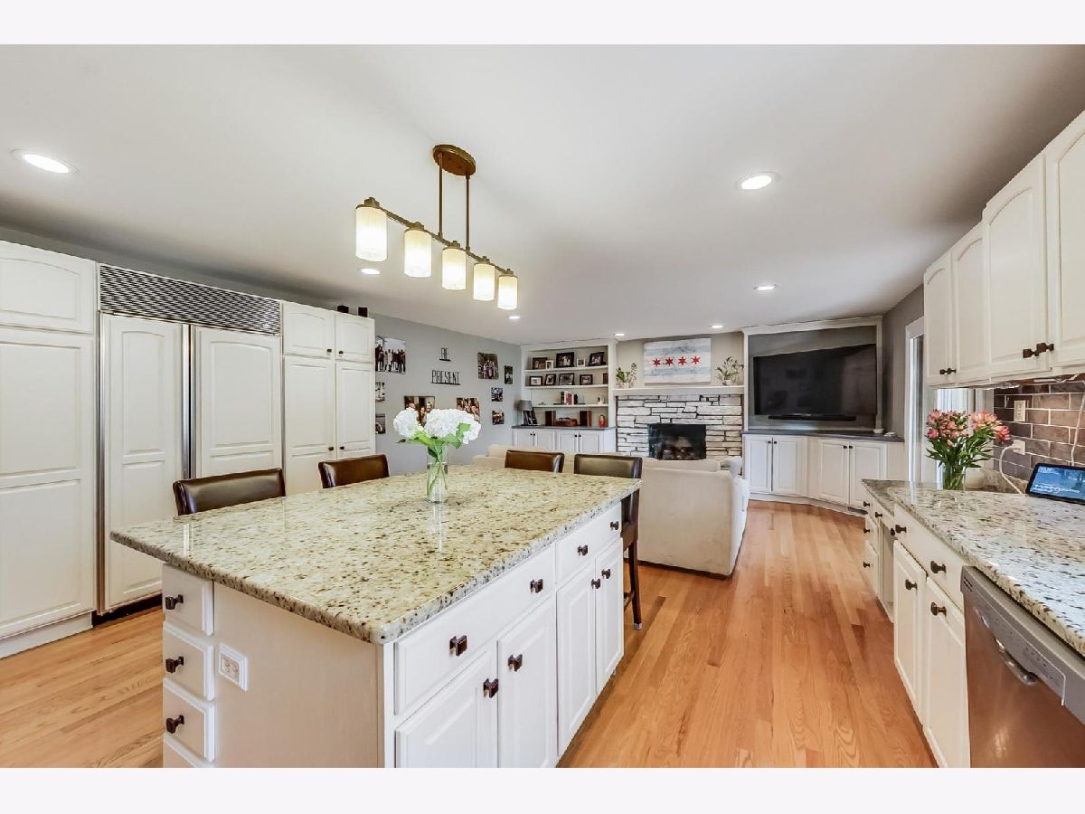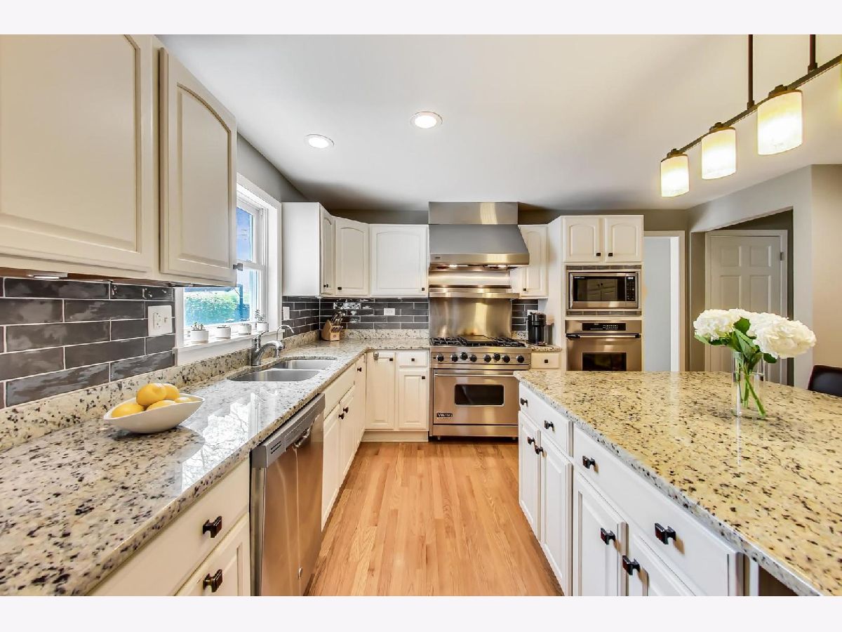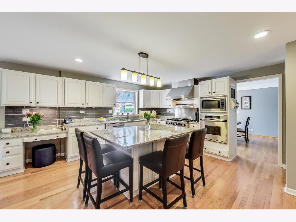 Expansive, well maintained & updated Colonial 5 bedroom home has it all! Living room w/ window seat flows to dining room which is adjacent to updated white kitchen, a chef's delight with high end appliances: Subzero, Thermador, Dacor, & Viking 6-burner stove with griddle top. A large kitchen island has seating for 5 & is the hangout for entertaining along with the open great room featuring a newly lined gas fireplace. The adjacent three season room has fantastic views of the yard & stone paver patio, also accessible from the dining room. Hardwood floors throughout. First floor also has powder room and laundry adjacent to attached garage entry. All five bedrooms are on second level. Primary suite has two walk in closets plus separate seating area for relaxing. Newer bathrooms.. Finished lower level provides craft, game, and tv areas plus excellent storage. Many newer elements include H2O heater, roof, gutters, sump pump with battery back up, ceiling fans all bedrooms, oak stairs to LL & 2nd floor, finished lower level. Large backyard has fire pit area in back of yard which is great for entertaining. Attached 2 car garage plus area for trash receptacles. Walk to award winning schools that include GBS High School and minutes to Westbrook elementary. Close to I-294, O'Hare, Glenview train station, The Glen and Plaza Del Prado for grocery, restaurant and entertainment options.