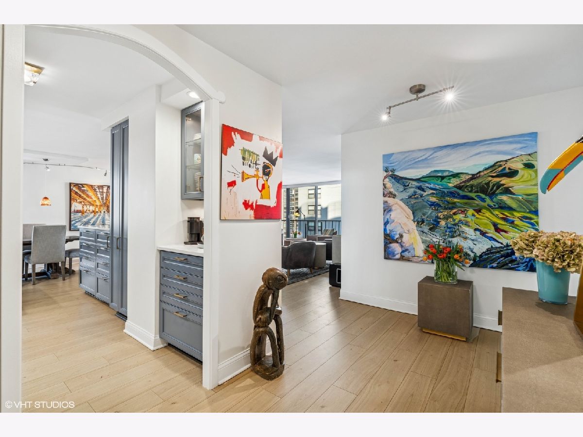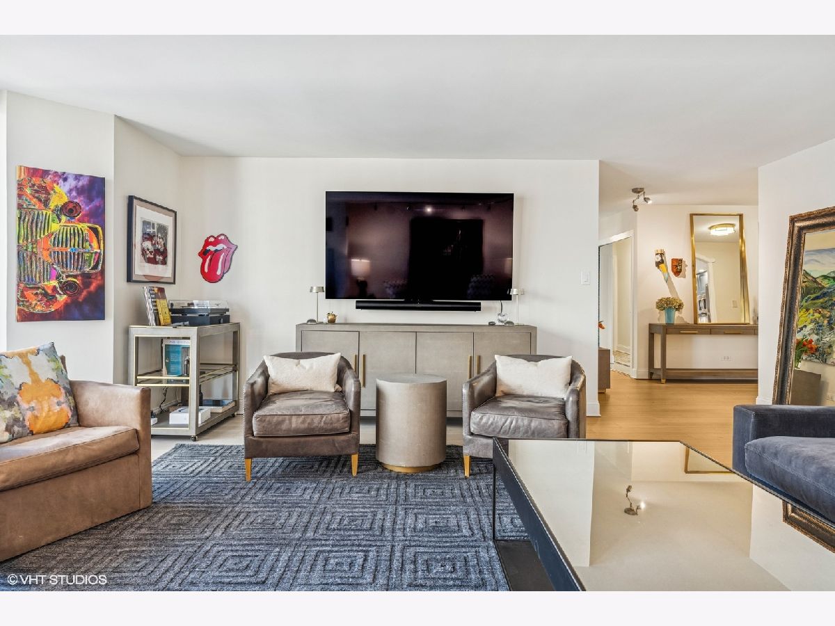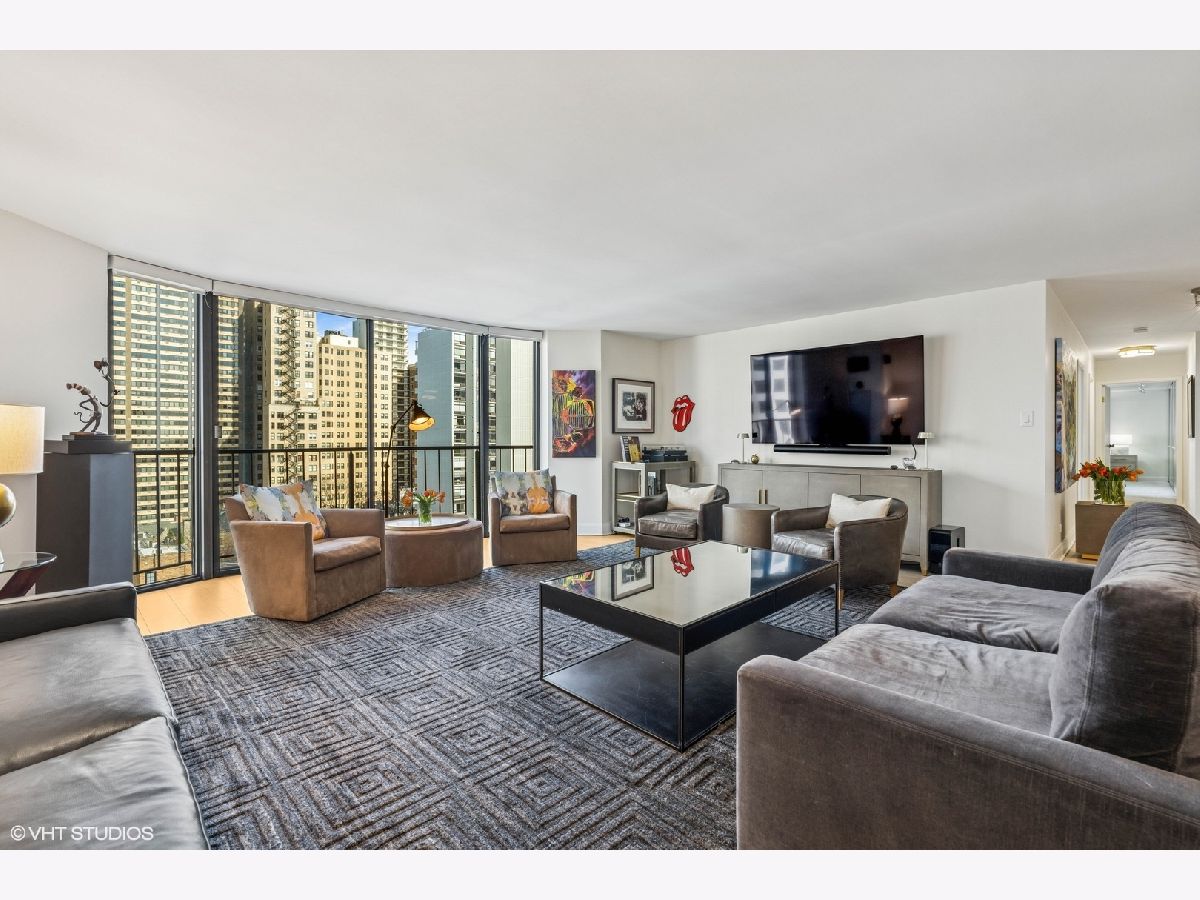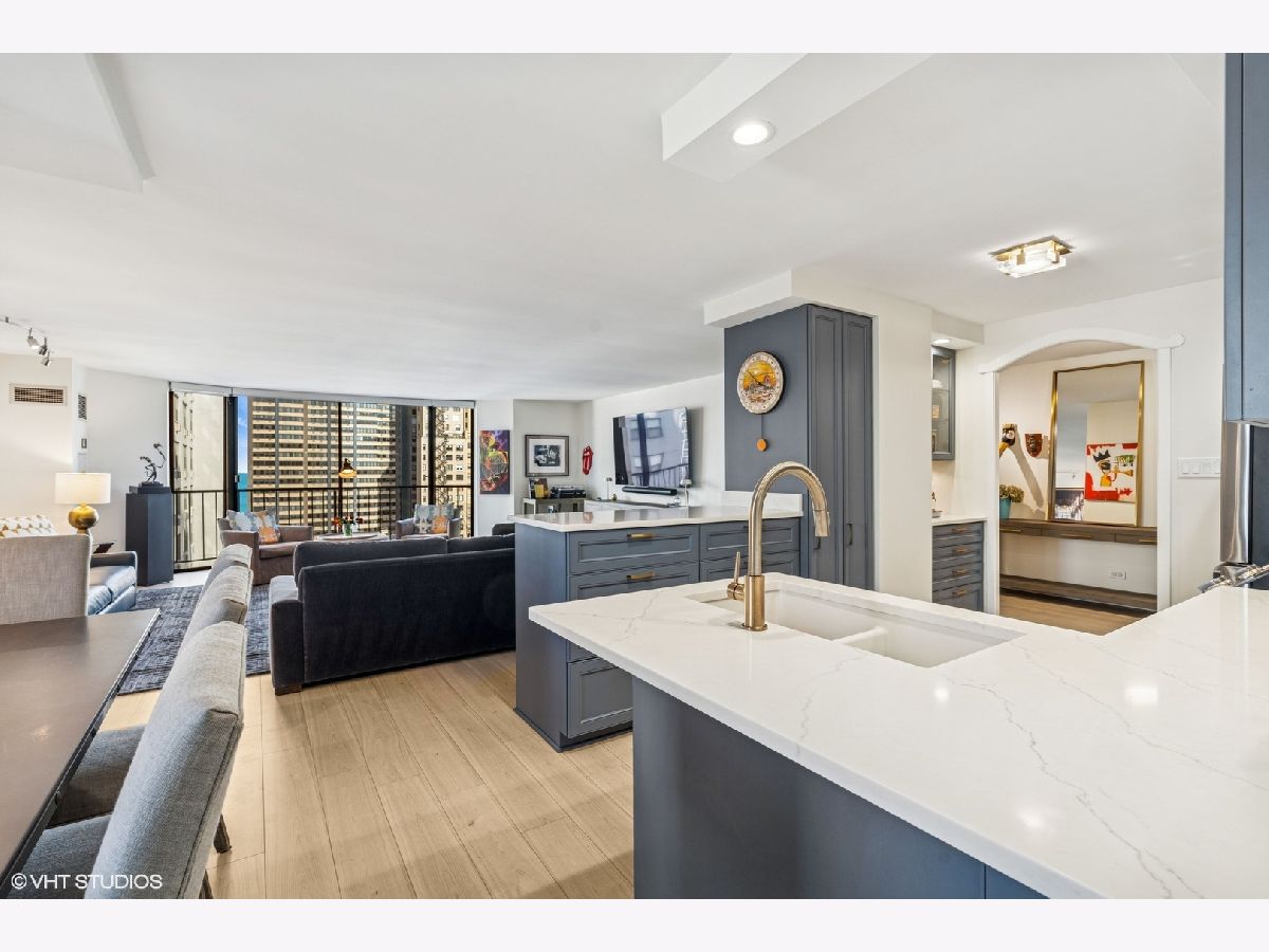 Experience unparalleled city living in this newly renovated 3 bed 2.5 bath corner unit at The Brownstone, nestled in Chicago's prestigious Gold Coast neighborhood. This home boasts natural light with floor to ceiling windows throughout and 4 Juliette balconies offering incredible views of the city and lake. Enter the home through the large foyer that leads you to the spacious living room/dining room with brand new wood floors. Living room opens to the renovated kitchen featuring quartz countertops, large island with breakfast bar, hand painted Moroccan tile backsplash, and new appliances. Powder room with brand new washer / dryer across from the kitchen. The spacious primary suite with expansive lake and city views offers brand new carpet and 3 large built-out closets. Ensuite bathroom with stone countertops, double vanity plus additional makeup vanity and shower with body sprays. Two additional bedrooms, full bathroom, large coat closet, custom window treatments and additional storage complete this wonderful home. Full amenity building offers 24-hour doorman, on-site management and maintenance, exercise facility, brand new roof deck with outdoor pool and grill area, party room, storage room and attached garage parking for 220 a month. Enjoy all that this coveted location has to offer! Just steps away from award winning restaurants, shopping, North Ave beach, public transit, and much more. Truly an extraordinary home!