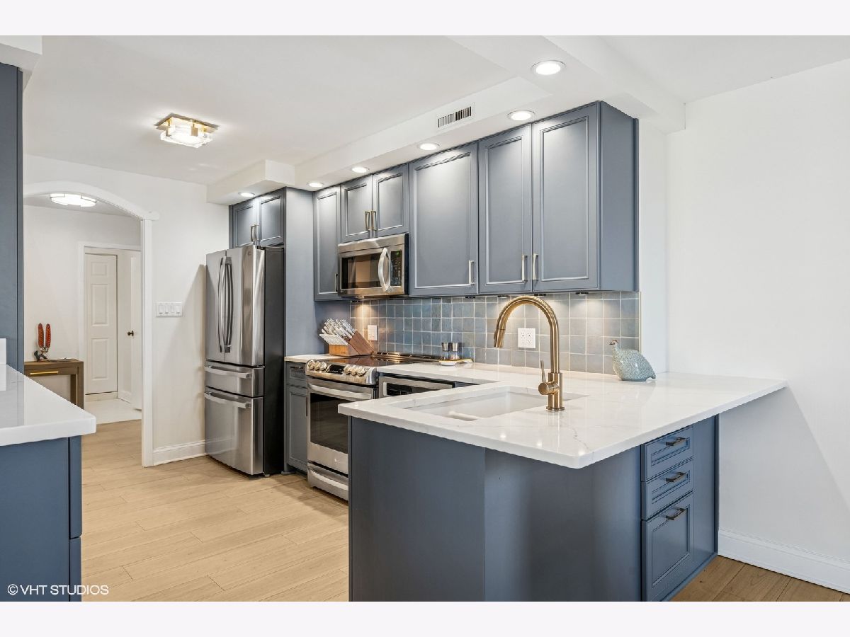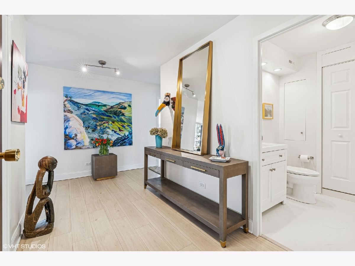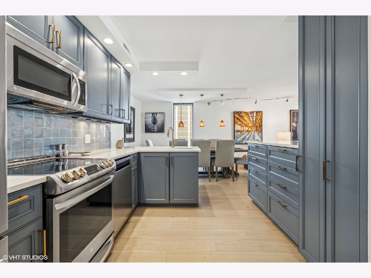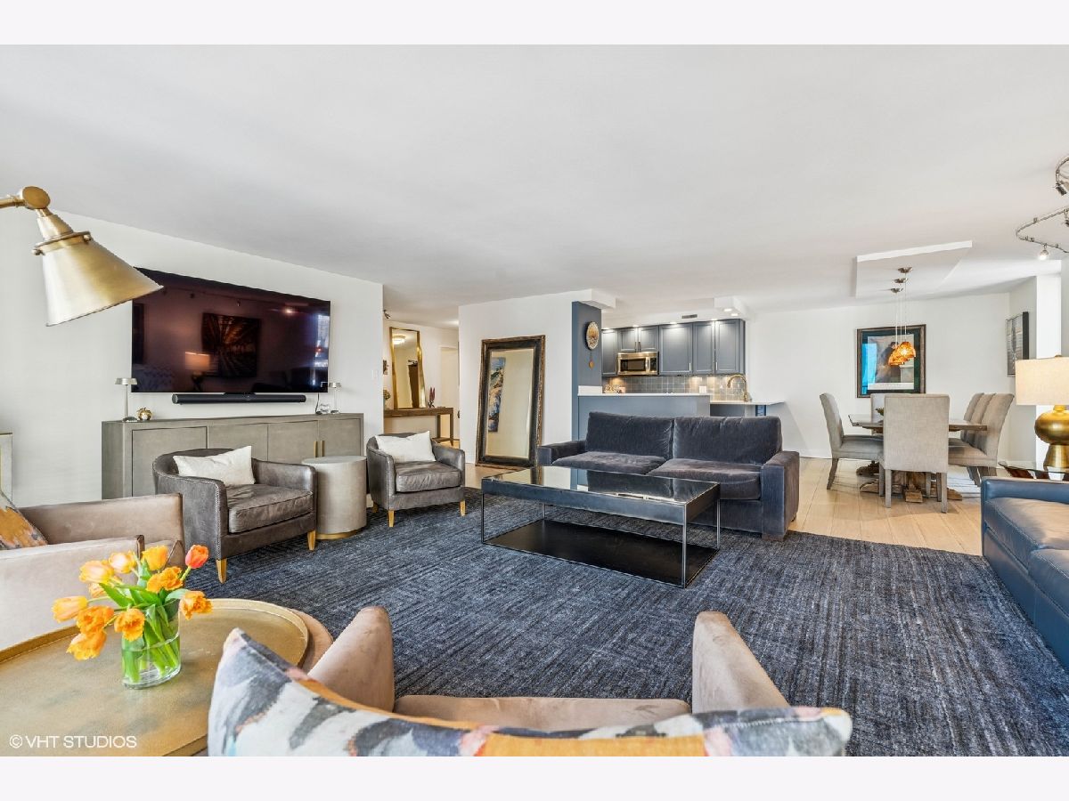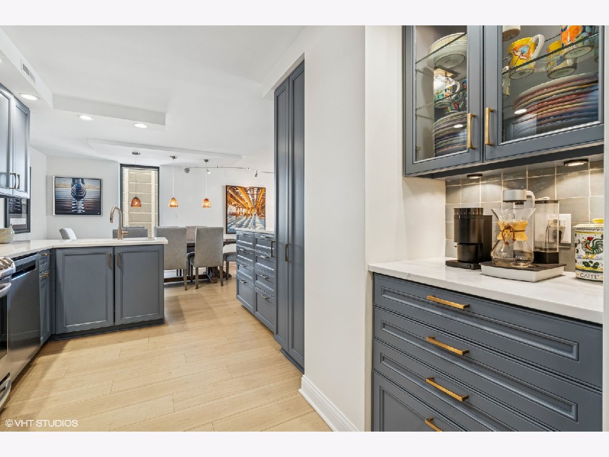 Experience unparalleled city living in this newly renovated 3 bed 2.5 bath corner unit at The Brownstone, nestled in Chicago's prestigious Gold Coast neighborhood. This home boasts natural light with floor to ceiling windows throughout and 4 Juliette balconies offering incredible views of the city and lake. Enter the home through the large foyer that leads you to the spacious living room/dining room with brand new wood floors. Living room opens to the renovated kitchen featuring quartz countertops, large island with breakfast bar, hand painted Moroccan tile backsplash, and new appliances. Powder room with brand new washer / dryer across from the kitchen. The spacious primary suite with expansive lake and city views offers brand new carpet and 3 large built-out closets. Ensuite bathroom with stone countertops, double vanity plus additional makeup vanity and shower with body sprays. Two additional bedrooms, full bathroom, large coat closet, custom window treatments and additional storage complete this wonderful home. Full amenity building offers 24-hour doorman, on-site management and maintenance, exercise facility, brand new roof deck with outdoor pool and grill area, party room, storage room and attached garage parking for 220 a month. Enjoy all that this coveted location has to offer! Just steps away from award winning restaurants, shopping, North Ave beach, public transit, and much more. Truly an extraordinary home!