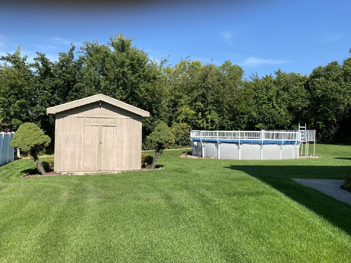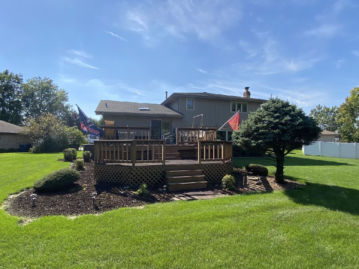 Beautiful Forrester set on a large lot in the center of a cul-de-sac. Covered front porch opens to welcoming foyer with guest closet. Beam unites vaulted living and family rooms and offers a nice option for formal gatherings. Sun soaked kitchen from skylight above. Newer appliances with an abundance of cabinetry to simplify mealtime. Large island for meal prep and separate eating area overlooking the expansive backyard. Step out the French door to a massive 2-tiered deck with a fenced, above ground pool and shed to store all of the lawn equipment and toys. Concrete walkway along the side of home. Still plenty of yard for swing set and play area. Adjacent family room showcases brick fireplace with mantle above and flanked with built-in shelves to house all of your media and personal treasures. Three upper level bedrooms including a primary ensuite with dual closets, a walk-thru vanity, and separate bathroom area. Gone are the days of timed showers so your partner can do their makeup and hair. Mudroom with laundry, utility sink, closet, and access to the attached two car garage and side yard. Finished basement has a large recreation area, full size bar, and two walk-in storage areas (one with utility sink). Many of your big ticket items taken care of with newer roof, windows, HVAC, water heater, and sump pump. Sought after Homer Glen 33C school district and Lockport Township High School. Convenient to expressways, shopping, and dining. Most of the home's furniture is negotiable as well.