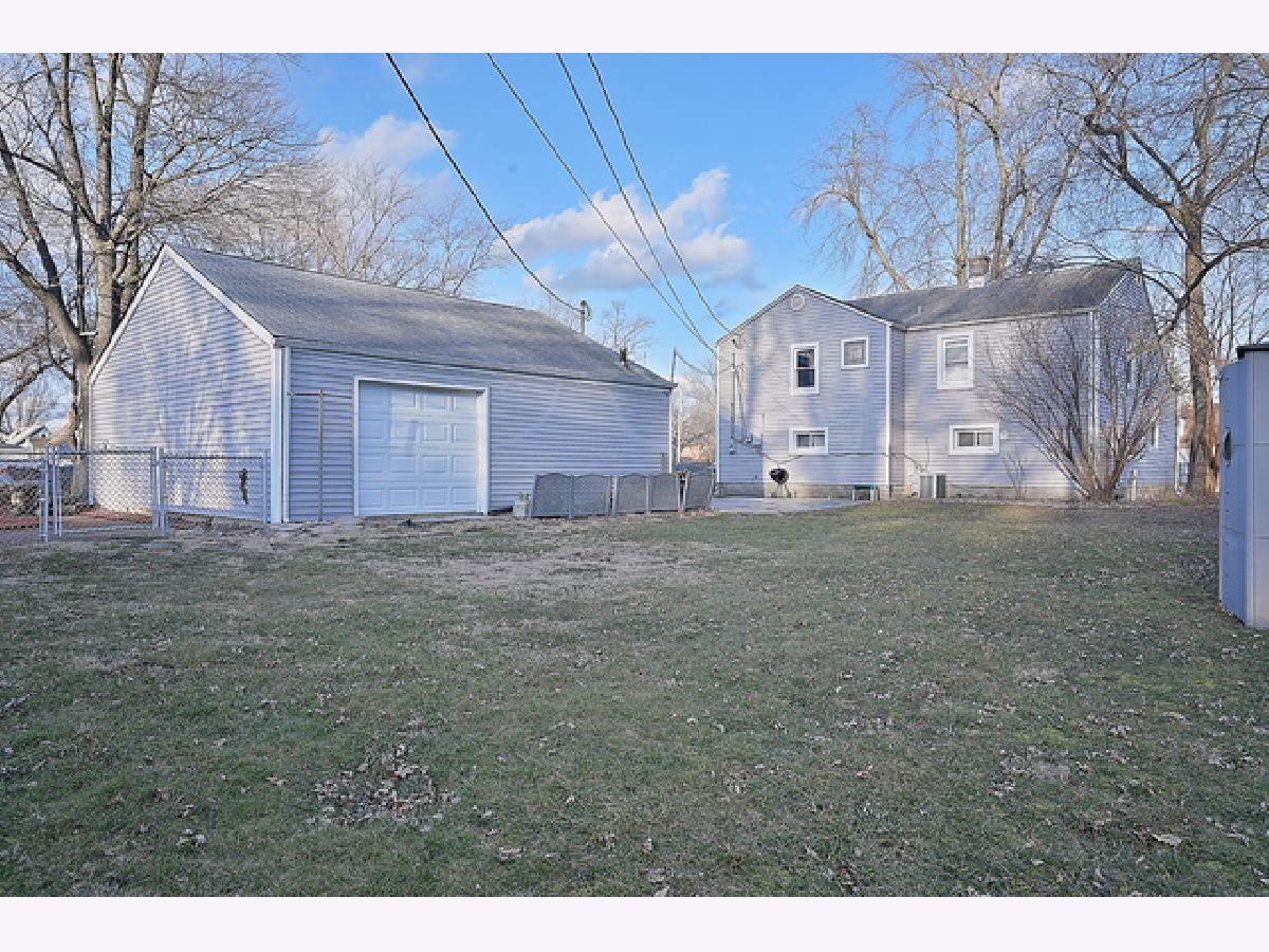 Ample cape cod. 3 bedrooms and a large bonus room that could be an office or nursery. 2 full baths, hardwood floors, freshly painted, water heater tank 3 years, appliances 3 years, & vinyl siding! cute front porch to enjoy your coffee! Large fenced in yard with patio with fire pit behind garage. Mechanics dream- 3 car spaces in heated garage, fully insulated, with extra 200 amp service, drain, and water connection. Extra storage. Conveniently located across the street from the park and recreation center. Walking distance to the Kolmar Elementary and junior high school! LOW TAXES!! Close to I-294. SOLD-AS-IS.