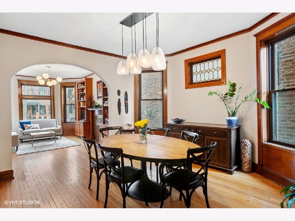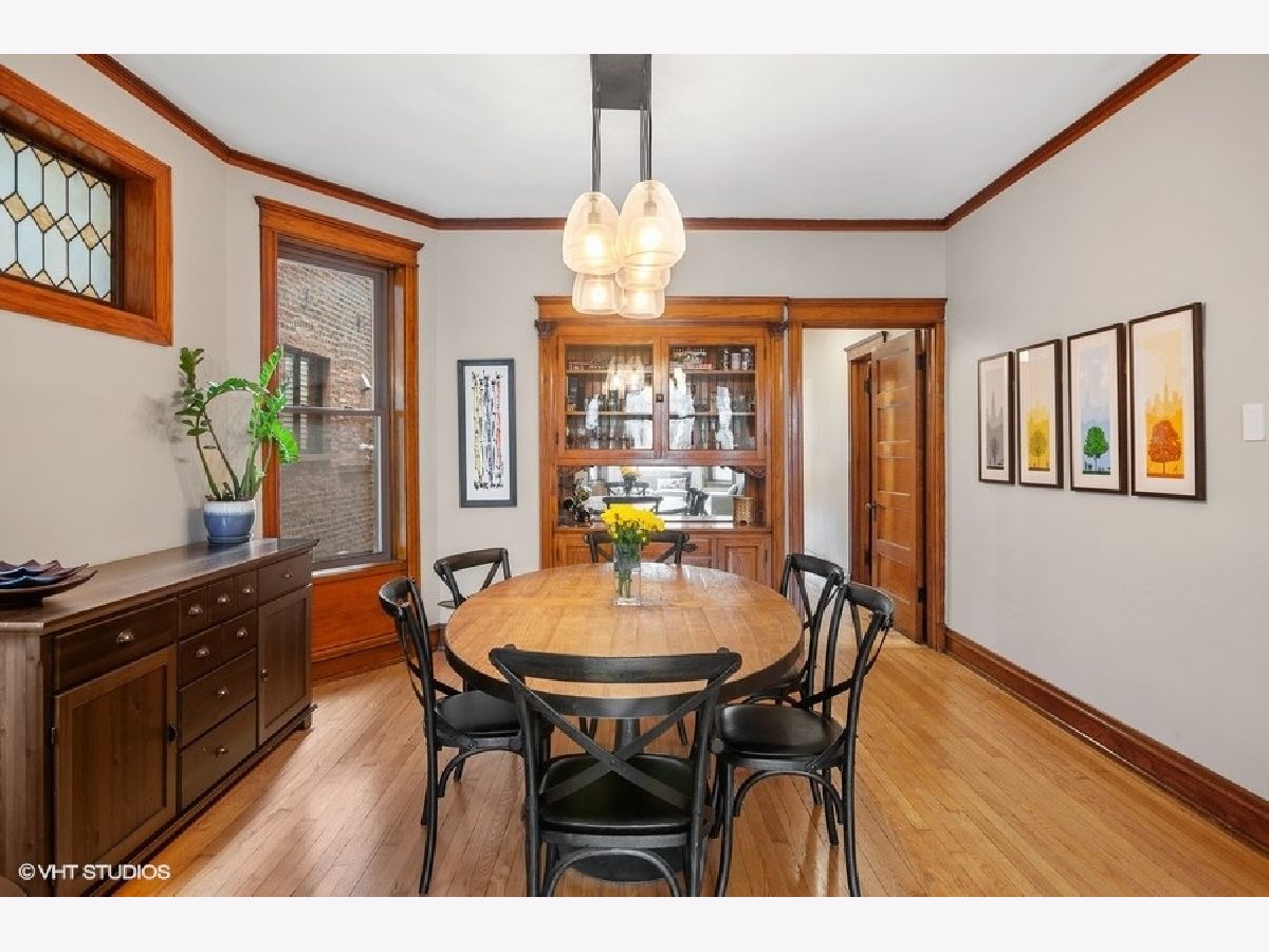 Stunning 3-bedroom duplex home in PRIME Andersonville location. Vintage charm meets modern chic in this gut rehab 2200 sq ft residence! Gleaming original hardwood floors throughout main level as you enter into picture perfect living room featuring original detailed fireplace and custom built-ins along with original leaded glass windows. This flows beautifully into a beautiful dining room with original built-in hutch and more leaded glass windows. Exposed brick in the kitchen frames the space perfectly and showcases the high-end appliances, custom cabinetry, and granite countertops. The built-in banquette in south facing breakfast room is light filled and sunny, truly an idyllic spot to sip your morning coffee and gather for meals. Three bedrooms & three baths, second living space in lower level perfect for movie nights and hanging out, oversized laundry and storage room, fabulous terrace off kitchen, shared yard space with actual grass & garage parking spot make this truly the perfect place to call home. Ideally situated in one of Andersonville's most sought-after streets and within walking distance to shops, restaurants, parks, and all that the area has to offer!