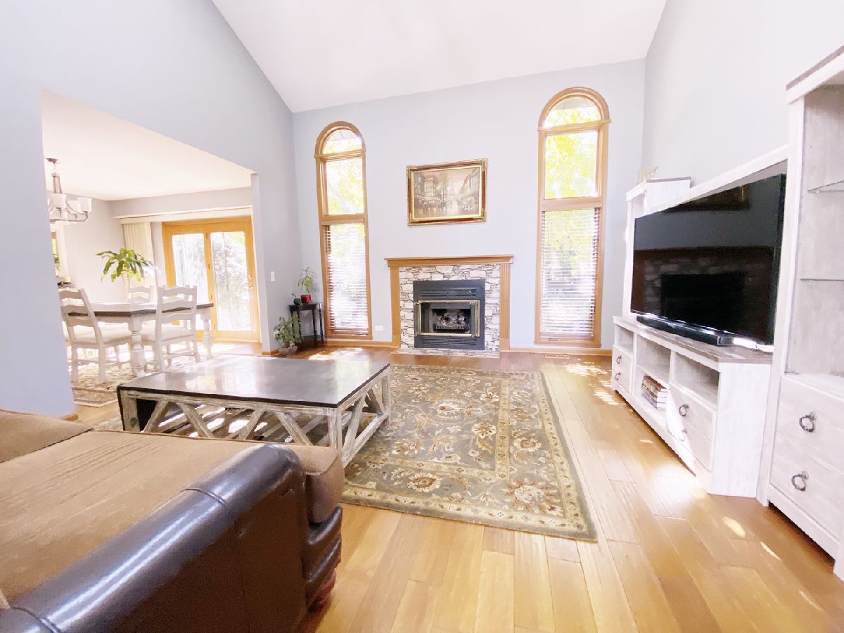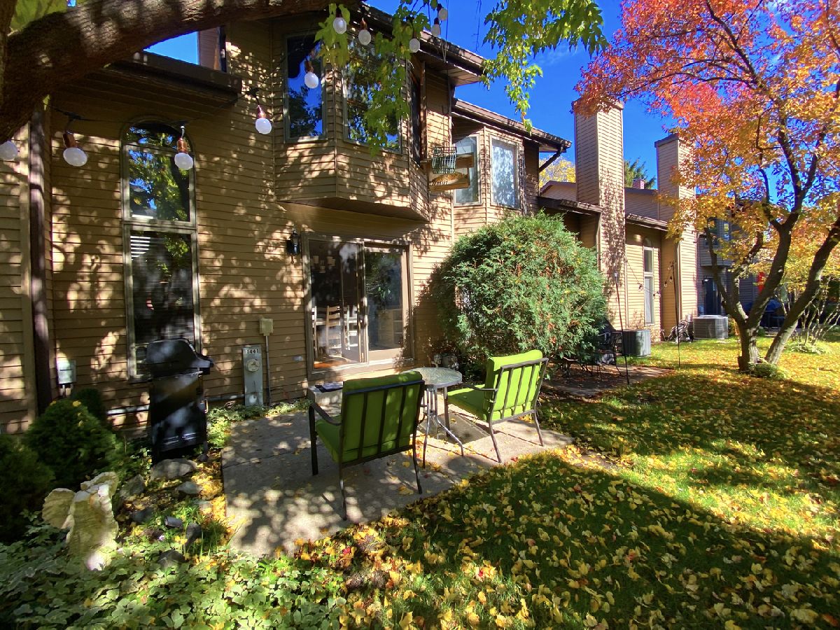 Surrounded by Old Orchard Country Club, this beautiful townhome comes with 3 bedrooms and 2.5 baths! As you step inside, be greeted by the warmth of the hardwood floors that flow seamlessly throughout the home. The heart of the house is the well-appointed kitchen next to the dining area, featuring exquisite quartz countertops, providing a perfect balance of style and functionality. The inviting living room is centered around a cozy gas fireplace, creating a perfect atmosphere for relaxation and entertaining. With cathedral ceilings that add an extra touch of grandeur, this space is both spacious and welcoming. Step outside onto your charming patio area, perfect for enjoying morning coffee or outdoor cooking. Don't miss the opportunity to make this gem your own. Schedule a viewing today! Sold As-Is.