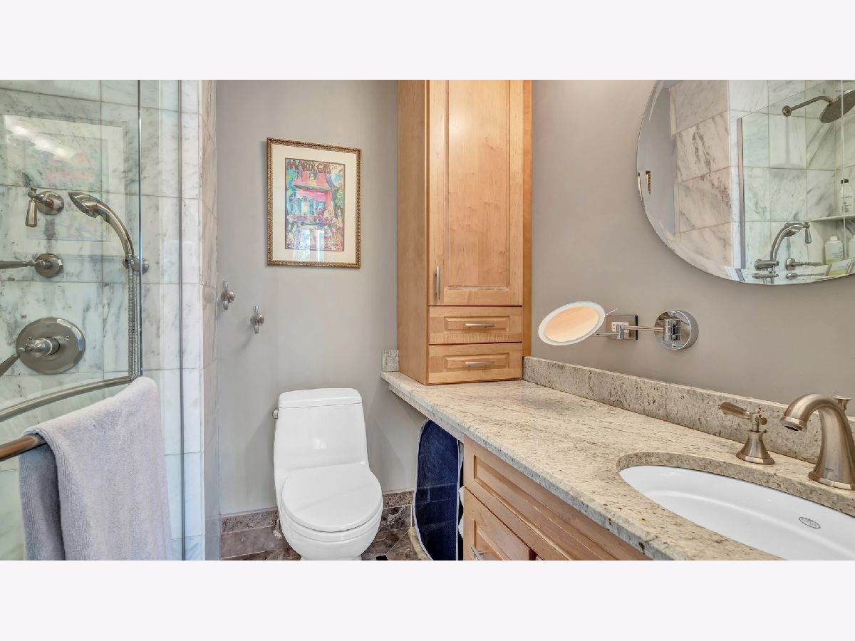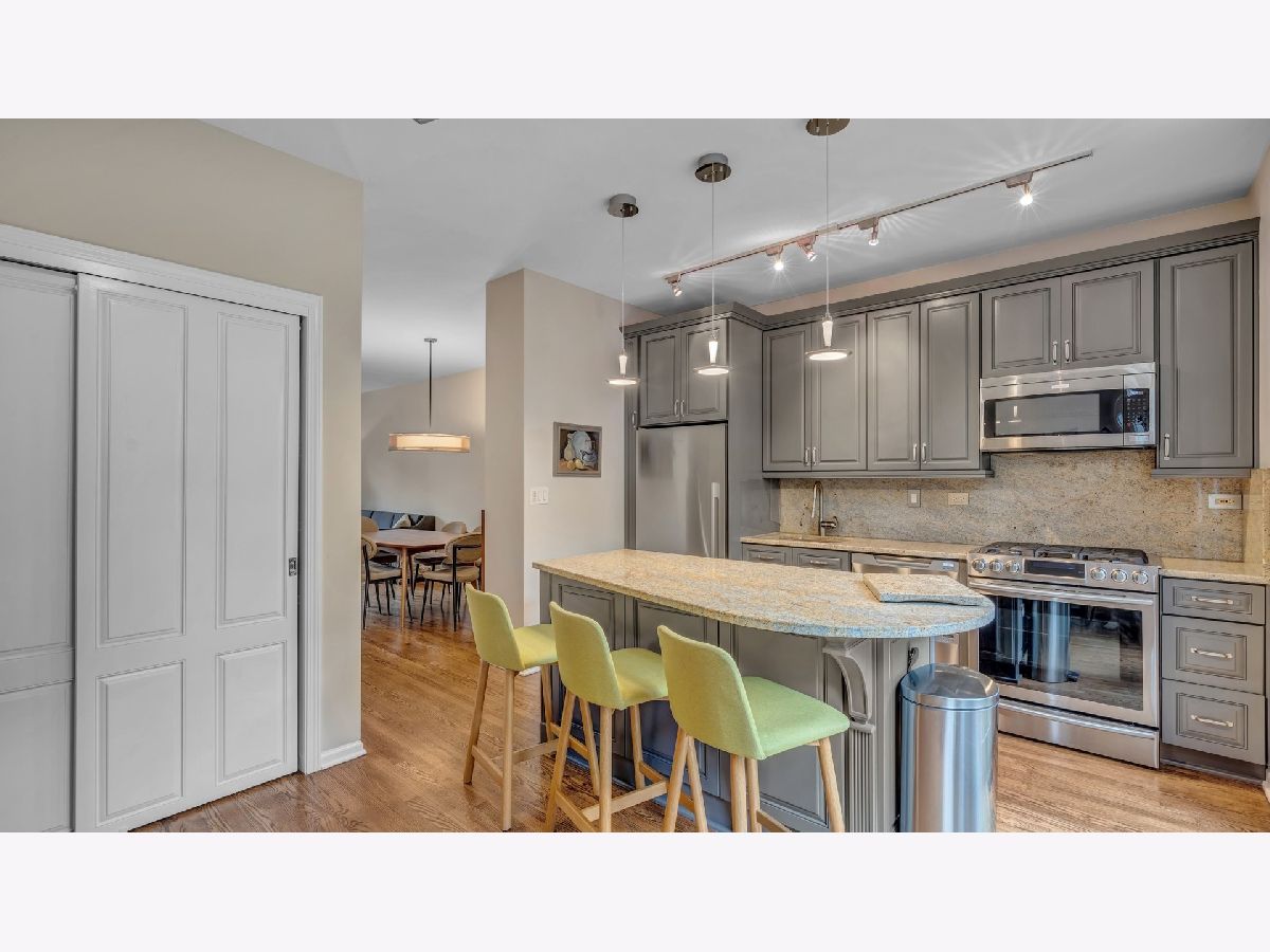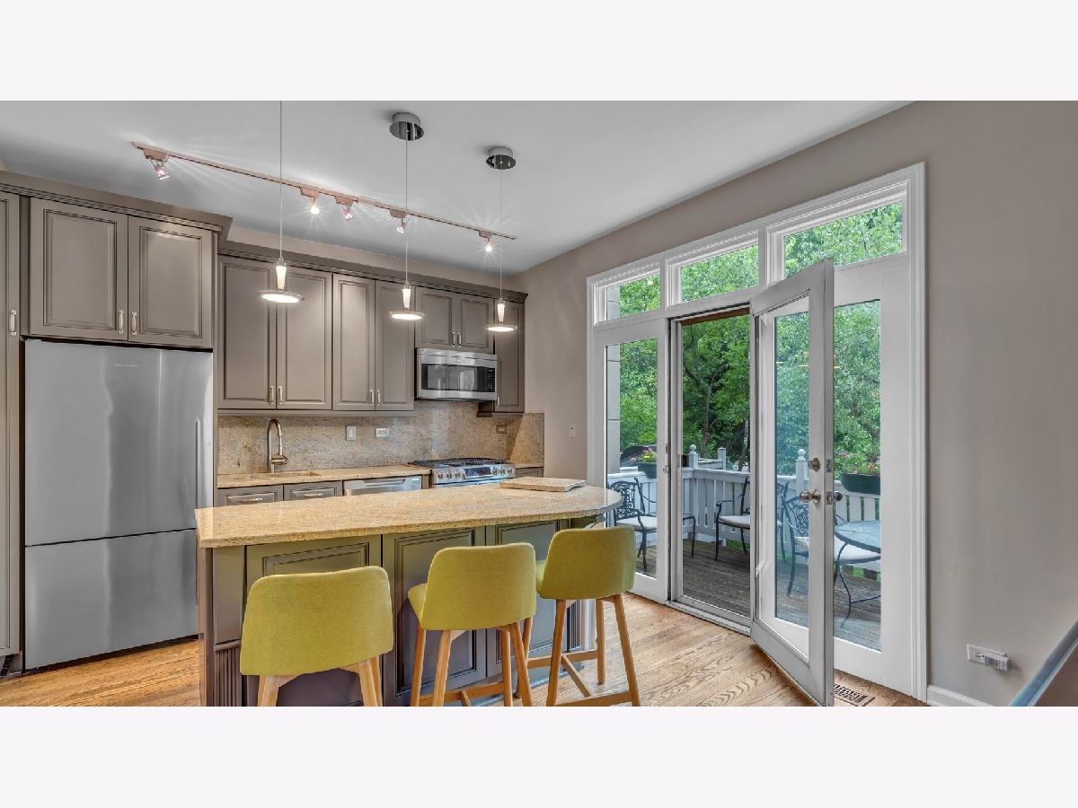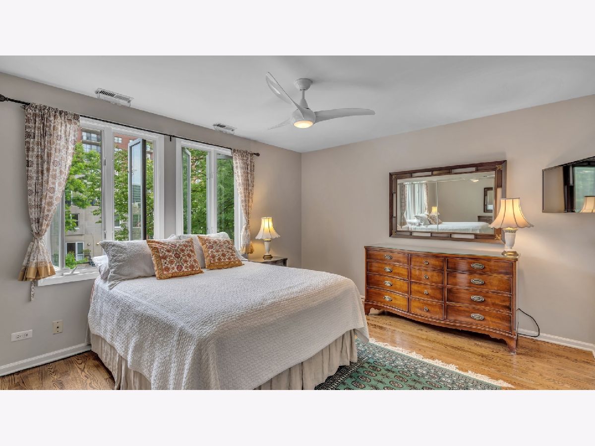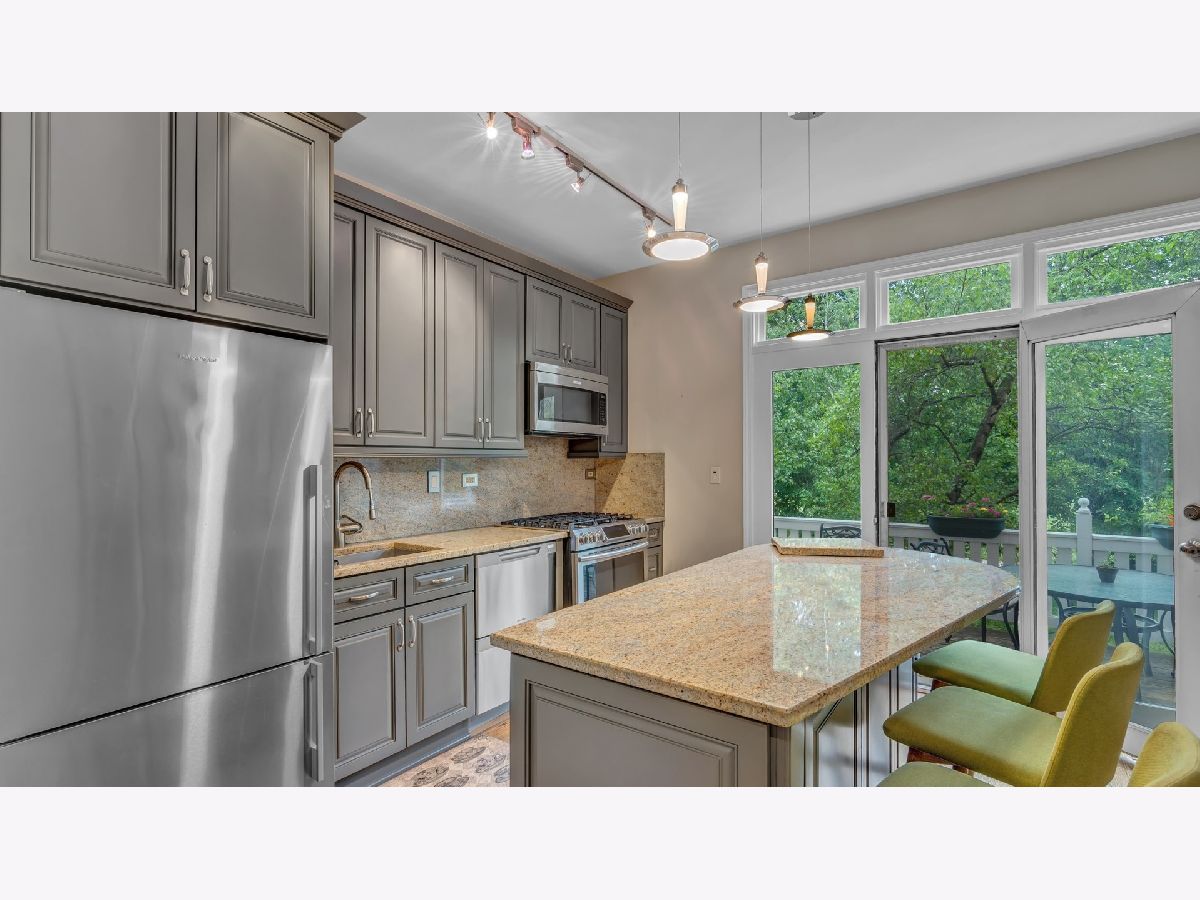 Perfect location with Cottontail Park as a backdrop to one side, and a lushly landscaped courtyard to the other. This lovely 2 bedroom 2 & 1/2 bath townhome is surrounded by trees. The beautifully tiled entry foyer includes access to the attached garage and powder room.The family room is located on this level of the home and is a nice room to relax in or enjoy the view of the outdoors. The side-by-side washer & dryer are tucked away in the closet, while glass doors provide access to the private fenced in backyard. The 2nd floor includes an updated kitchen with granite counters, stainless steel appliances,island with seating, pantry and access to the balcony, to enjoy dining among the trees, birds and the Chicago Skyline. Although the living and dining rooms are separate, the open floor plan, feels as though it is one big room.The wide living room includes a wood burning fireplace & tall windows which overlook the courtyard to the East. The 3rd floor includes 2 bedrooms and 2 updated baths. The master suite includes a full wall of closets, bath with oversized shower and a granite topped vanity. The 4th floor includes a bonus room to use however one choses. Currently it is being used as a comfortable place to read a book, exercise, or do morning yoga. The room leads to the rooftop deck ,with room for seating, while taking in the views at treetop level. One car garage & pad for the 2nd car. Walk to grocery stores, restaurants, Target,movie theater and nightlife. Easy walk to the lake, loop and museums. Steps to public transportation. Within the South Loop School District. This home is beautiful...inside and out!