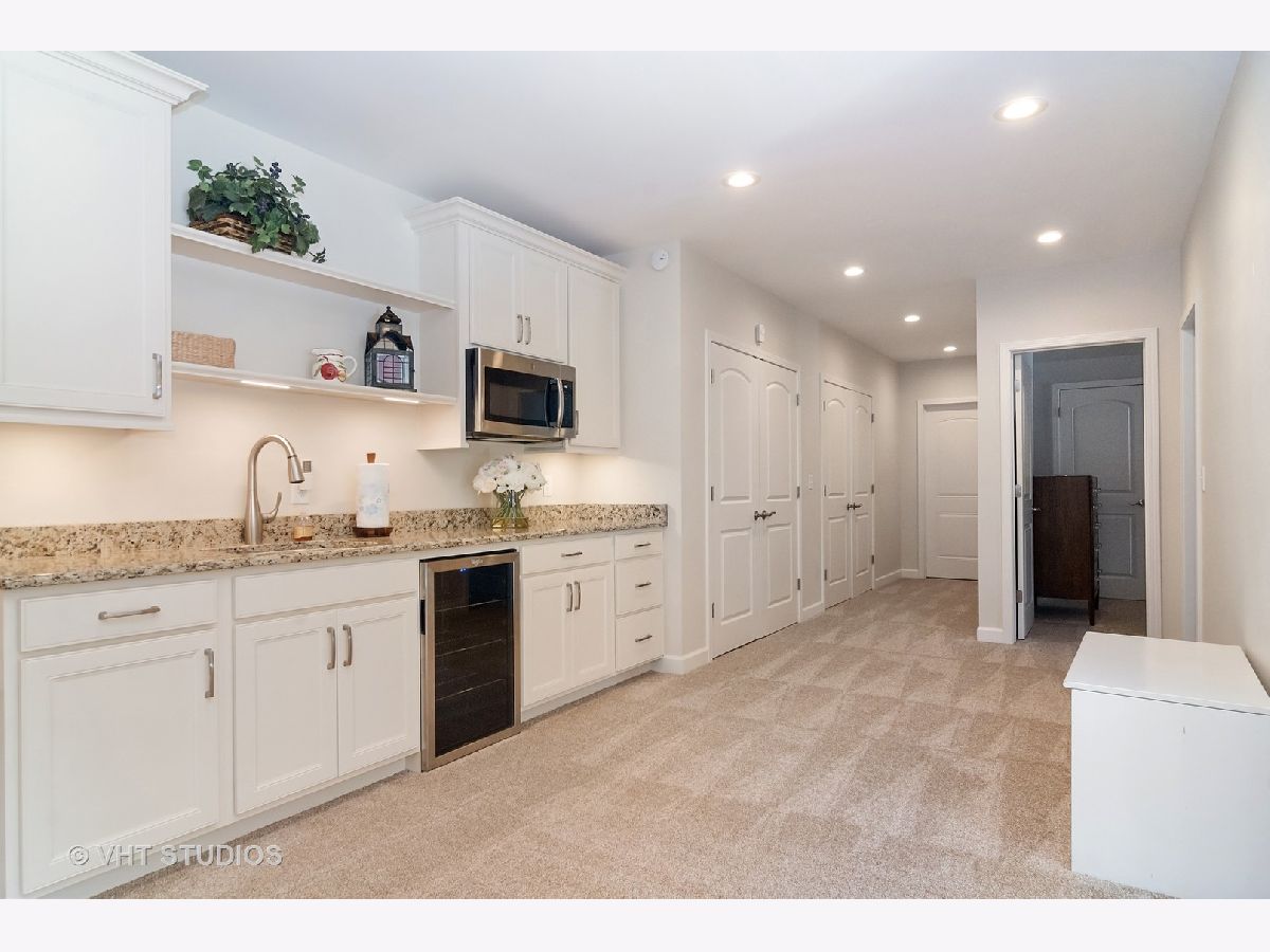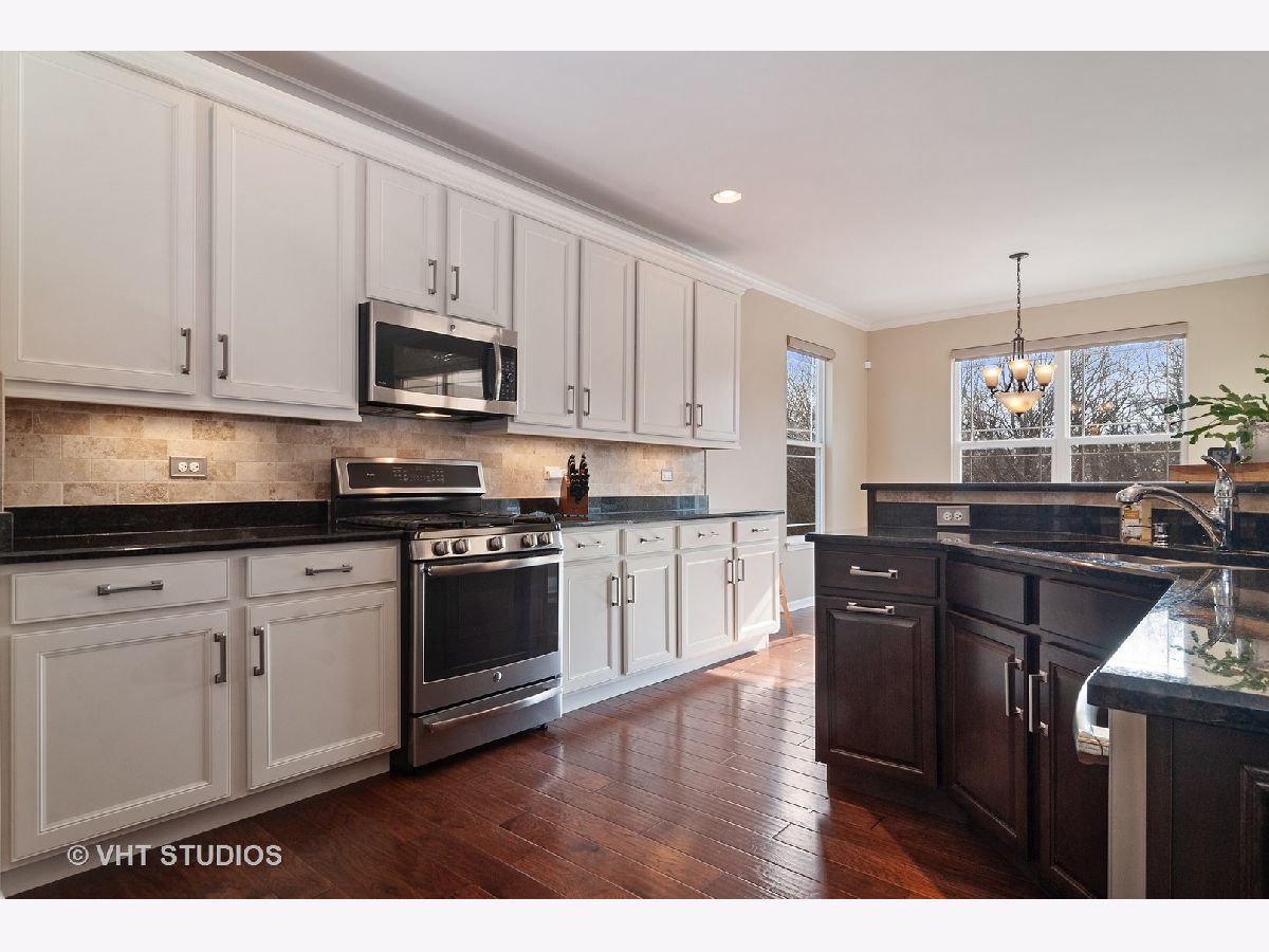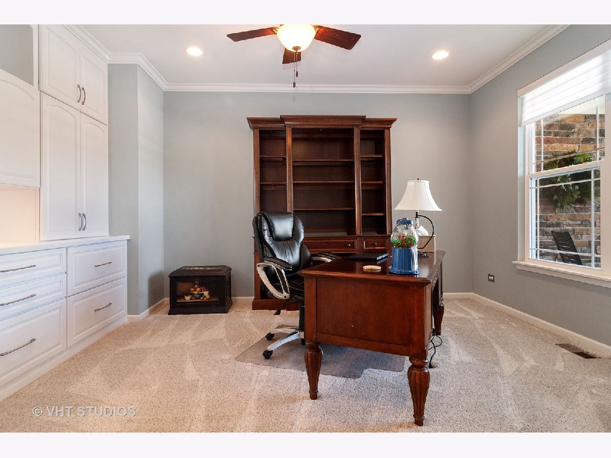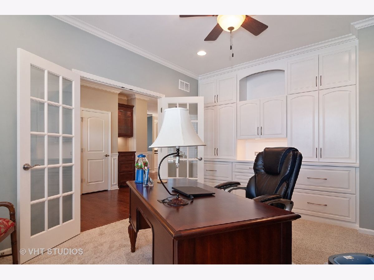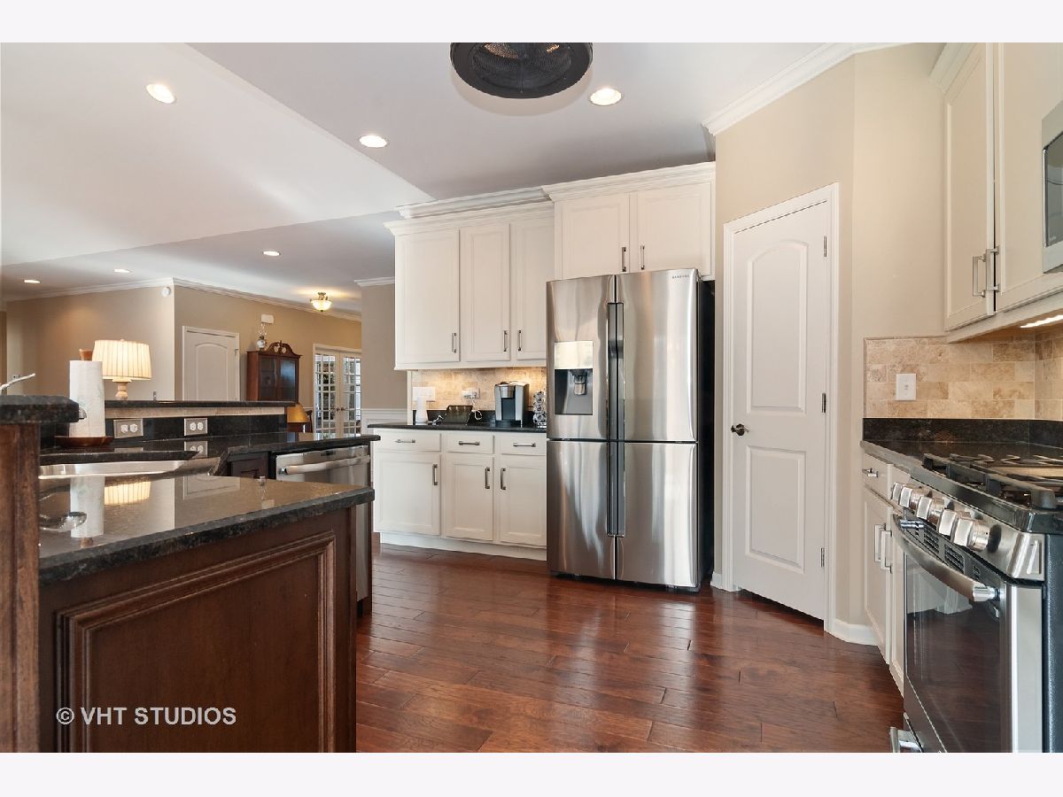 Meticulously maintained well built ranch with endless upgrades! Beautiful 5" plank engineered hardwood floors featuring an elegant time worn scraped finish, on most of main level. Extensive trim package throughout home. Office has French doors and beautiful built ins. Large dining room with wainscoting. Full gourmet kitchen with breakfast bar, all stainless steel appliances, backsplash, pantry closet and eating area. Great space for entertaining. Tons of natural light throughout. Kitchen is open to family room with vaulted ceiling, custom mantle and gas fireplace. Upgraded pads and carpet in bedrooms. Fall in love with the completely finished lower level with a walkout! Two additional bedrooms in basement with amazing full bath, wet bar sink, granite counter. Host all of your parties in this great space! Custom window treatments. Unique storage which could be used as a "3rd garage" in the unfinished section of basement. Perfect space for outdoor furniture, lawn mower, etc. Professional landscaping in both the front and back yard, driveway ribbons, no maintenance deck and stamped concrete patio. Minutes from METRA. Close to shopping, dining, parks, elementary school. This is truly a maintenance free home and one you won't want to miss!!