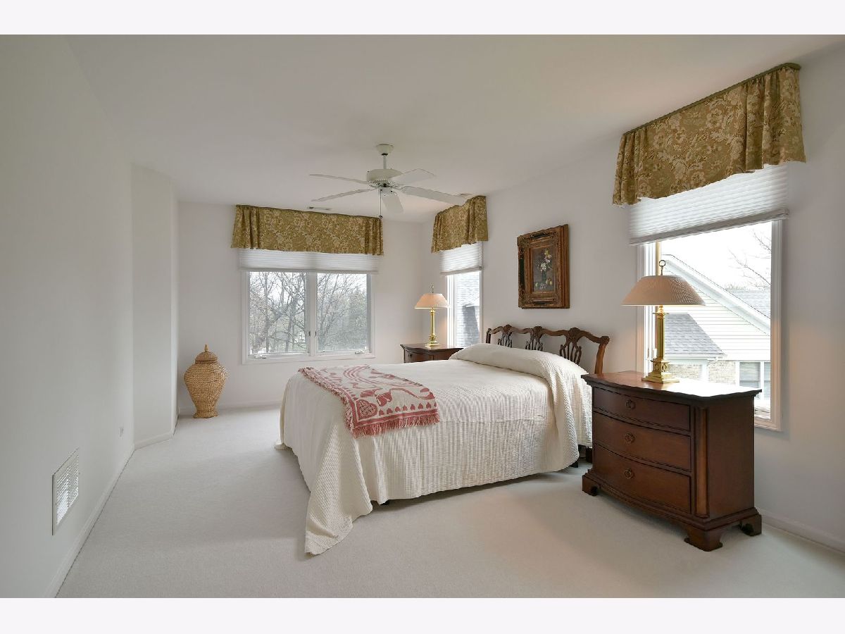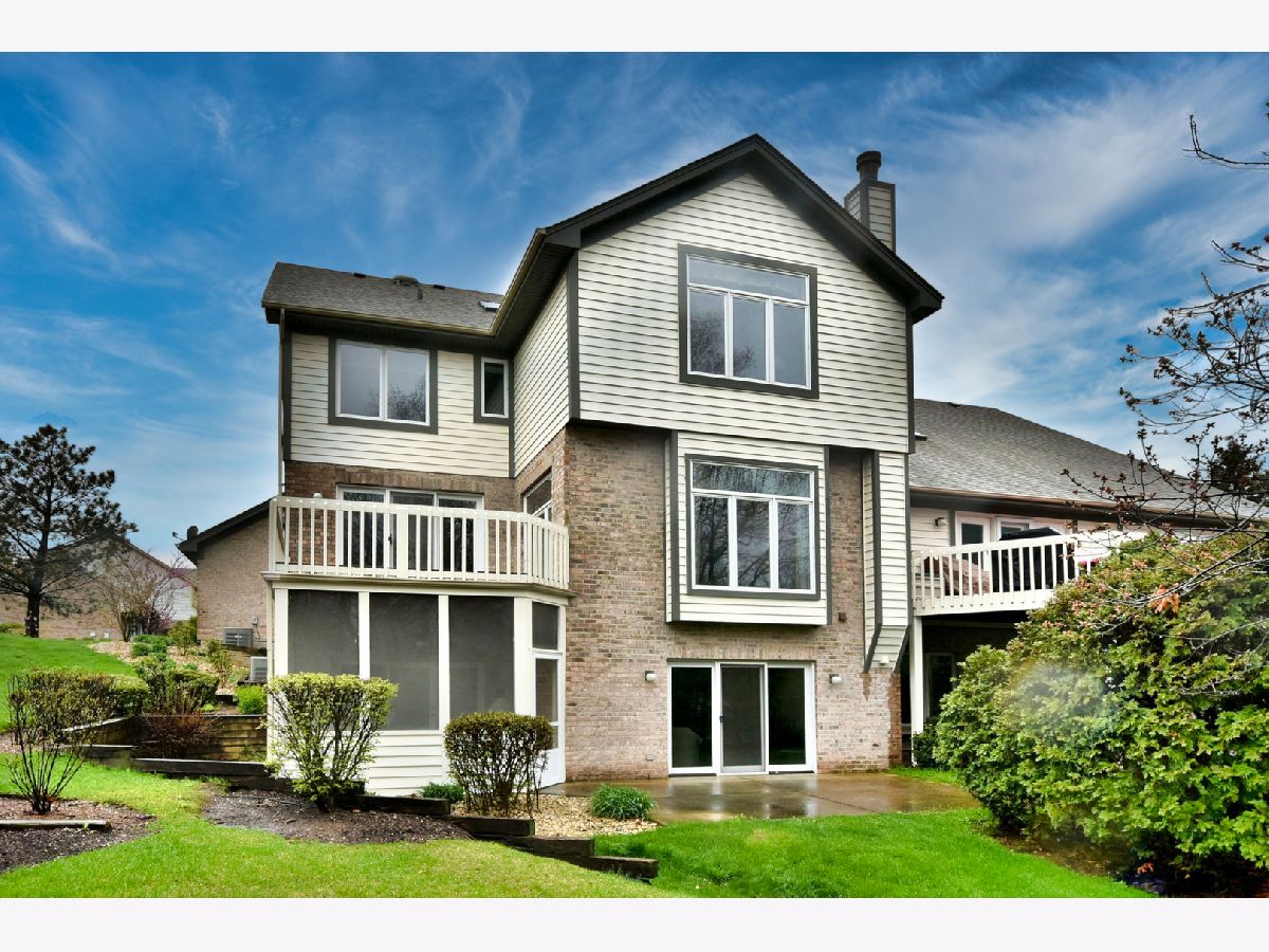 Prepare to be impressed! Stunning luxury townhome with three car garage, generous master suite, and masterfully finished walk-out basement. Perfectly light and bright home with white trim, doors, and cabinets. Welcome your guests in the two-story foyer that opens to the full-sized dining room and sunken living room with large oversized windows overlooking the picturesque tranquil woodland and deck. Main floor also has HUGE kitchen with immense island and open breakfast area with easy sliding glass door access to the deck. Both the Master bedroom and private ensuite have cathedral ceilings adding to the luxurious feel of the space. Master bath has dual sinks, linen closet, separate walk-in glass shower, and jacuzzi tub. Don't miss the massive walk-in master closet. Upstairs also has a separate, almost equally luxurious bedroom and ensuite. Second floor also has a sunny loft. Now to the Masterful walk-out basement with extra tall ceilings, an exquisite custom wood bar, screened-in porch, built-in storage, closets, closet office and large entertaining space with fireplace. Laundry is on the first floor with large closet and direct access to the three car garage. The garage also has a separate gas heater, built-in cabinets, epoxy floor, and an extra closet in the garage. Every detail meticulously considered in this home. Easy access to I355 and shopping. Look no further. Homeowner will take the dining room chandelier.