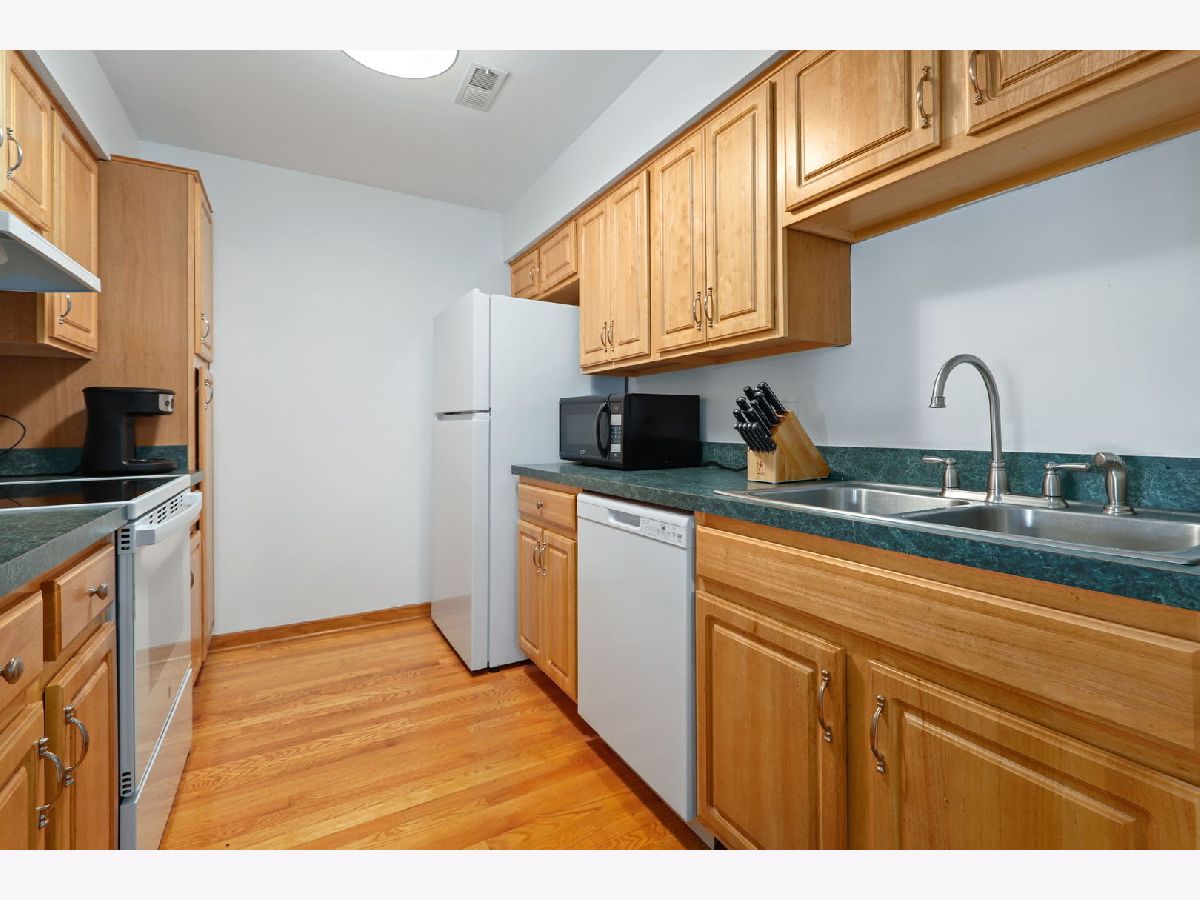 Beautifully upgraded 2Bed/2Bath Wheaton condo! Sun-filled unit features hardwood floors, all brand new kitchen appliances, separate dining area from living space, and a large concrete patio off the living room that's perfect for entertaining. Generously-sized primary suite features new carpeting, upgraded bathroom with replaced vanity, new lighting, mirror, upgraded flooring, and new shower tiling. 2nd bath vanity, shower tiling, floor tiling, mirror, and lighting are all upgraded. In-unit laundry and brand new heating & AC make this the perfect home. Exterior parking spot included. Located in Highly Desirable District 200 Schools.
