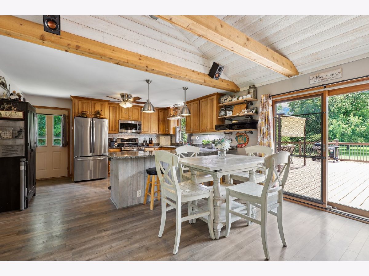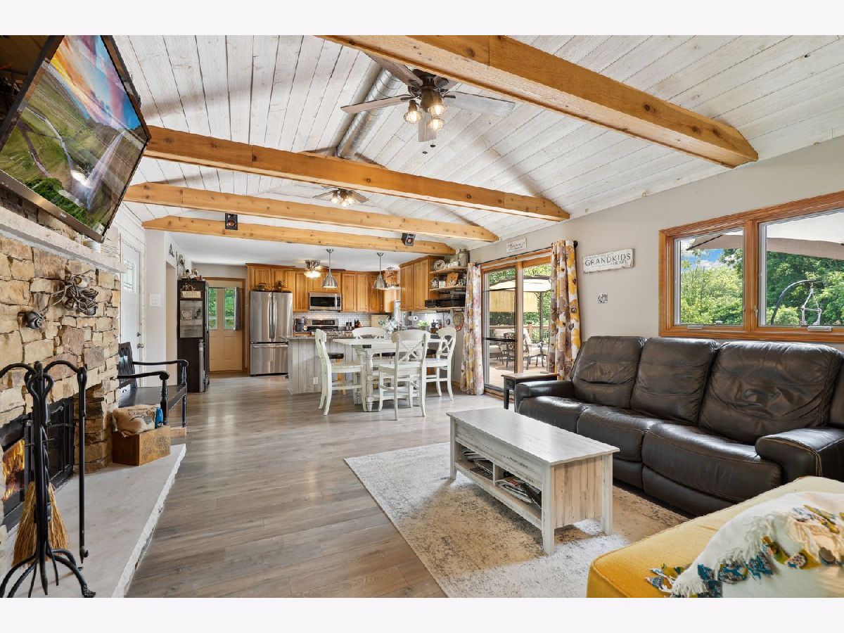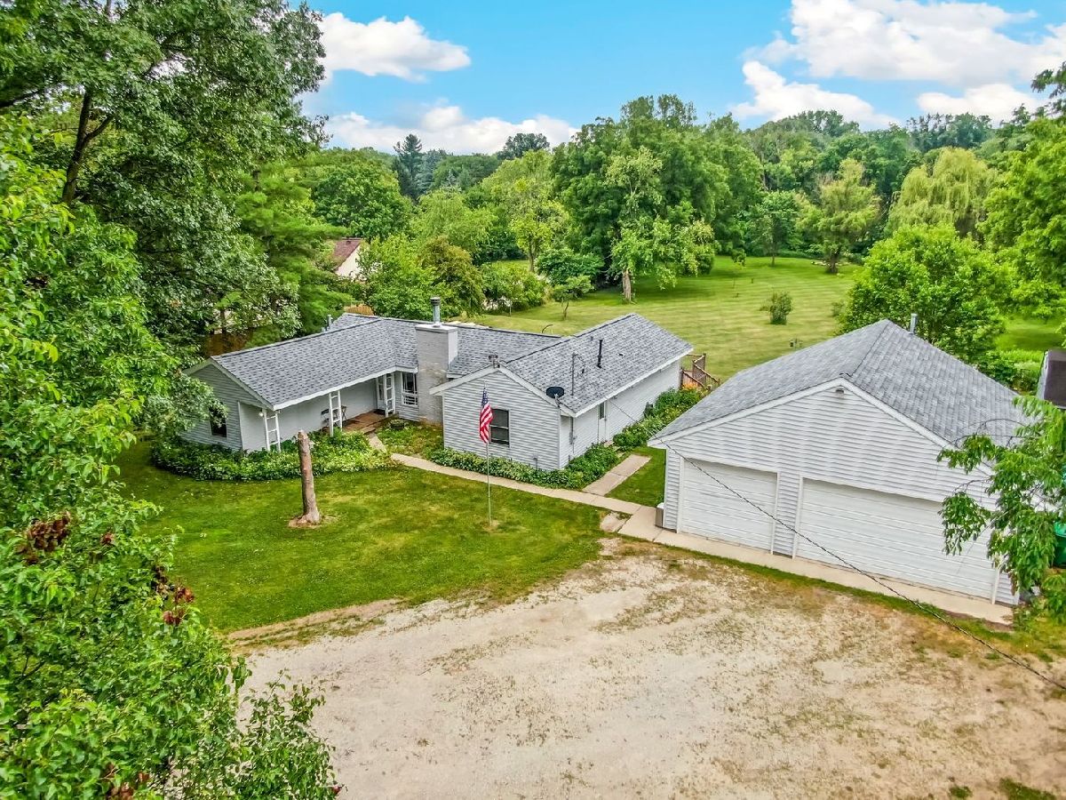 Welcome to this stunning Ranch home situated on 1.67 acres in unincorporated Lemont. This property boasts 3 bedrooms, 2 full bathrooms, and a 4-car garage, all backing up to Long Run Creek. The open floor plan features a vaulted living room with wood beams and a cozy fireplace surrounded by stone. The kitchen, updated in 2016, includes all new stainless steel appliances (2022), granite countertops, 42" cabinets, a backsplash, and a spacious eating area overlooking the backyard. The master bedroom features an updated private bathroom and a large walk-in closet. The other bathrooms have also been updated, and the home includes new barn doors and a large mudroom with a washer and dryer. A new 47x28 deck, perfect for entertaining guests, was added in 2022. This home is built on a 4-foot crawl space with no basement. Additional updates include a new well in 2024, a new roof in 2021, two tankless water heaters in 2021, new windows in 2021, a whole-house filtration system, and an invisible fence covering the entire lot. The home has 200 AMP service and the garage has a separate 50 AMP service.