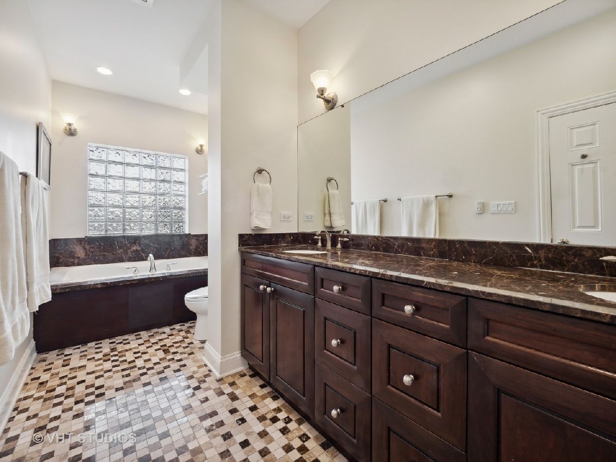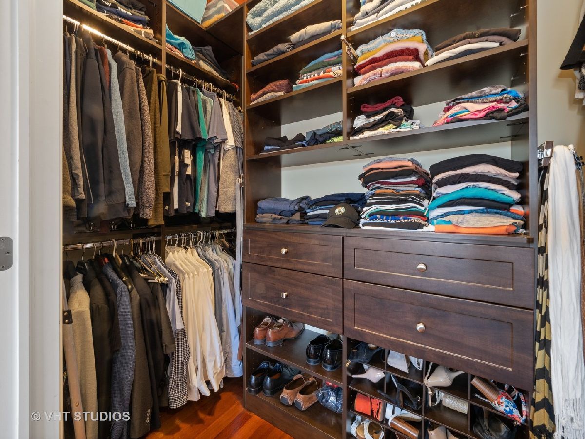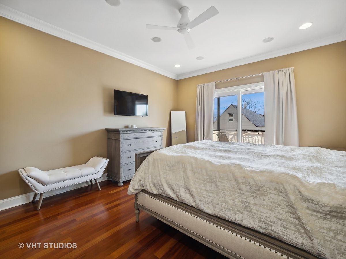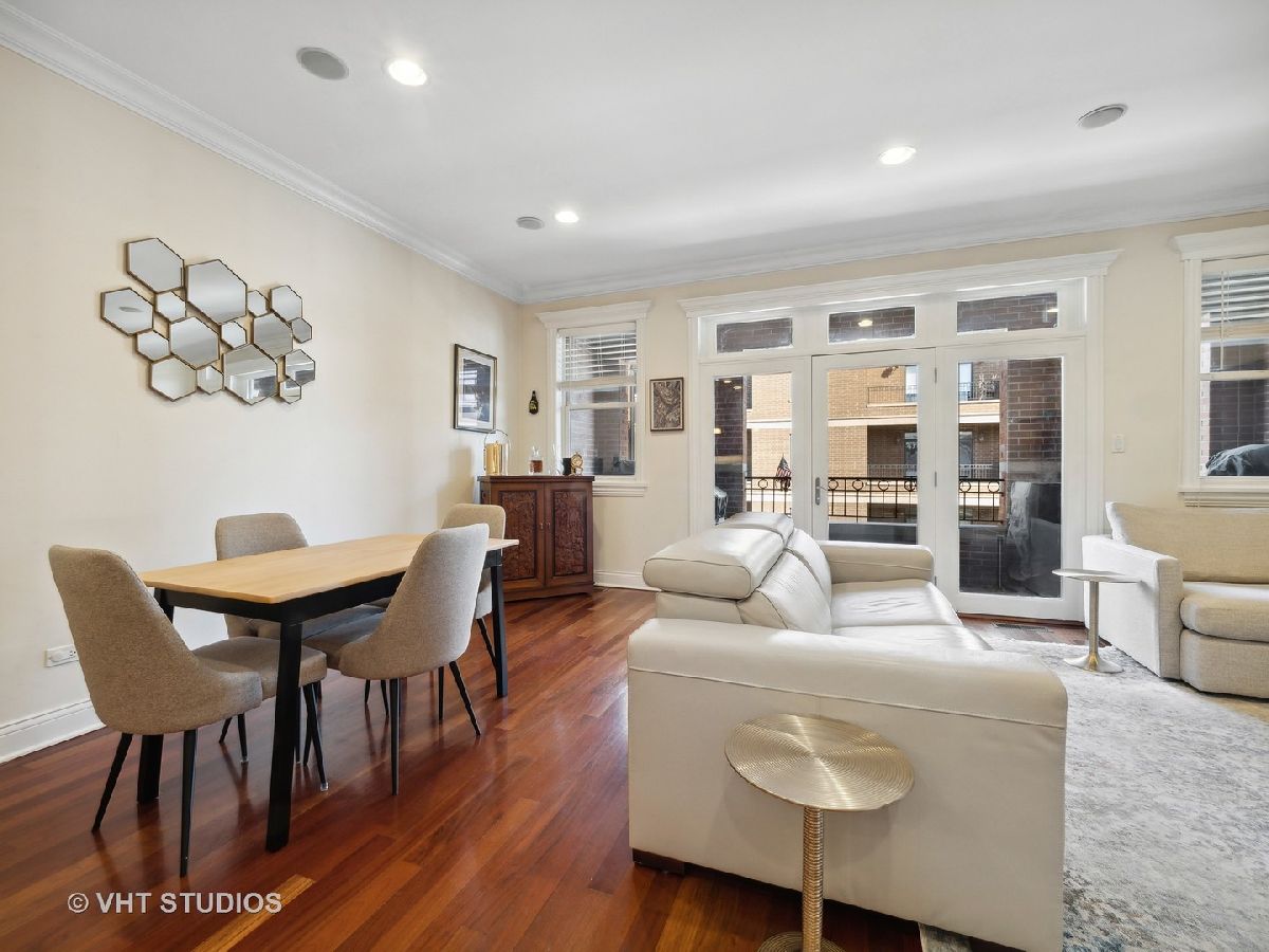 Ready for Immediate Occupancy! Enjoy living in the fabulous location of LAKEVIEW/SOUTHPORT CORRIDOR in this extra wide, open concept unit that features Brazilian cherry floors throughout, crown molding, 2 outdoor spaces and an attached heated garage. Winter months are made cozy in the large living room by the gas fireplace. The spacious dining area is perfect for entertaining. Both living and dining have access to a covered balcony the full width of the building perfect for entertaining and grilling. All stainless kitchen has new gas range oven, new microwave, cherry cabinets, granite counters, new backsplash, new undercabinet lighting and a breakfast bar with built in wine racks. The HUGE primary bedroom suite has direct access to the large deck and boasts a custom organized walk-in closet, luxury bath with dual sinks, jacuzzi tub, steam shower with large rain head and 2 additional shower heads and heated floors. Access to the building is via secure front door with security system while access to the garage is by second interior rear staircase. The wide hallway hosts a large coat closet with new custom organization, side by side washer & dryer with storage and mechanical closet. Living room & Primary bedroom have in-ceiling surround sound speakers. Unit completely freshly painted in September 2023. There is an additional common storage room on the first floor and the racks on the east side of the garage will remain. One block to Whole Foods, steps to Target and ALL the fabulous shops and restaurants along Southport make this a great place to call home!