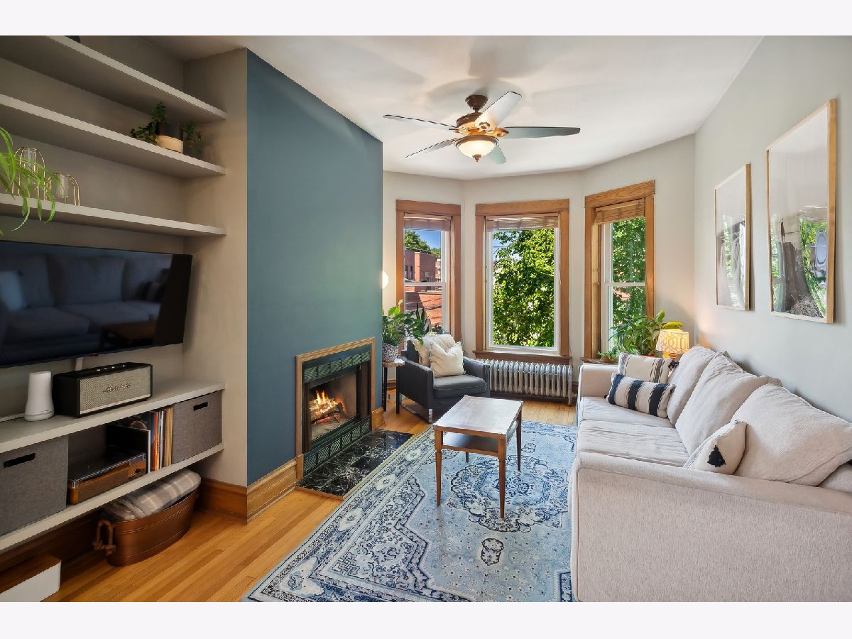 Don't miss this 2bed vintage penthouse unit on quiet tree-lined street, just steps from the energy and amenities of the Southport Corridor! Great open floor plan with spacious living area and updated kitchen featuring SS appliances, two-tone cabinets, water purifications system and granite countertops. This unit also boasts a large entryway, built-in shelving and hutch, a wood burning fireplace and hardwood floors throughout. Newly installed windows that let in tons of light all day. Small balcony off kitchen is great for grilling. The intimate brick building also features a huge storage storage unit in the basement currently used as a workshop. There is also a community courtyard in the back for additional hang out space. Juniper Park, Blaine elementary school, the brown line, Jewel, popular restaurants and boutiques of the Southport Corridor are all within blocks.