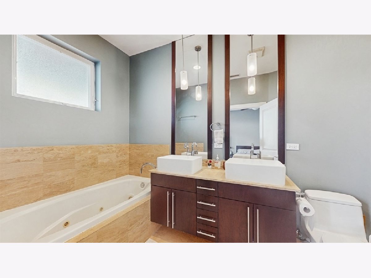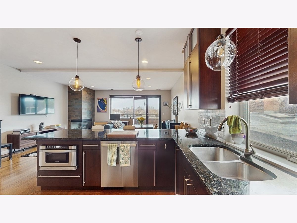This stunning 3 bedroom & 2 bathroom home truly has it all, featuring an extra-wide and open floor plan with unobstructed light pouring in from the north, east, and south, 10' ceilings, fireplace, 3 outdoor spaces with skyline views, garage parking, and in-unit laundry! The home is also super livable; both entries into the home have room for shoe storage and coat closets, the large kitchen has tons of counter space and a pantry, and the front balcony is perfect for grilling with easy accessibility to the kitchen. A full bathroom off the kitchen with a full-height tiled shower and built-in bench is a luxury for guests. Down the hall from your living space you'll find two nice sized bedrooms, and the south-facing primary suite at the rear of the unit. The primary features a large custom walk-in closet and ensuite bathroom with soaking tub, separate shower, and floating dual vanities with vessel sinks. The perfect addition to this fabulous primary suite is the large private rear deck with skyline views! Other home features include attached 1-car garage parking, 1 large storage closet in lower level, and an amazing common roof deck at the top of the building with sweeping 360-skyline views! In addition to the amazing general location with access to West Loop, Fulton Market, and the plethora of shops and restaurants along Grand and Chicago Aves, this building is also perfectly positioned on the block with bus stops to Downtown and Wicker Park 1/2 block away, a dog park a block north, and views of the park across the street (not looking into another building)!