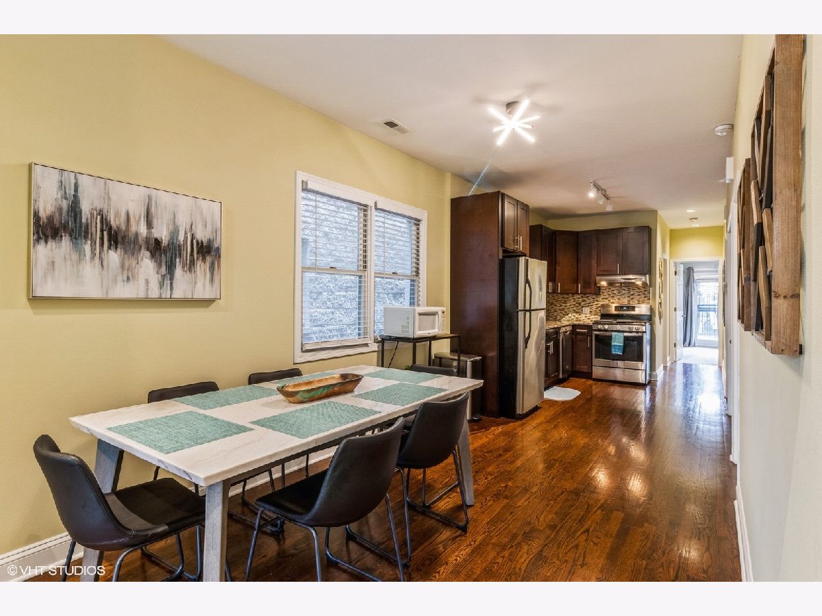 Unbeatable value for 3 bedrooms + 2 full bathrooms turnkey condo secured in an intimate 4-unit building in Chicago's desirable West Town/Wicker Park. Refreshed carpet in all bedrooms, hardwood floors, walk-in closets with custom shelving, back deck with grill, and one exterior parking space included. Washer and dryer can be installed in-unit, and there is shared laundry in the building as well. The sizeable front window pours light into the cozy living room, which features a wood burning fireplace with gas starter. Kitchen highlights include granite countertops, stainless steel appliances, and plenty of cabinet space. The first two bedrooms can hold queen beds, dresser, and nightstand. Both rooms include large walk-in closets with custom shelving. The first bathroom has a newer quartz top vanity, shower with a newer double shower head and bathtub. The bright & airy primary bedroom can fit a queen bed, nightstand, and dresser. Natural light overflows the bedroom from the private back deck. The primary bathroom is complete with tile, a newer shower head, and sitting bench in the shower. Walk out through the bedroom to the back deck with space for an outdoor table set and grill! From the back steps you can access the parking space and building laundry room. The well-maintained brick building is located on a quiet one-way street with FREE parking - great for having guests over! Frontpoint Security System is included and connects to your smart phone. HOA fees are $242/month: water, common insurance, scavenger & snow removal. Enjoy time in peaceful Eckhart Park, just a couple of blocks away. Walk less than a mile to Wicker Park hot spots including Big Star, Foxtrot, Lululemon and more. Half a mile away find Jewel Osco, Potbelly, Starbucks, Dunkin' Donuts, and local restaurants right on Ashland. Less than 1/4 of a mile to I-90/94, half a mile to the Division station Blue Line, or the 56 bus. GREAT FOR RENTALS - 30 DAY LEASE MINIMUM! Dogs and cats allowed. 2 pets maximum per unit, with a total maximum weight of 50 lbs. Unit being sold furnished preferred - ideal for investor interested in short-term rentals.