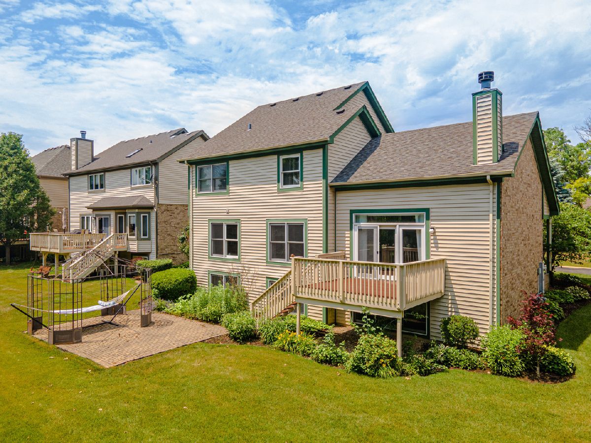BEAUTIFULLY UPDATED, OPEN CONCEPT home in the SAFE, SECURE and PRIVATE, gated community of Dawnwood in Homer Glen! From the moment you enter this home you will be struck by the wide open, light-filled space of the main living area with bright, modern paint colors, updated flooring, light fixtures and fireplace and soaring cathedral ceilings in the front entryway and main living area. The main great room has direct access to the beautiful back deck and flows nicely through the dining room into the open concept kitchen complete with updated cabinets, granite counter tops, custom backsplash, and newer stainless steel appliances including newer oven, refrigerator, washer and dryer. Upstairs you will find three bedrooms (all with fantastic views) and two baths including a spacious master bedroom with vaulted ceiling and attached bath. The finished, look-out basement has a bright and airy feel with large windows, wood-look, ceramic plank tile, a recreation space, additional bedroom/office/playroom, bathroom and TONS of storage. Outside you will find a spacious deck (recently refinished) overlooking your private, professionally landscaped back yard complete with an additional seating area on your brick patio. There is a strip of lush, mature trees lining the back boundary of the property providing additional privacy and separation from your rear neighbors. The community of Dawnwood is unique in that it provides more exterior care and maintenance than most association communities. Most of the exterior maintenance is covered including roof, siding, landscaping and snow removal for easy, maintenance-free living. The sprinkler sytem in Dawnwood uses rainwater from three private ponds (also fun for fishing!) which means you will always have plenty of (FREE) water on hand for a lush, green lawn all summer long! This home is located at the very back end of the subdivision in a quiet little cul-de-sac and backs up to another nice residential neighborhood. It is also directly across from a beautiful common area complete with gazebo, seating area and fire pit. Because of this location and the fact that this is a closed, gated community you can enjoy the peace of mind of NO outside traffic and very little outside noise for a feeling of total seclusion and security. Although you may feel completely isolated from the outside world, you are only minutes from shopping, restaurants, transportation and world class health care facilities. This home truly has it all and at an exceptionally reasonable price! Do not wait on this one! It will surely be gone before you know it!