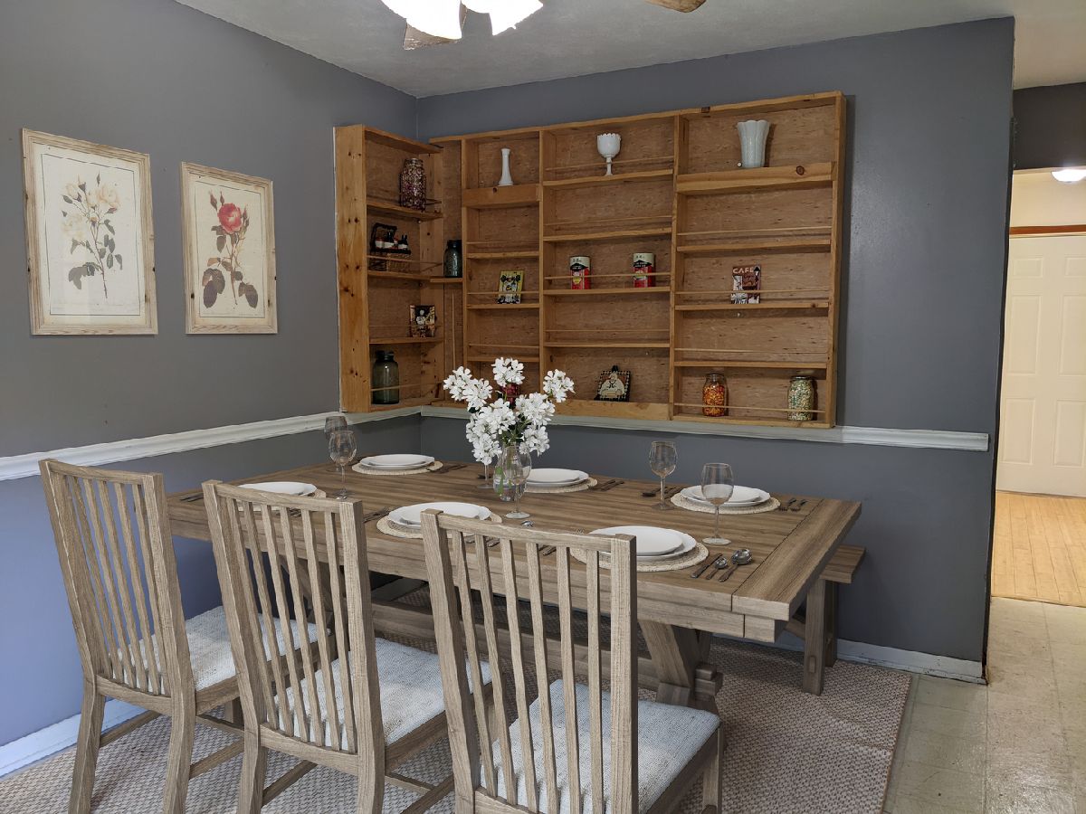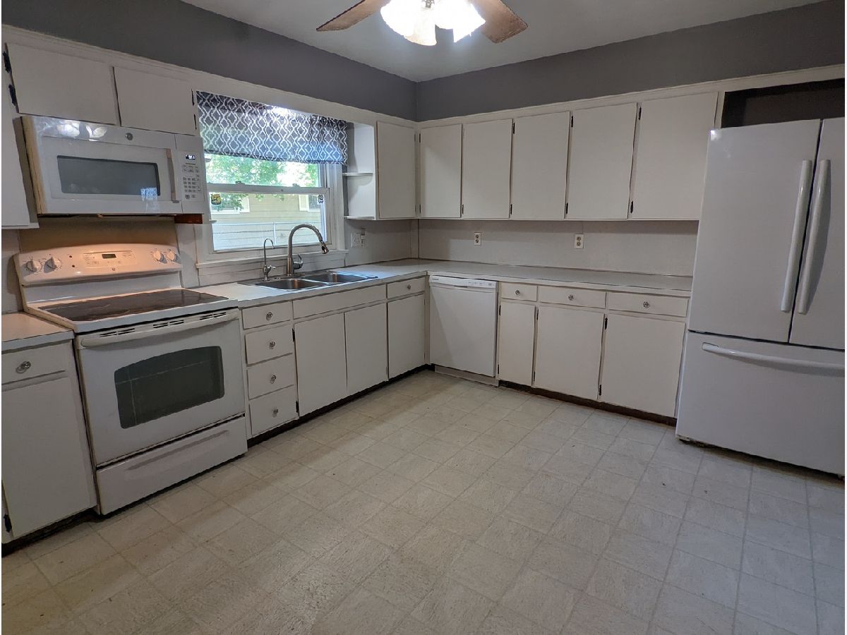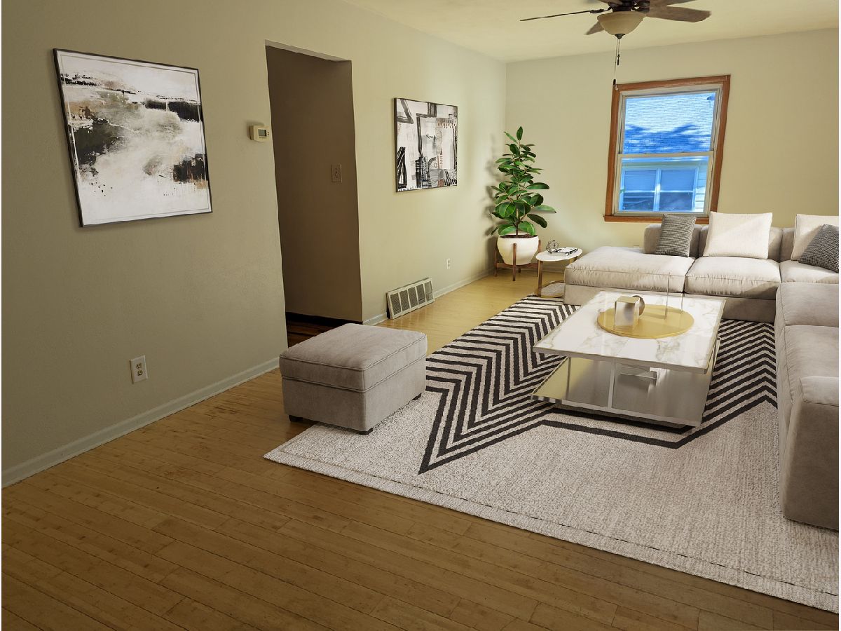 Location and larger than it appears! Entering the 25'x12' living room with hardwood floors and large windows, you'll see the opportunity here. Kitchen with lots of cabinets, all appliances and dining area. Hardwood floors throughout living room and bedrooms. Kitchen and bath with vinyl. Lower level has tons of potential for family room, media room, workshop, roughed in for another full bath and an egress window plus storage. Fully fenced backyard and large patio plus garden, with established asparagus patch, apple trees and blueberry bushes. Water heater new 2017. Central air new 2012. 2 car attached garage is 22' x 22'. Some photos are virtually staged.
