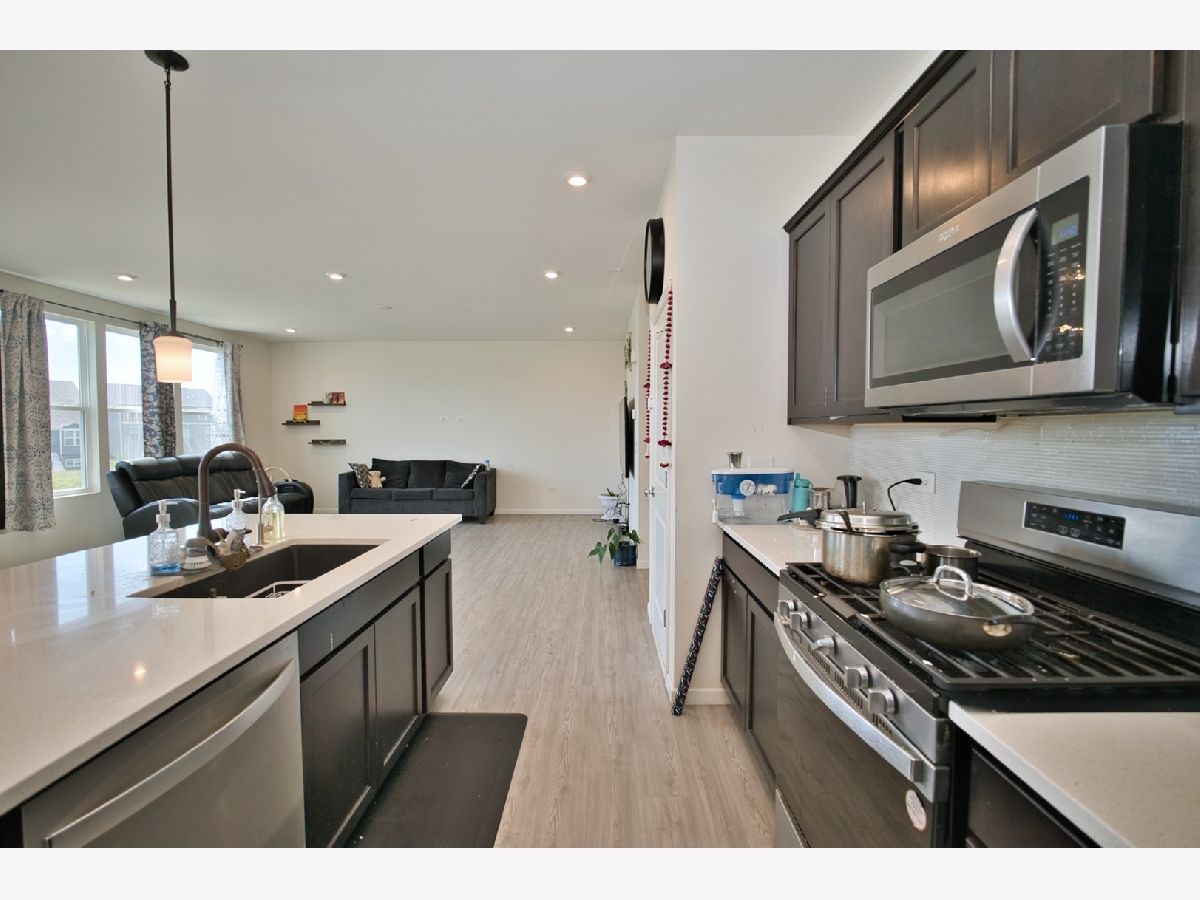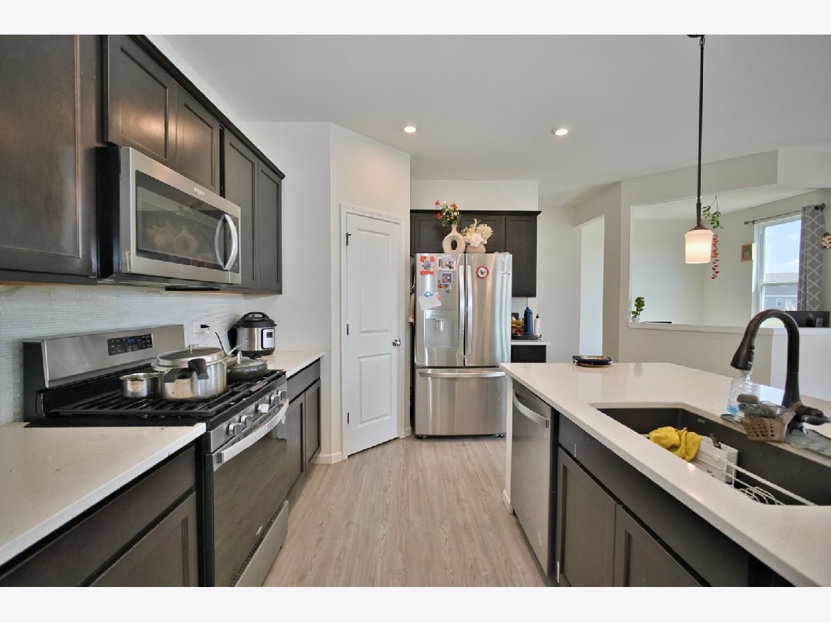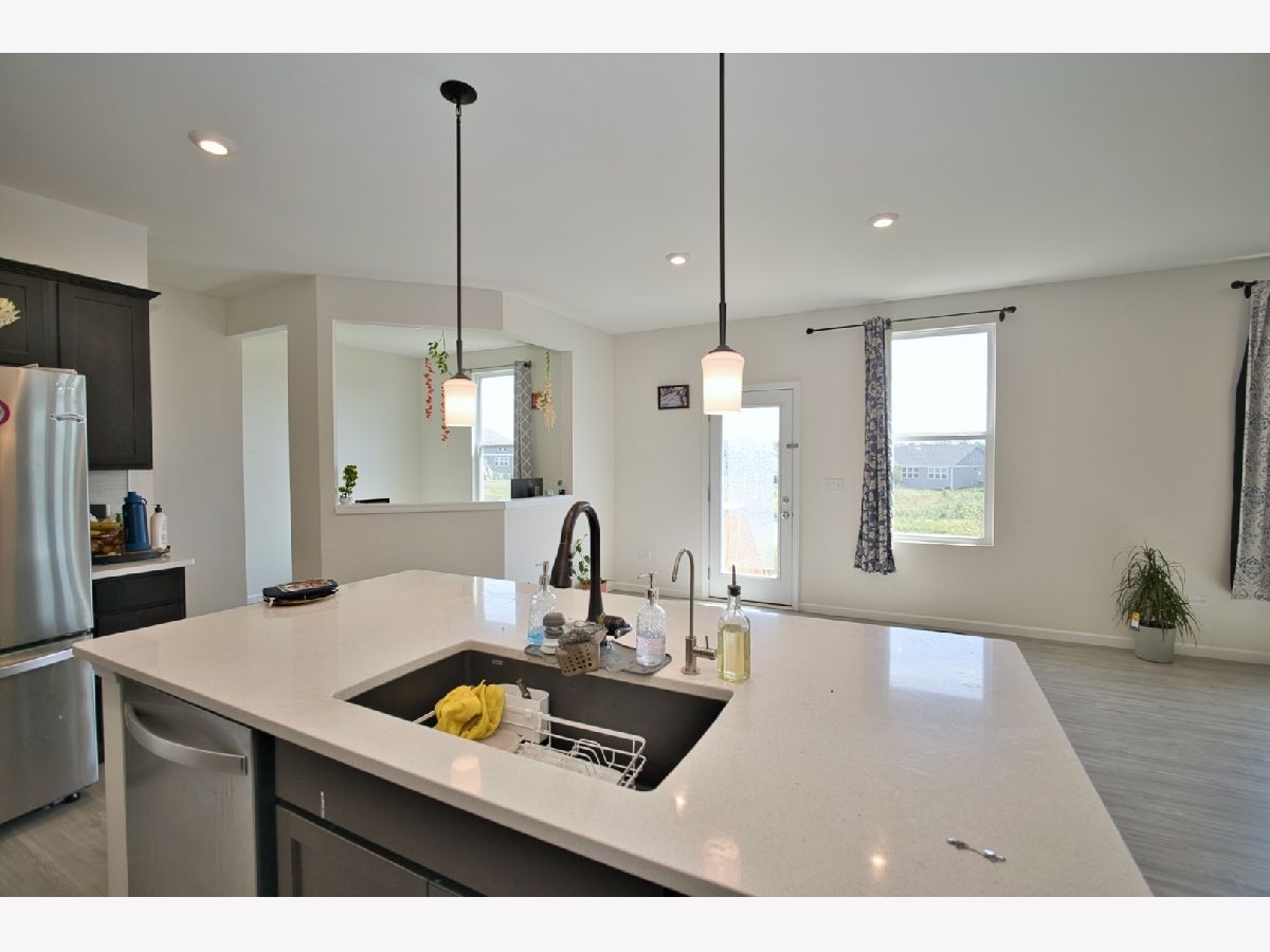 Welcome Home! SUPER RARE Sheldon Woods 2024 Built Home that sits on a Premium Lot Backing to the Pond with a Walk-Out Basement and Includes 4 Bedrooms 2.5 Bathrooms! Coming in at a Discount of Nearly 100K for the Same Home if Replicated now with the Builder on this Lot! You'll LOVE the Curb Appeal of this Mercer Model the moment you see it! Enter into a 1st Level with Maintenance Free Luxury Vinyl Flooring throughout which includes a Den & Unique Office Space set off the Open Kitchen Boasting Dark Maple Cabinetry with Crown Molding, Glass Tile Backsplash, SS Appliances, Pantry Closet & Large Eat-In Island, Quartz Tops and Recessed Lights! Upstairs you'll find a Convenient Laundry Room, 4 Spacious Bedrooms Including the Primary Suite that includes a Walk-In Closet & En-Suite Bath with Raised Dual Vanity & Massive Shower with Glass Door! The Basement is a Walk-Out to the Rear Lot and has Loads of Natural Light and Insulated Walls, just waiting to be Finished! Located Near Shopping & So Much More with Highly Rated Schools, Come See it TODAY!