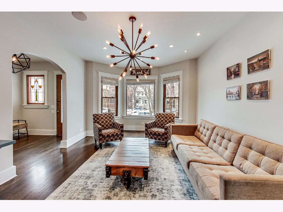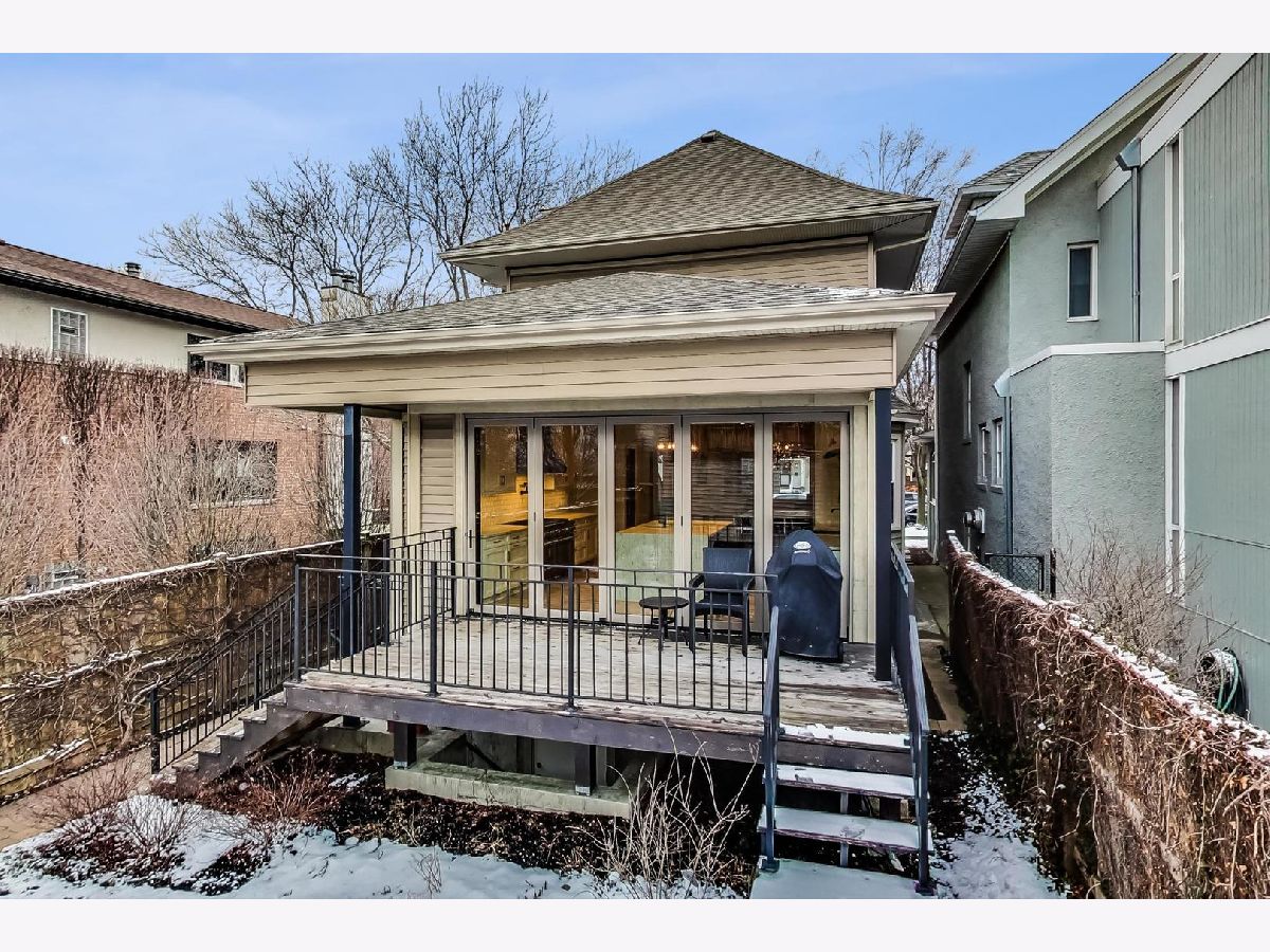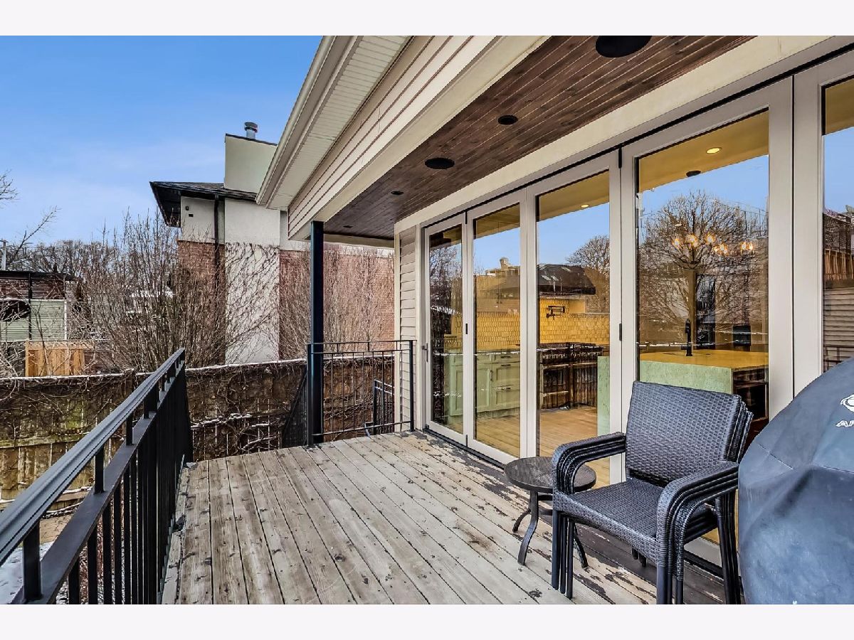 This captivating, gut renovated, American Four Square 3 bed/2.1 bath home with 2-car GARAGE & ROOF DECK is situated on a wide 30'x125' lot, marries quality craftsmanship, vintage details, & modern luxury with addition in 2016, & is blissfully located in the Ravenswood School District. The covered front porch offers ample seating for outdoor neighborly chats. Enter the foyer with a craftsman style stained glass window that flows into the sizeable living room with a BAY WINDOW overlooking the street. Another timeless archway opens into the impeccable dining room with another light-filled bay window, perfect for entertaining. No detail was spared in the extra-large kitchen with one-of-a-kind finishes: a steam convection oven built-in to the stainless-steel double oven range, a custom copper apron sink, garbage disposals at both sinks, custom designed cabinetry and an artful wood feature at one end of the waterfall kitchen island featuring custom textured granite, along with one of a kind shelving, a reclaimed wood beam, imported custom stone flooring and a walk-in pantry. From the kitchen, a wall-to-wall 5-panel bi-fold glass door system with custom built-in Mecho shades connects the indoors with the outdoors, offering an expansive space - perfect for entertaining on the 17' x 8' surround-sound wired deck flowing into the yard. A powder room with mesmerizing floor-to-ceiling tile rounds out the main level. On the second floor three bedrooms feature spacious walk-in closets and a separate bathroom with double sink and tub/shower combination. The generous attic features reclaimed wood beams, a dormer window, with the opportunity to build a master retreat. A fully finished natural light-filled lower level provides office space, recreation room space with a bay window, a separate sitting room, and a pristine bathroom with walk-in shower to make it the perfect guest retreat. The laundry closet with frontloading Whirlpool washer dryer and additional storage room completes this level. The spacious yard boasts mature landscaping, including ivy, with a deck off the kitchen and a catwalk that connects to the garage roof deck. Additional features include all new electrical, plumbing, and mechanicals. Great location. Situated in Graceland West, the sleepy street has easy access to shopping, local breweries and distilleries, and the famed Graceland Cemetery. Close proximity to Warner Garden Park with its natural & green space, mature trees, landscaping and peaceful sitting benches. Proximity to highway 90 / 94 Kennedy Expressway, Montrose Brown and Sheridan Red Line EL trains, & CTA buses. Enjoy neighborhood favorites: Tango Sur, Spacca Napoli, The Long Room, Glenn's Diner, Urban Vegan, Roost Chicken & Biscuits, Bienmesabe, First Slice, & coffee at Dollop. Exceptionally low taxes, a must See.
